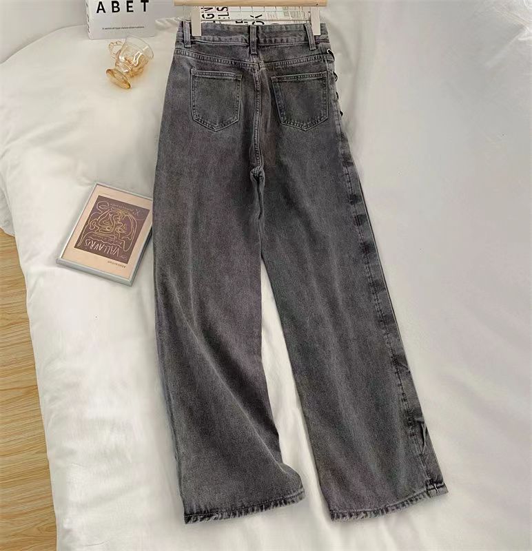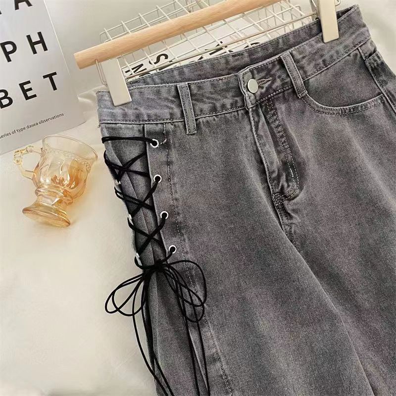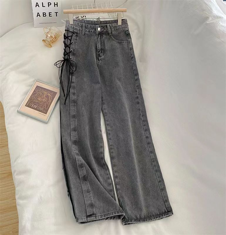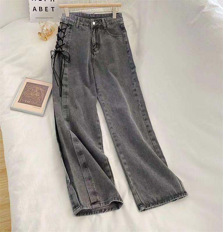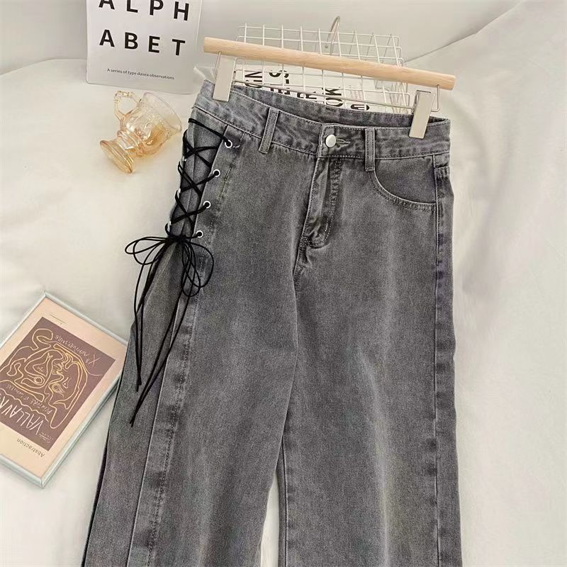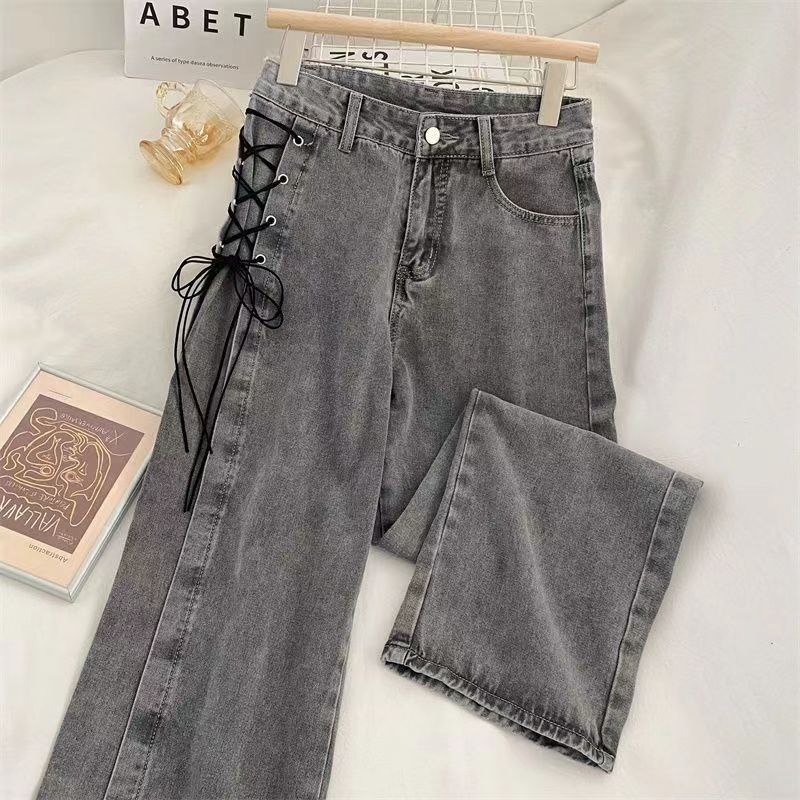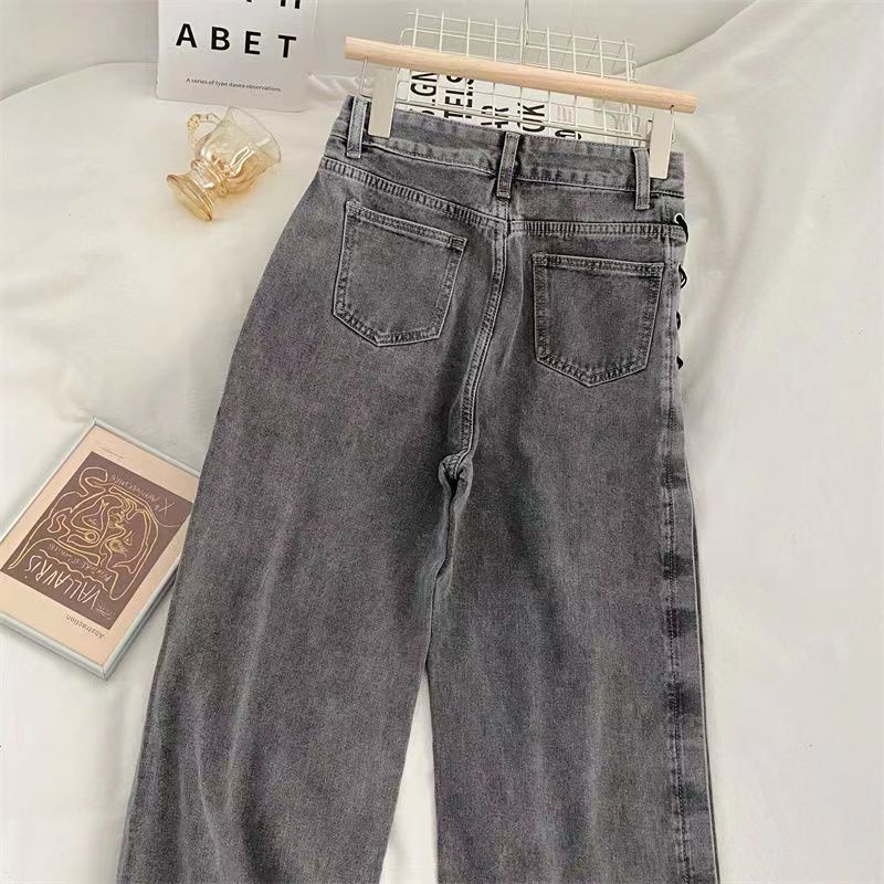 Pantalones vaqueros de cintura alta con tirantes Spice Girl para mujer, de primavera y otoño, rectos, sueltos y adelgazantes, de pierna ancha, nuevo diseño 2024