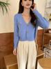 Top Corto Estilo Chanel Primavera y Otoño Nuevo Nicho Único Hermoso Estilo Occidental Tejido Cuello en V Manga Larga Suéter Cárdigan para Mujer