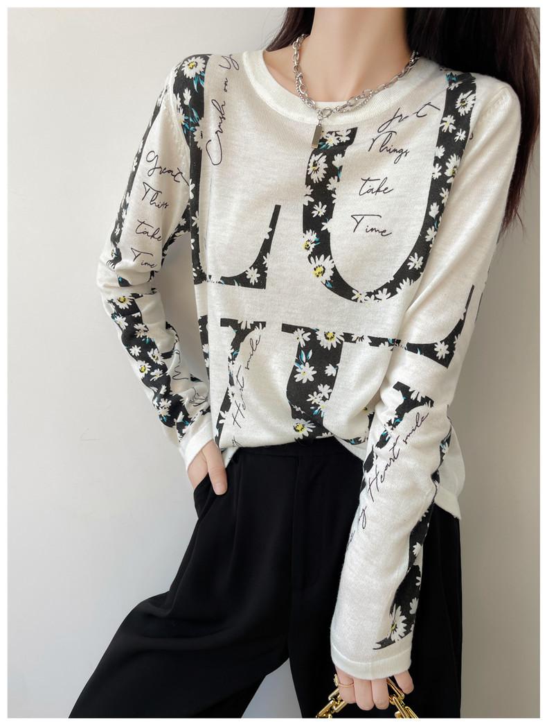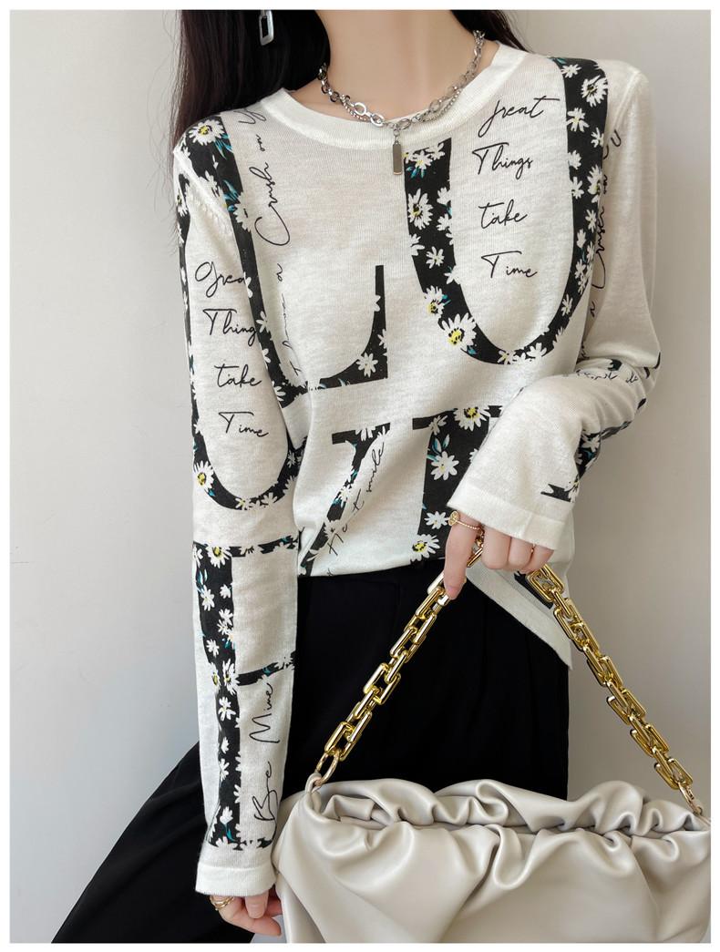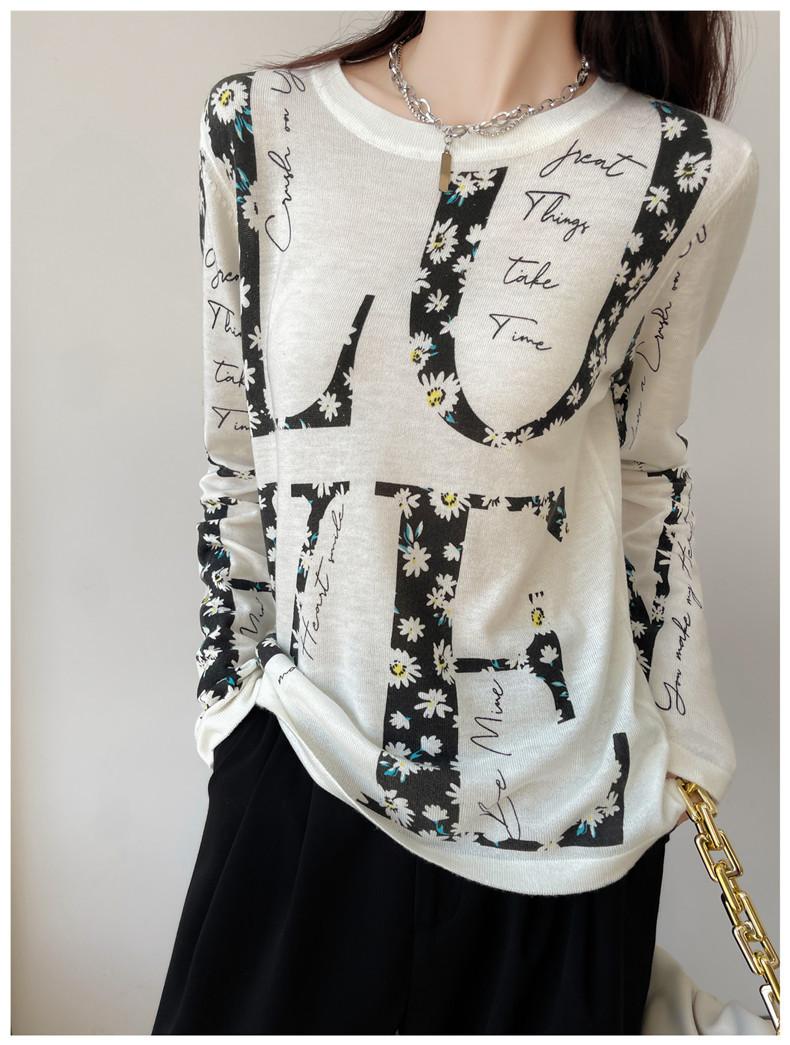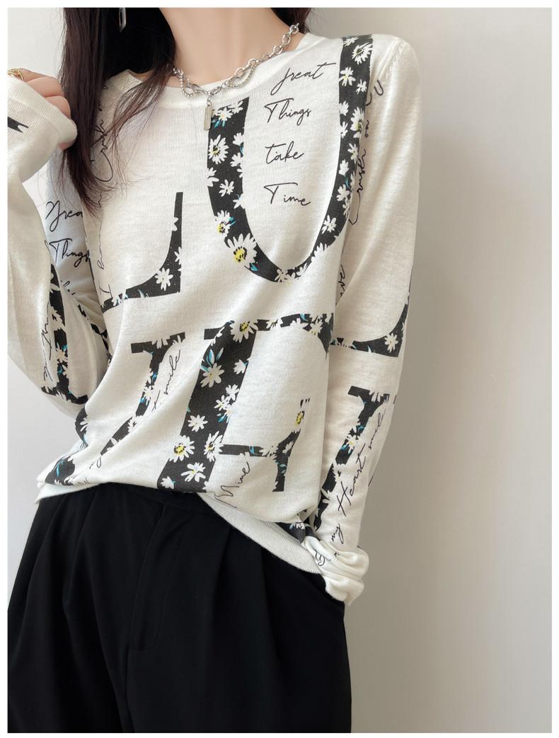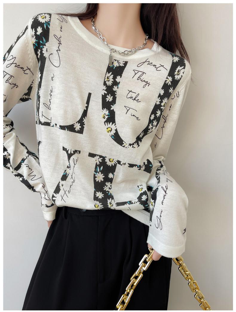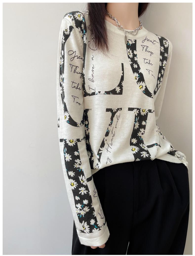 Suéter de lana peinada para mujer, diseño Sense Niche, estampado de letras, manga larga, camisa básica a la moda que combina con todo.