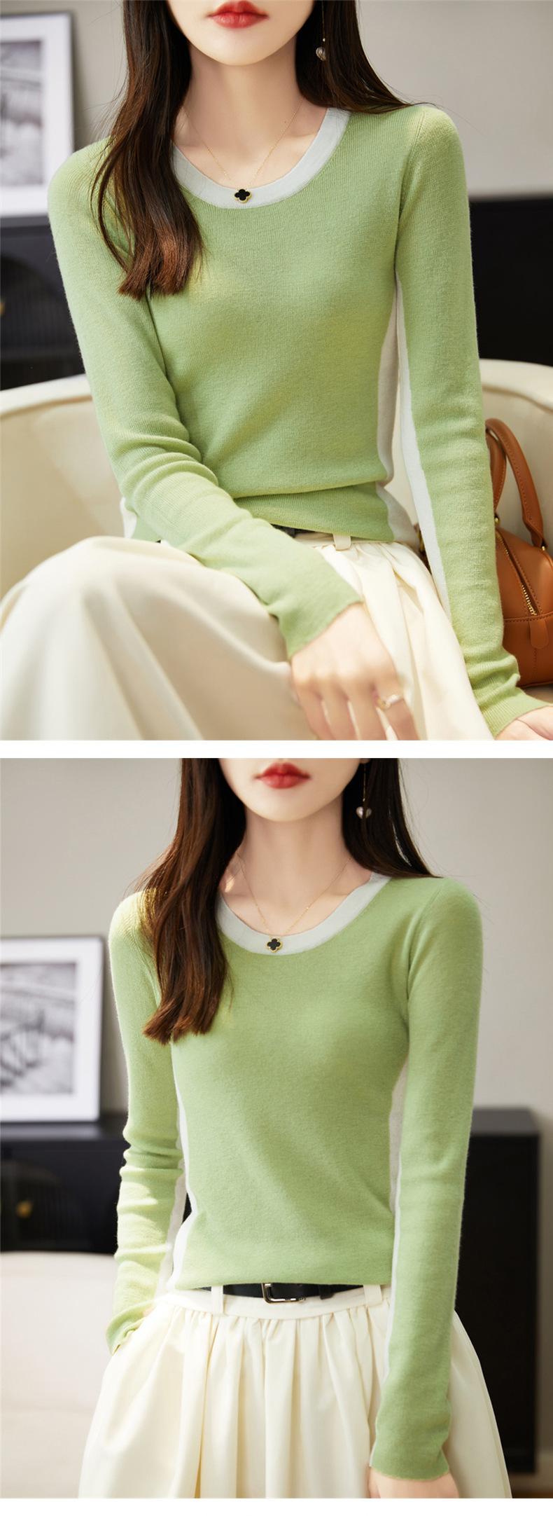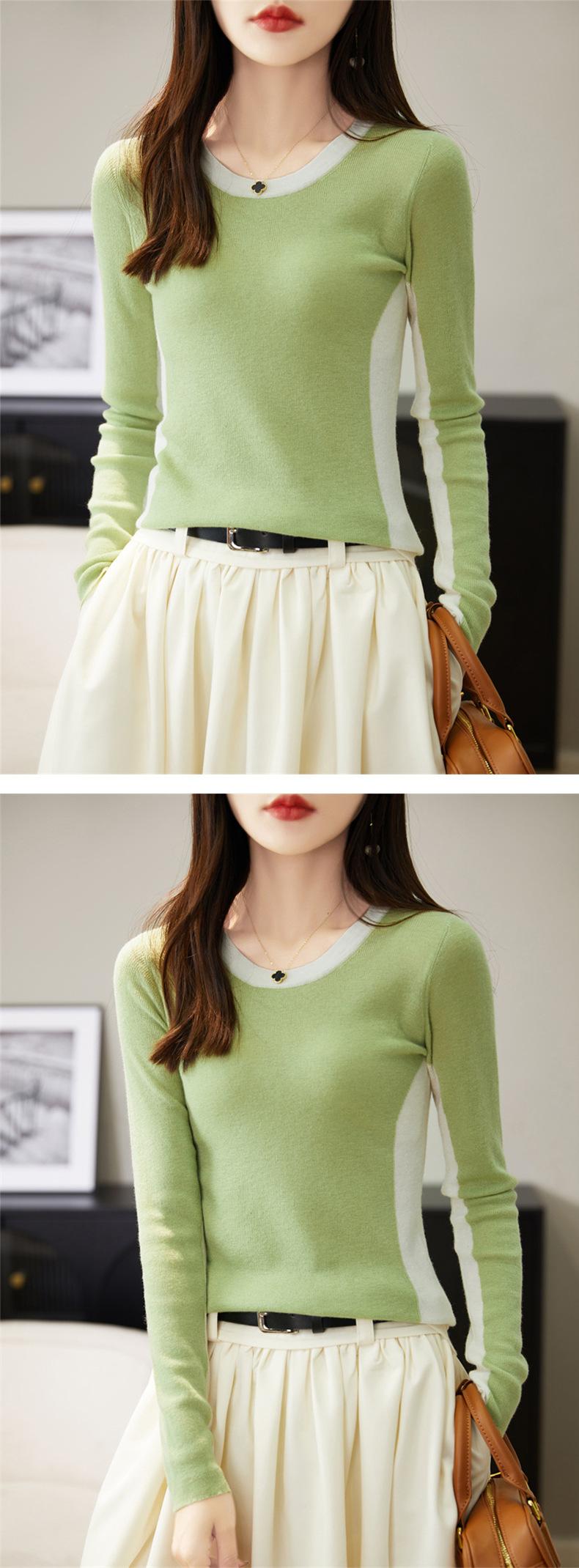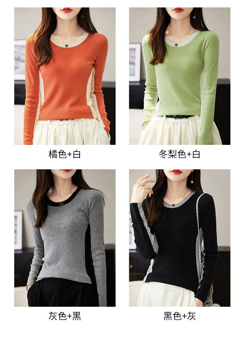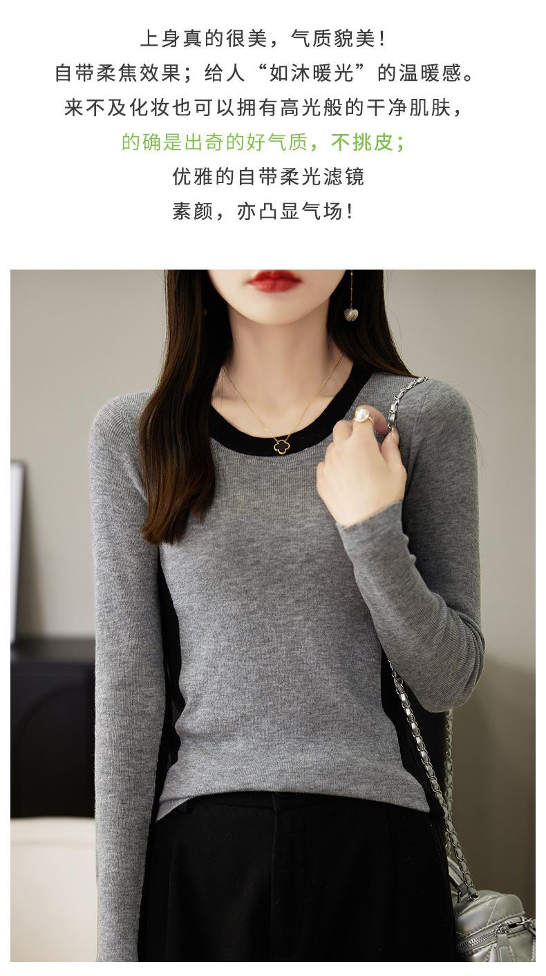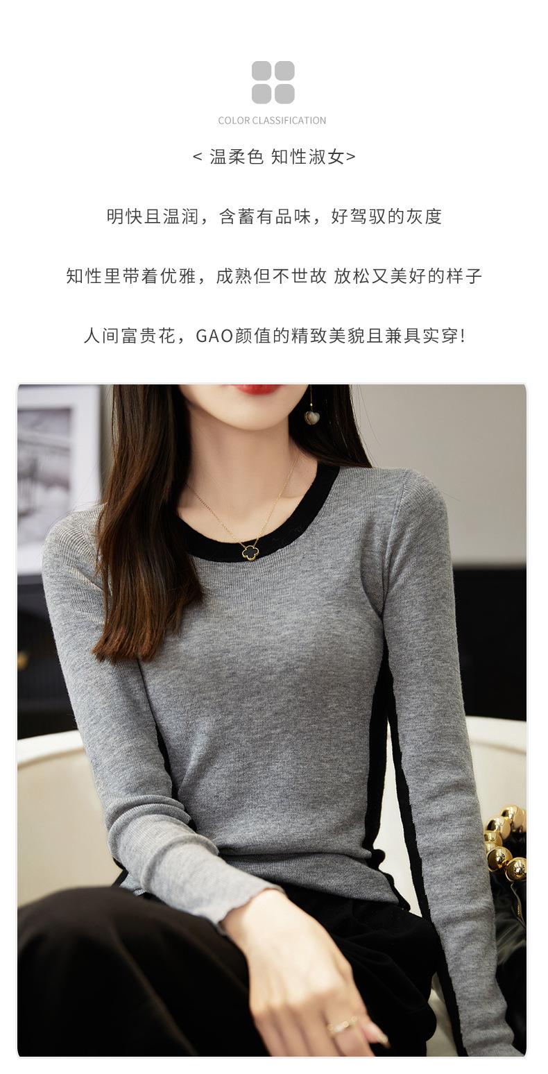 Suéter de lana a juego con colores, camisa de cuello redondo para otoño e invierno, nuevo suéter fino para mujer, suéter de punto con parte superior interior ajustada