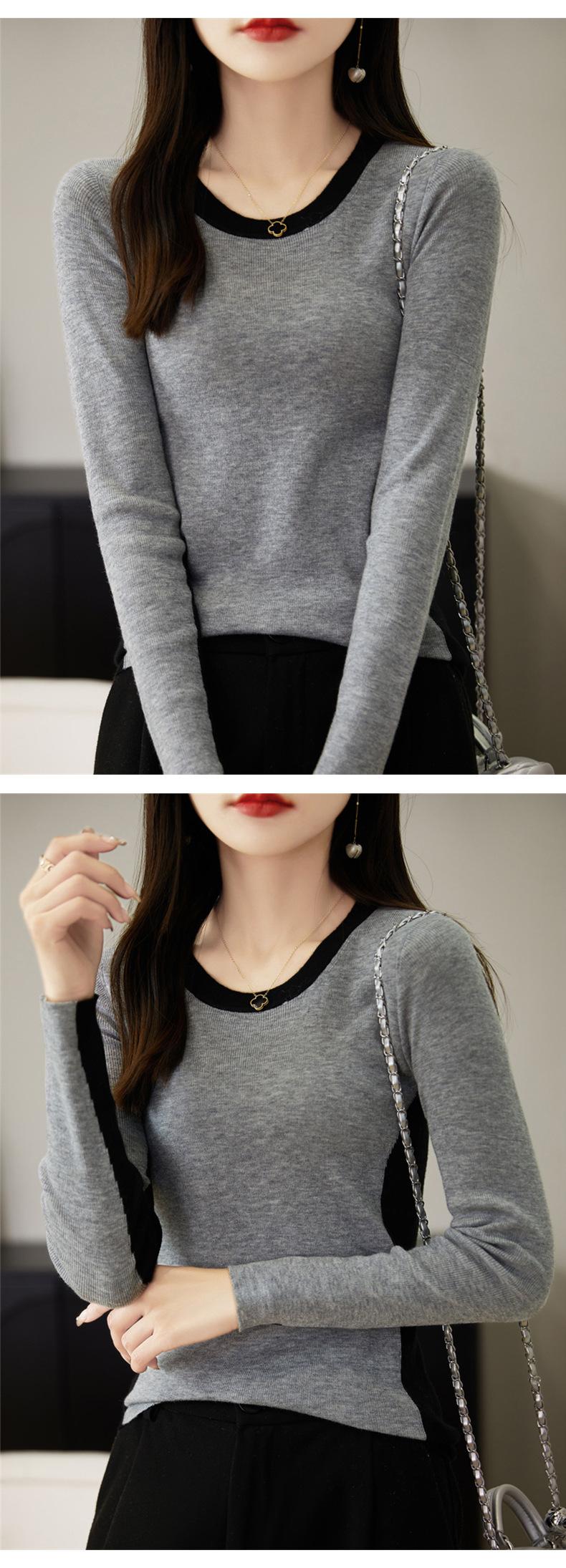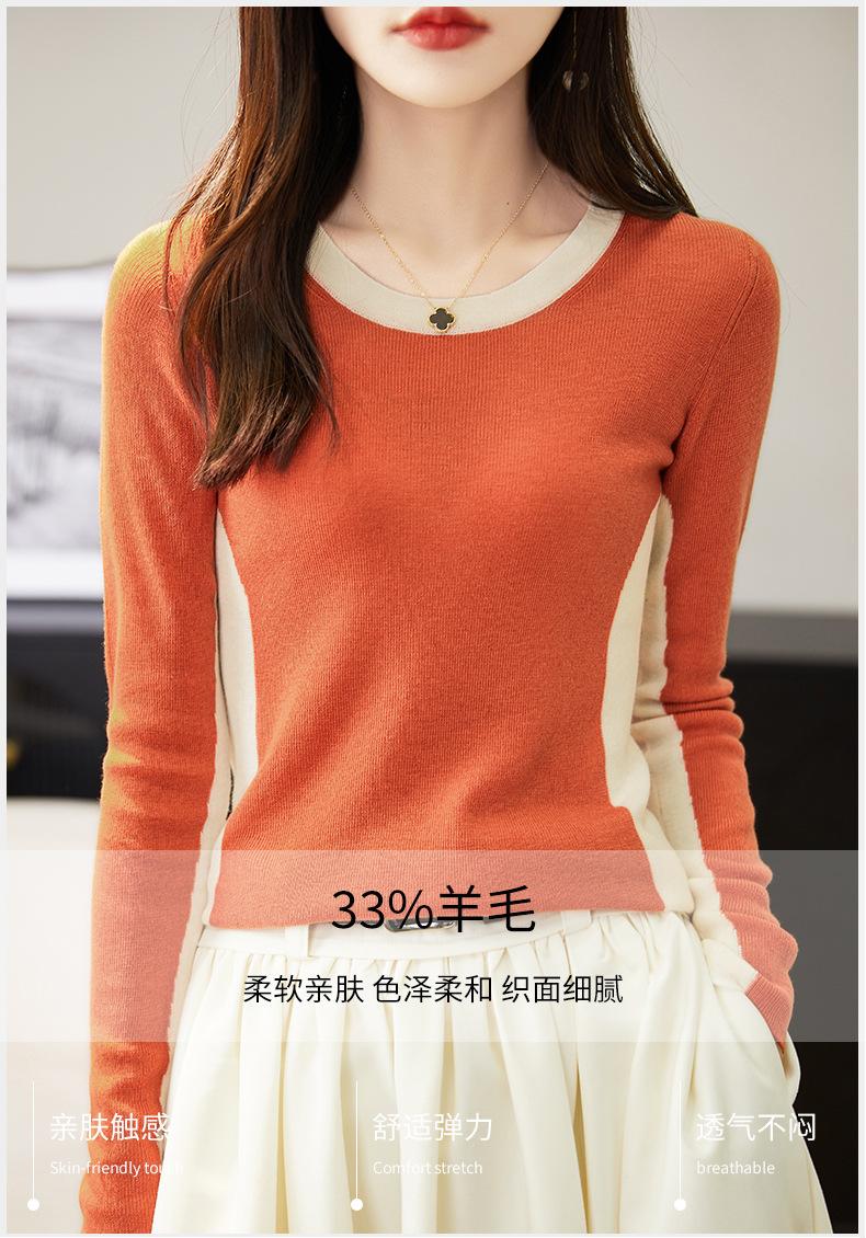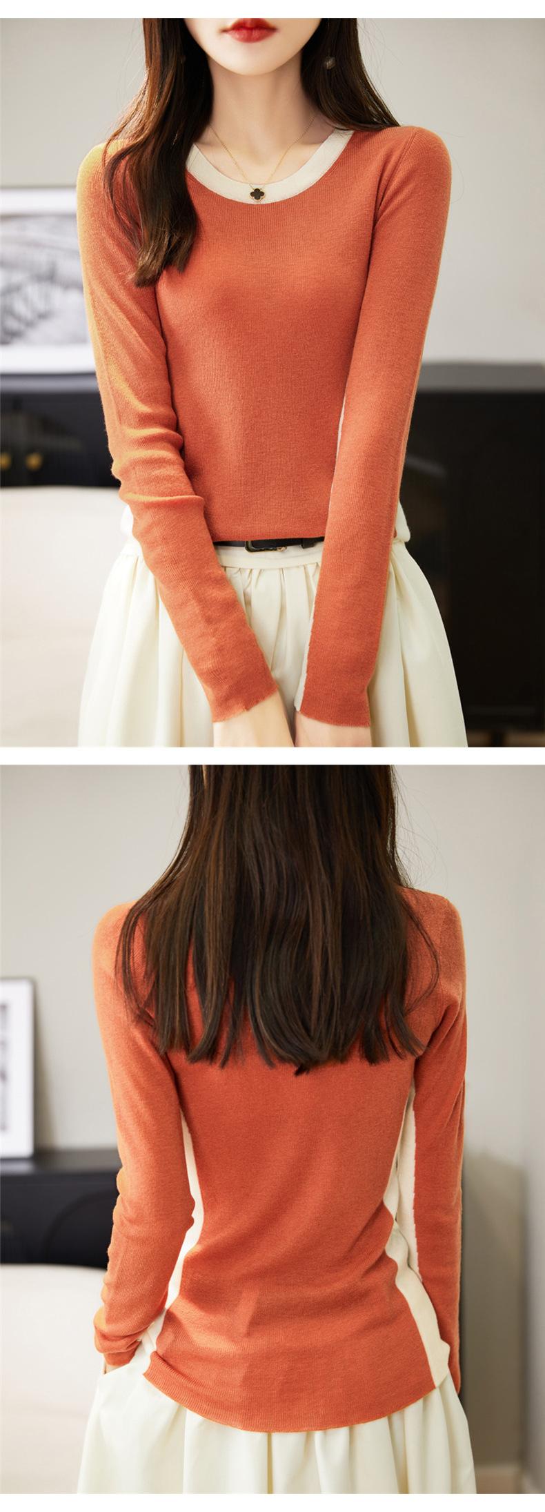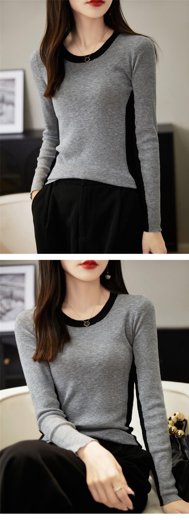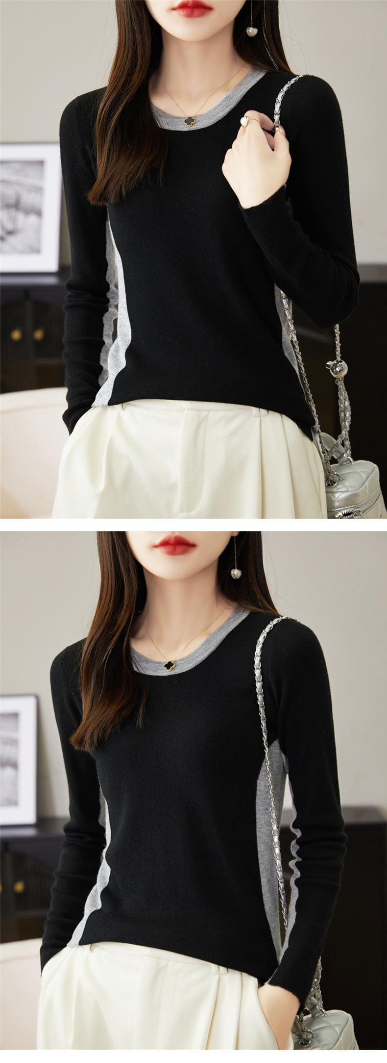Suéter de lana a juego con colores, camisa de cuello redondo para otoño e invierno, nuevo suéter fino para mujer, suéter de punto con parte superior interior ajustada