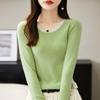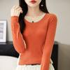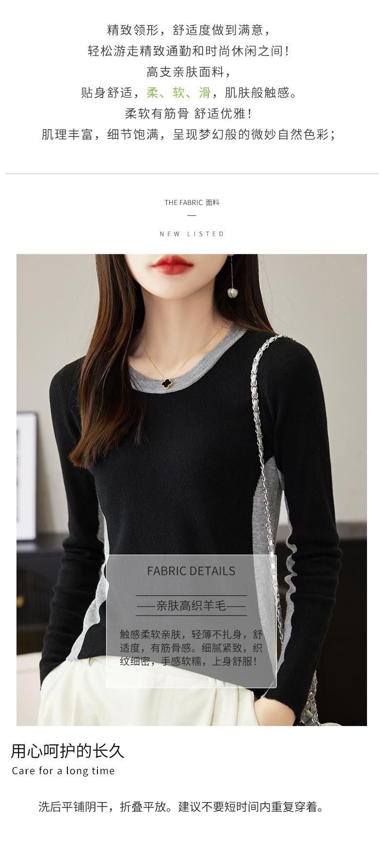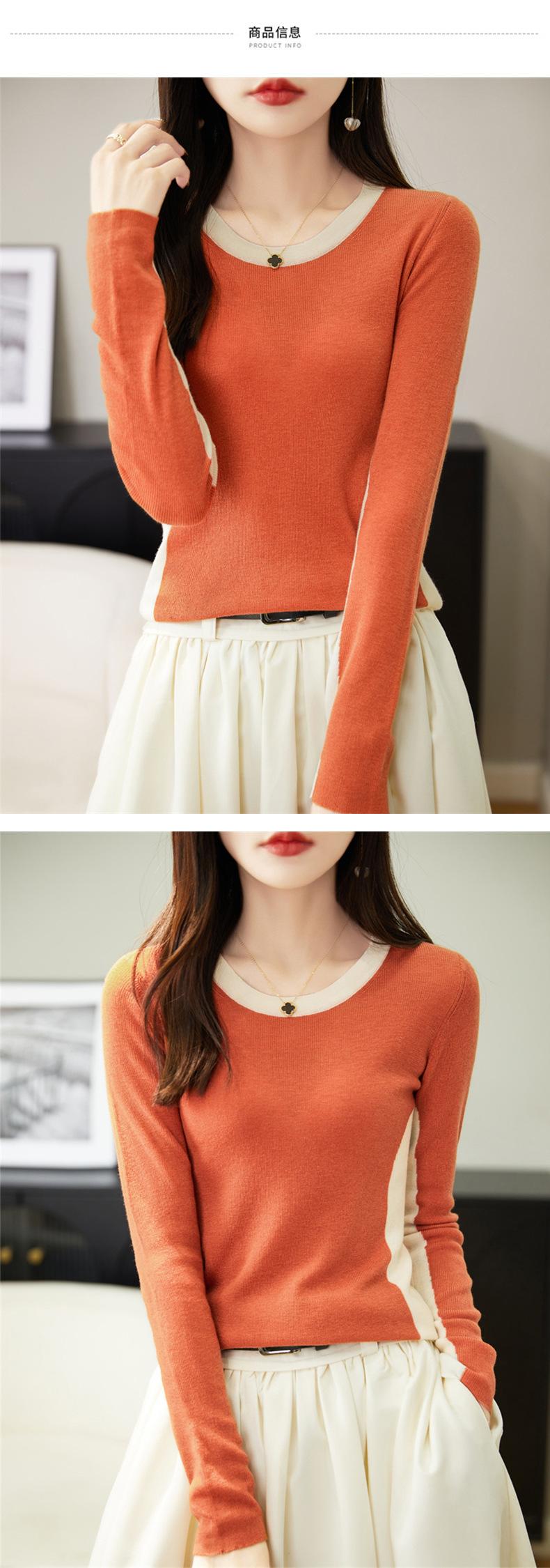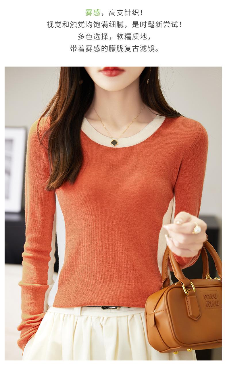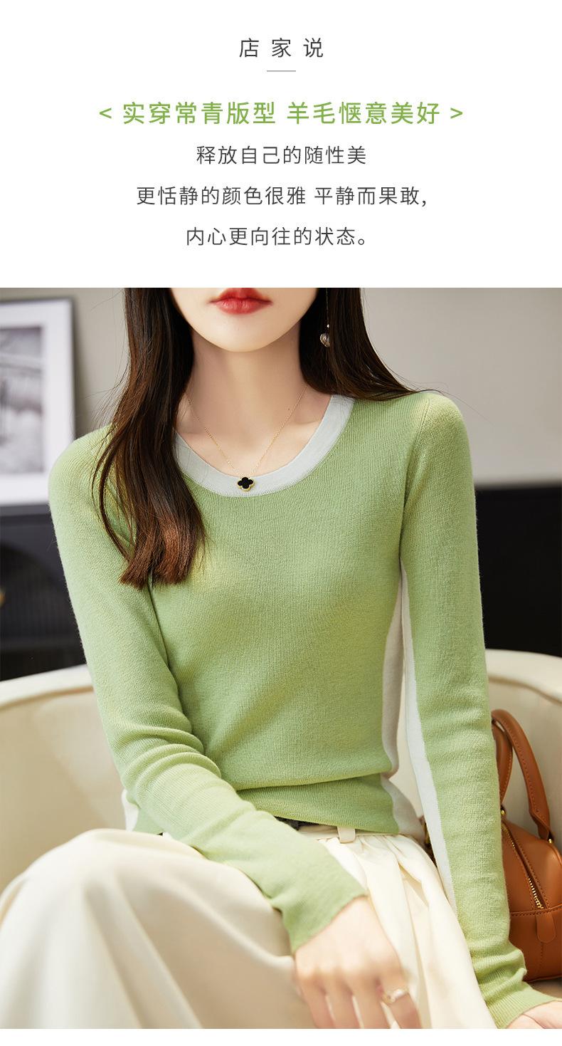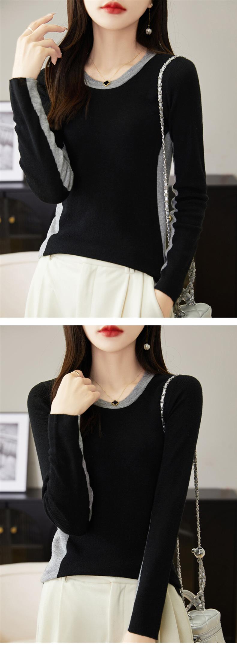 Suéter de lana a juego con colores, camisa de cuello redondo para otoño e invierno, nuevo suéter fino para mujer, suéter de punto con parte superior interior ajustada