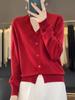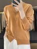 Cárdigan de Punto de Lana Peinada con Cuello en V Nuevo 2024 para Mujer Estilo Coreano Moda Combinable Suéter de Manga Larga Color Sólido Básico