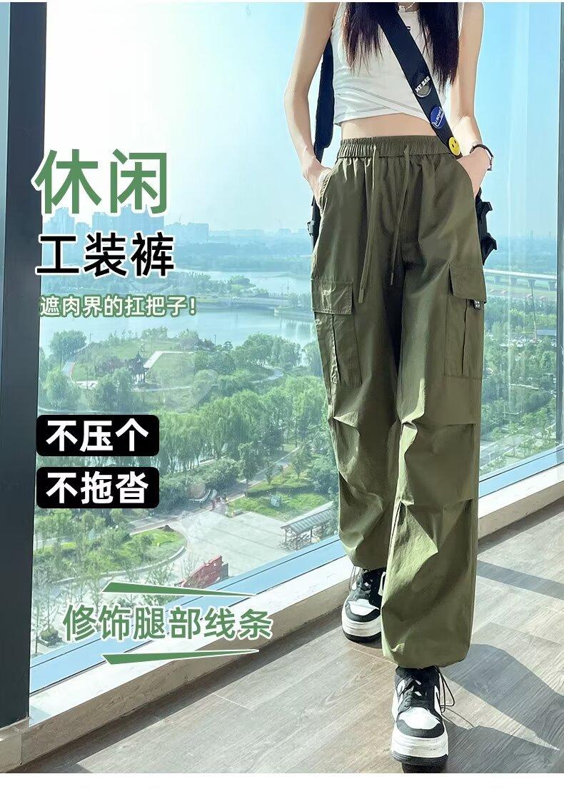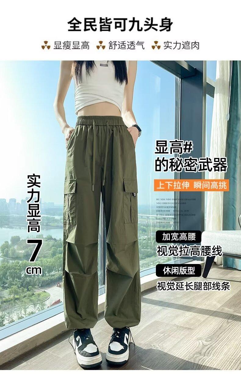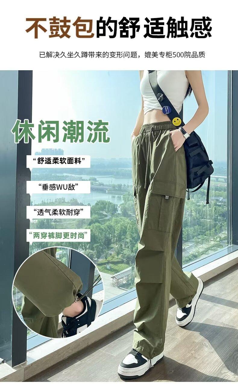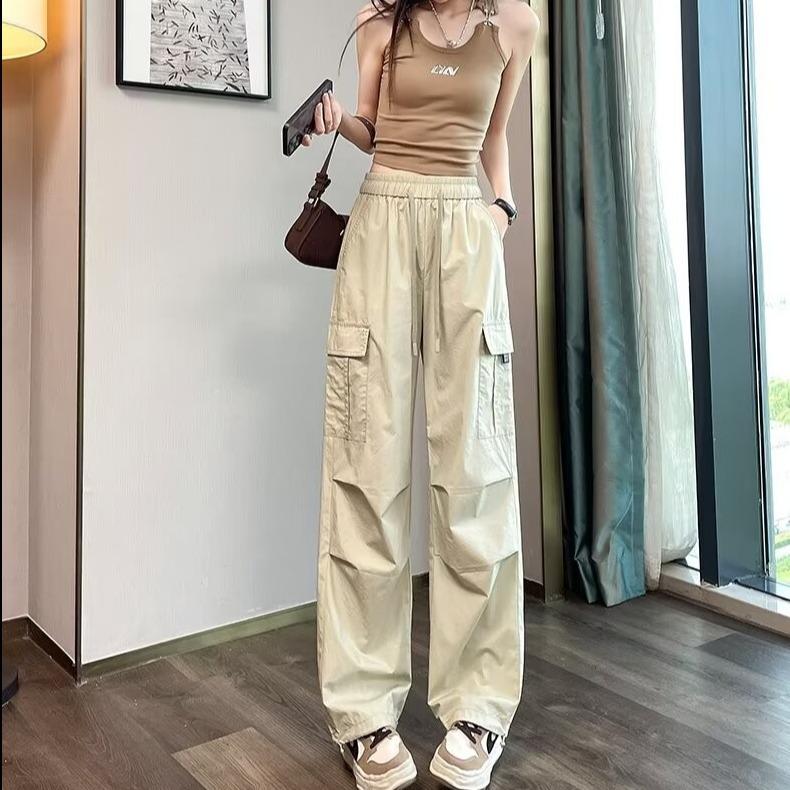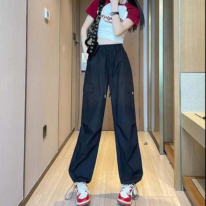 Overoles Americanos Mujer Primavera 2024 Nuevo Suelto Casual Pie Montañismo Pantalones Deportivos Cintura Alta Rectos Pierna Ancha