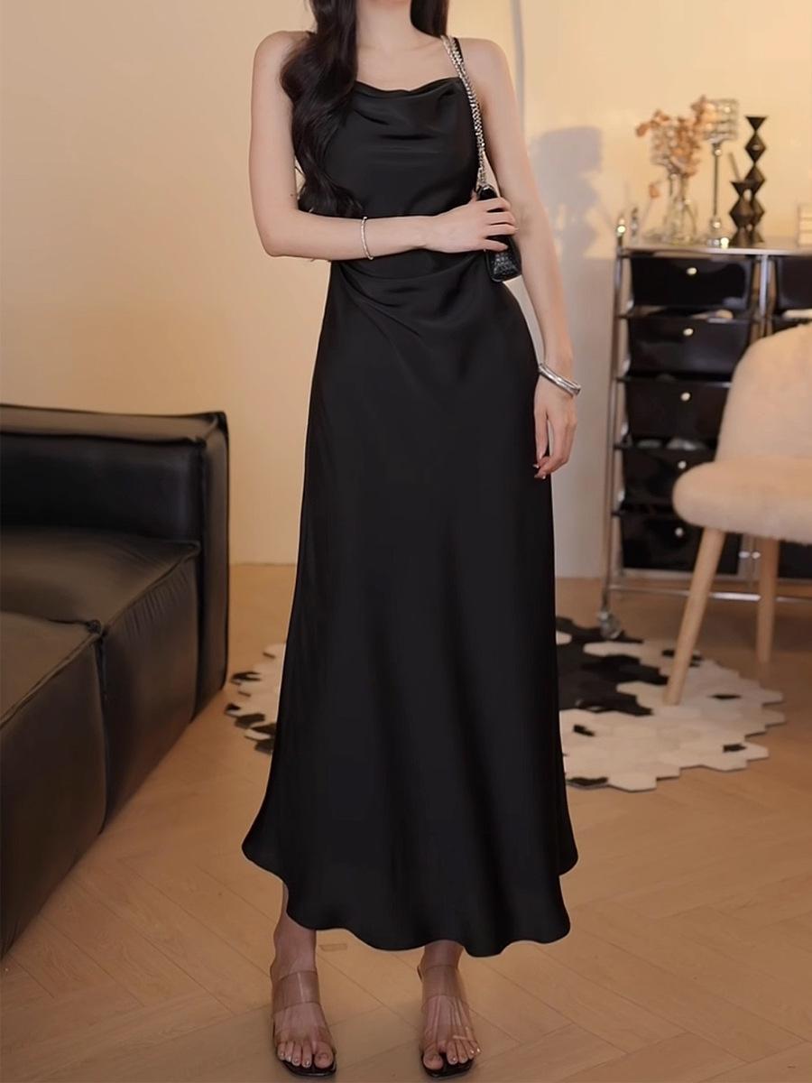 Compra Elegante elegante vestido de tirantes verano nuevo textura de alta gama moda elegante de alta gama exquisita cintura falda larga al por mayor en Joom.pro