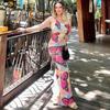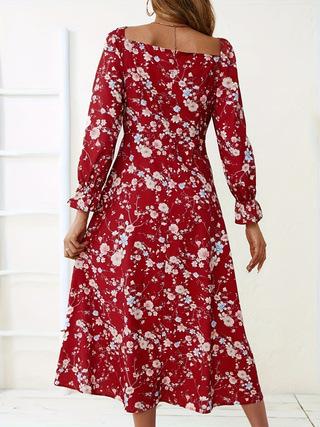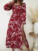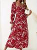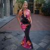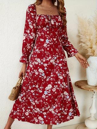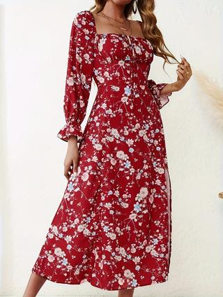 Ropa de mujer europea y americana de Amazon 2025 nuevo vestido estampado floral sin espalda ajustado manga larga con abertura