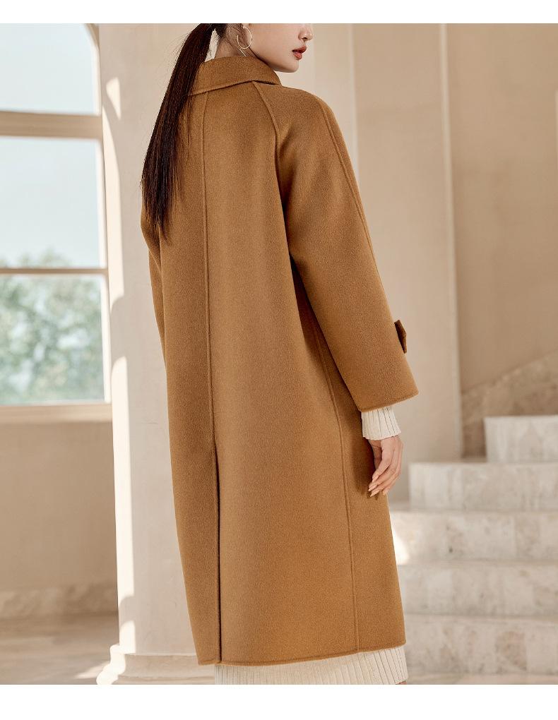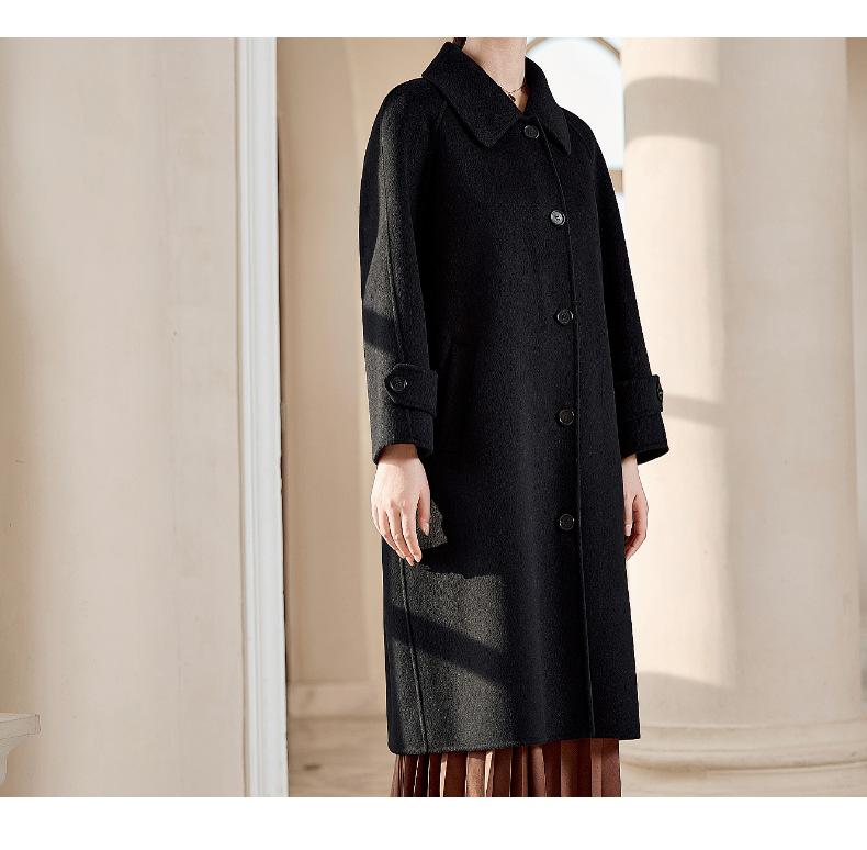 100 Cachemira Pura 2025 Nuevo Abrigo Holgado de Lana de Doble Cara para Mujer de Longitud Media Estilo Coreano Abrigo Pequeño de Lana