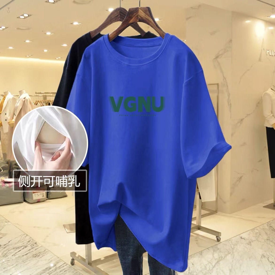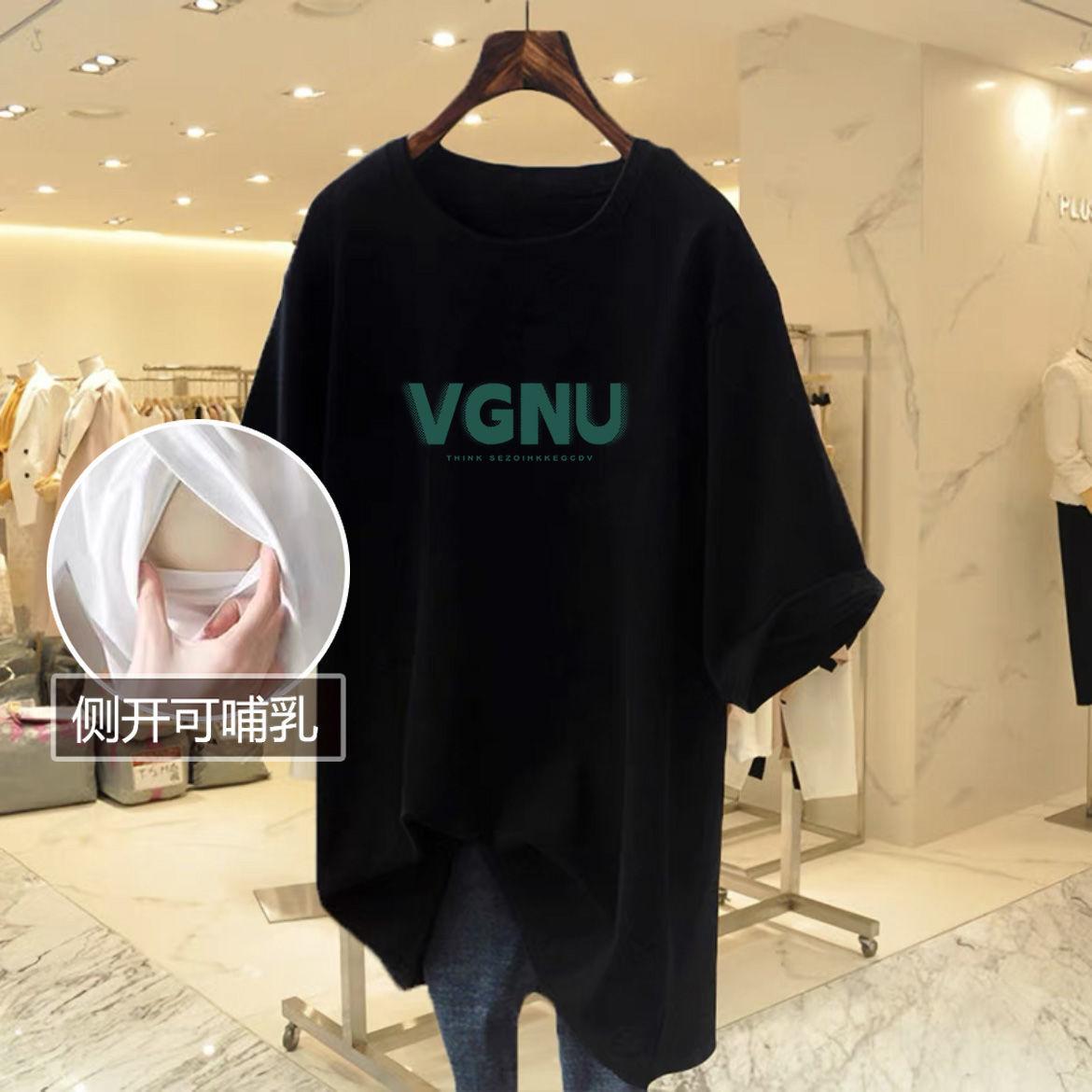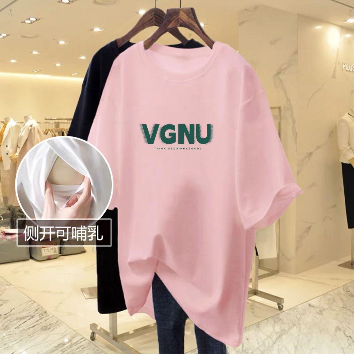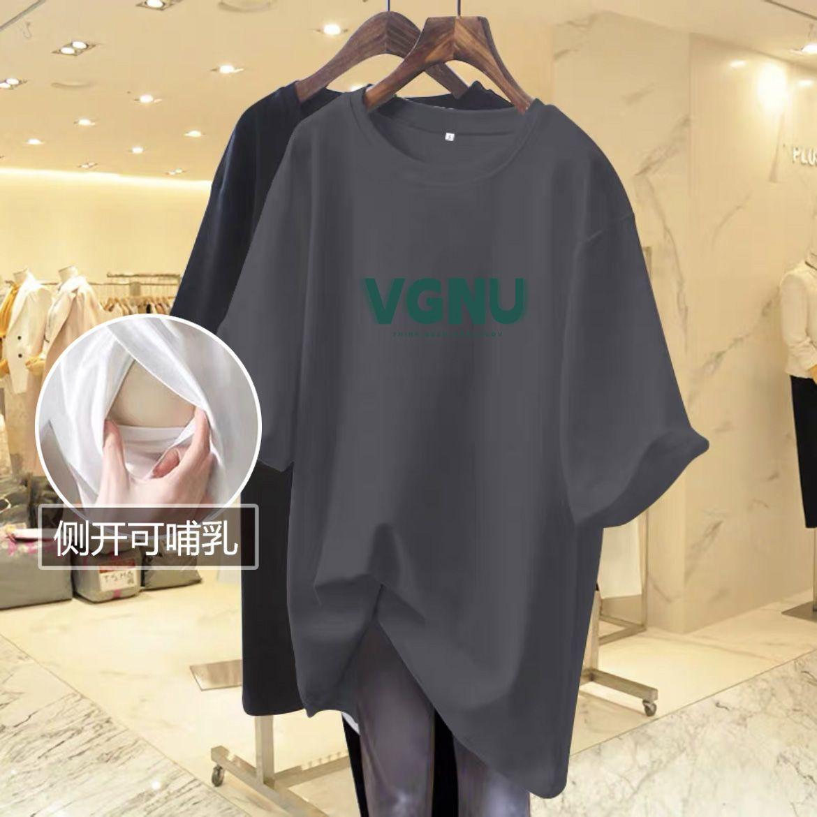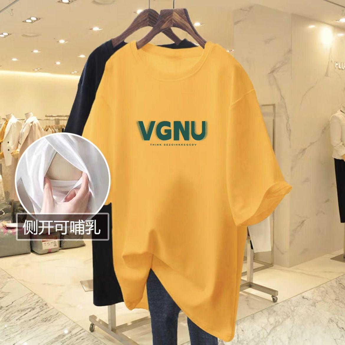 Camiseta de manga corta para lactancia materna, prenda exterior de verano para postparto, con abertura lateral, para adelgazar y de longitud media.