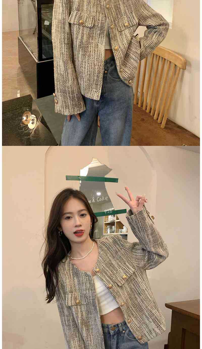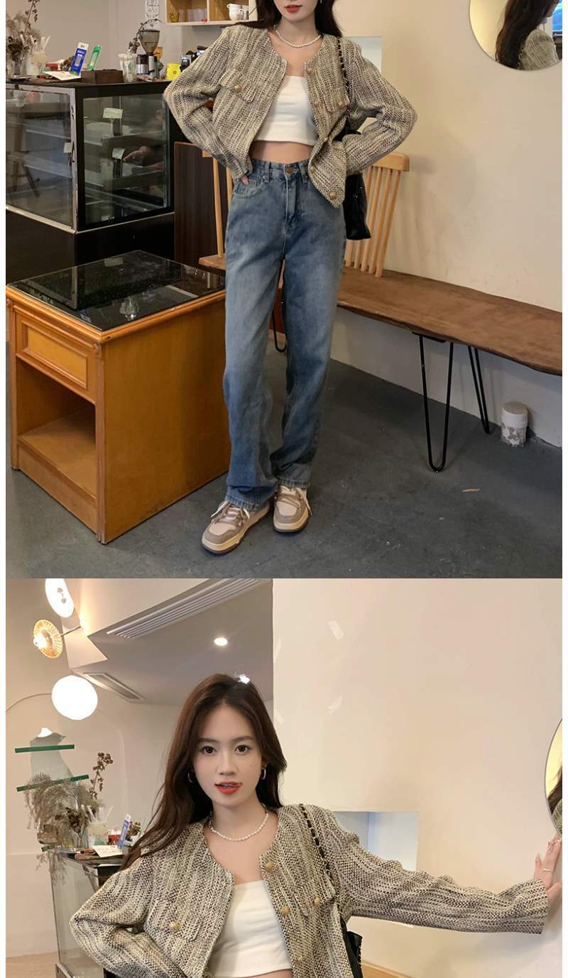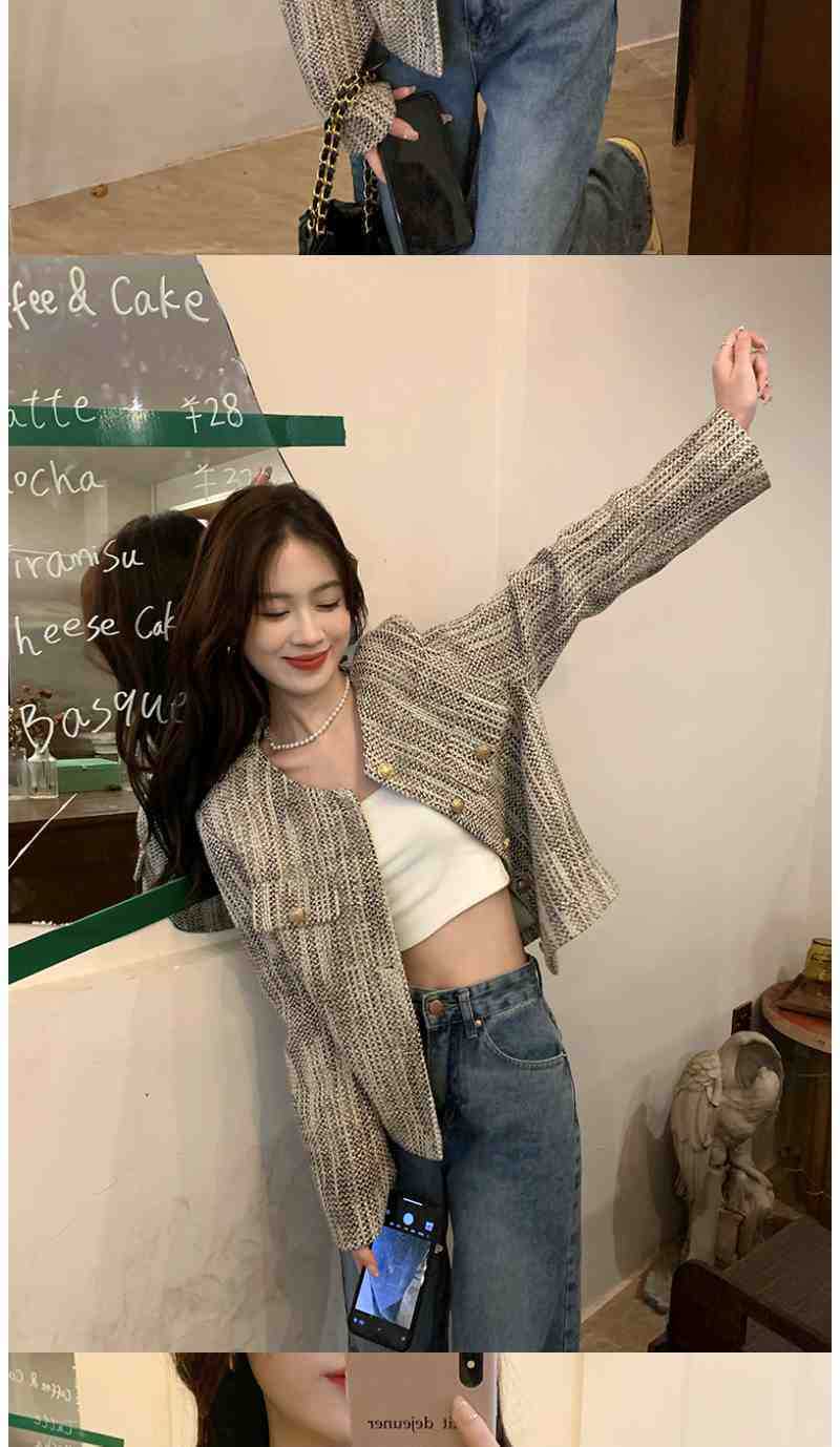 Chaqueta Corta Estilo Tweed de Manga Larga para Mujer Primavera 2025 Nuevo Diseño de Alta Gama Estilo Occidental Ins Top Cárdigan