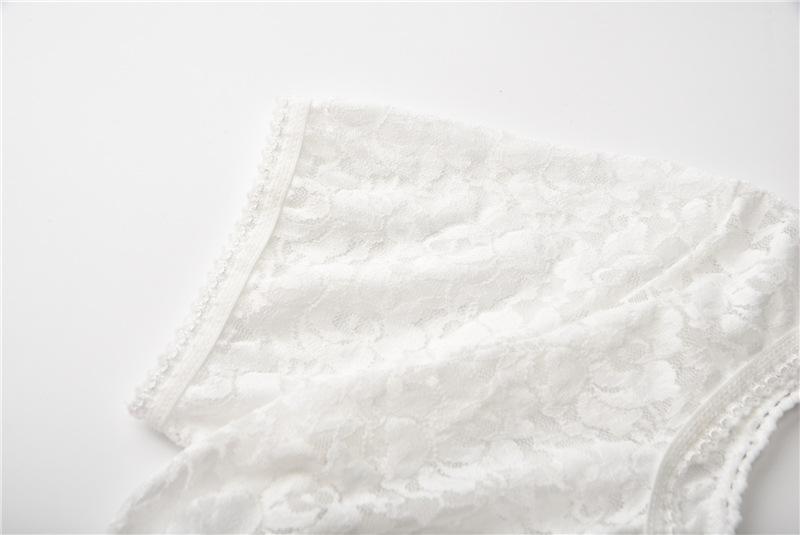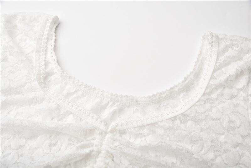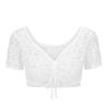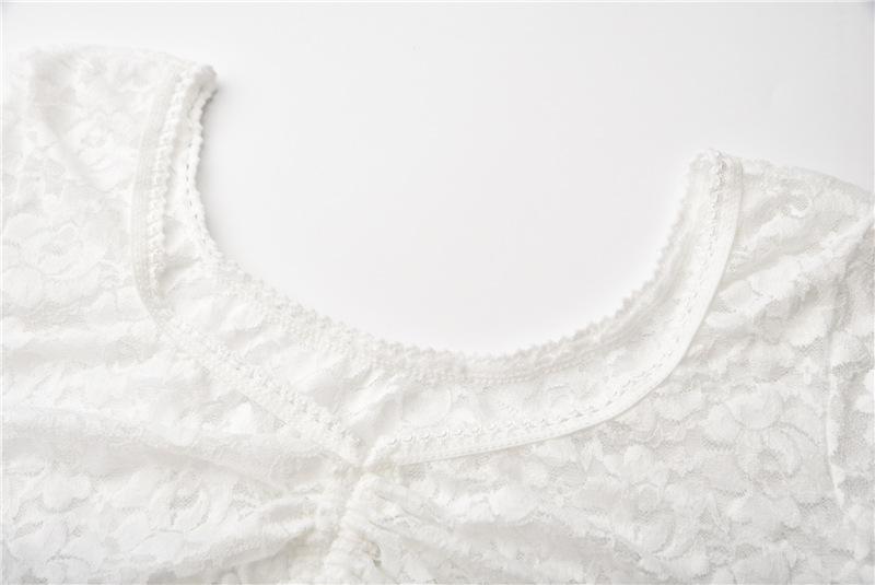 Diseño de Verano Nuevo Europeo y Americano Color Sólido Encaje Manga Corta Perspectiva Escote en V Profundo Sexy Top Hueco Camisa Corta con Cordones