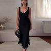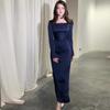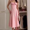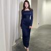 Vestido elegante ajustado con cinturón y cuello cuadrado de color liso para mujer, estilo transfronterizo europeo y americano de verano de 2024