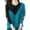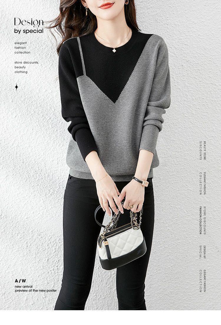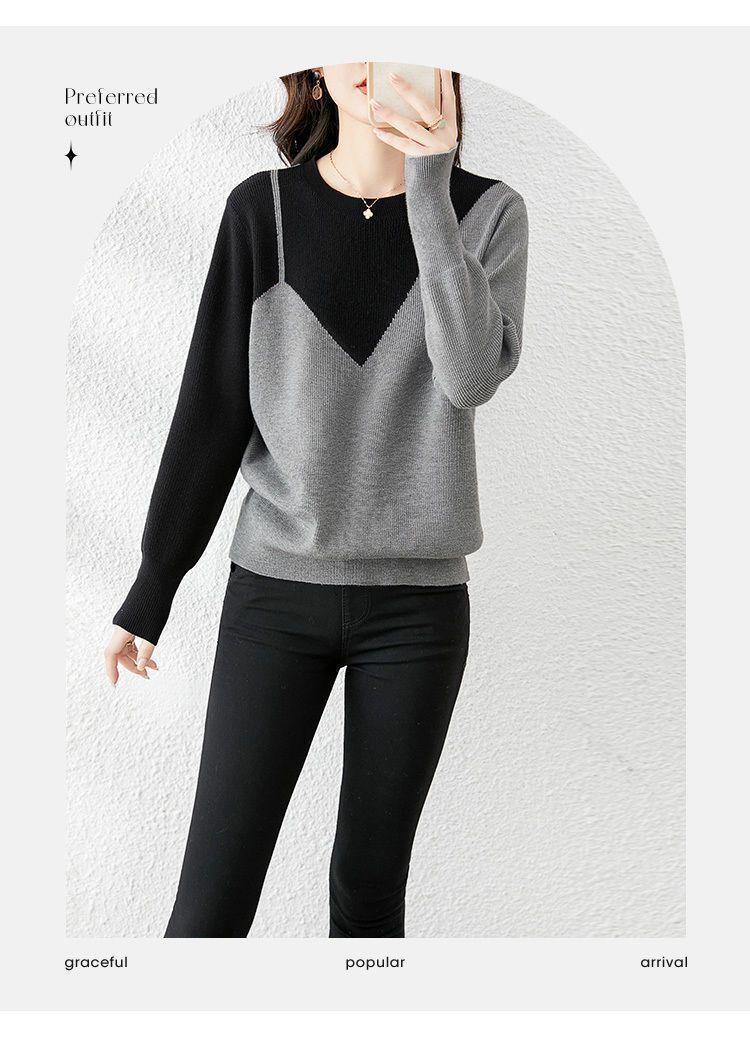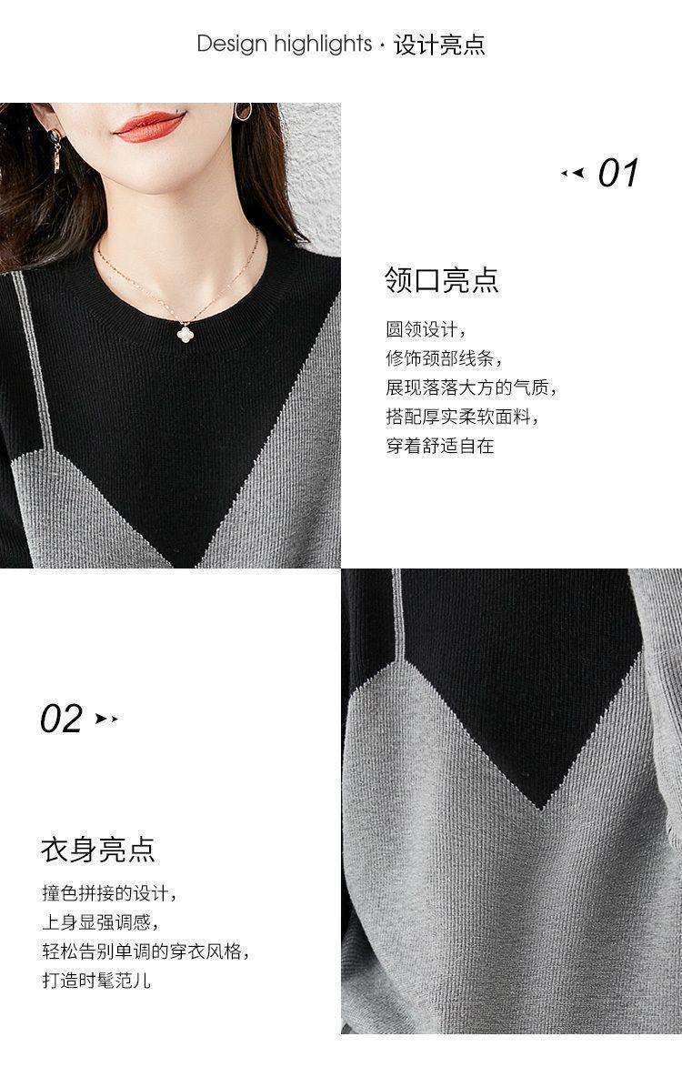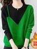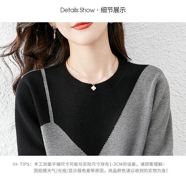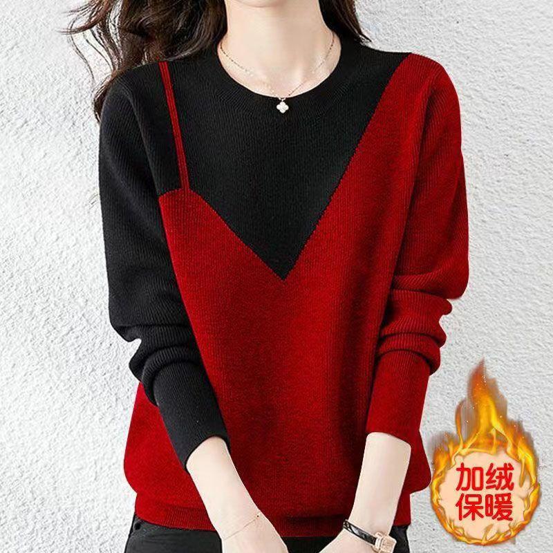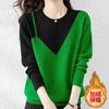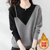 Suéter grueso con forro polar para otoño e invierno 2024 para mujer, nueva moda, camisa base de punto en contraste, estilo extranjero, top de suéter holgado