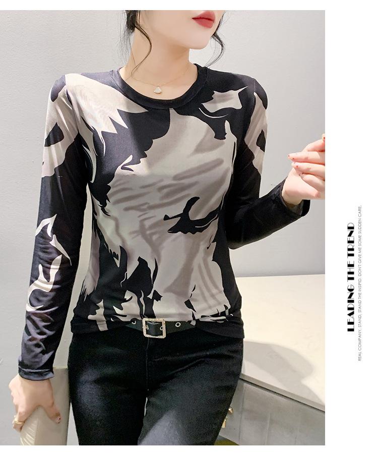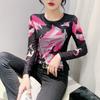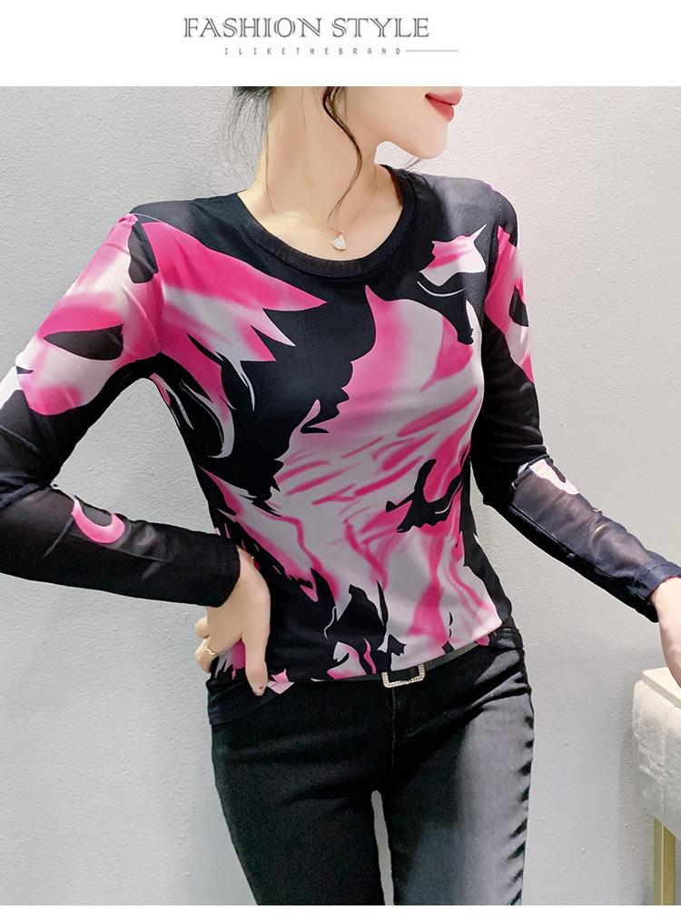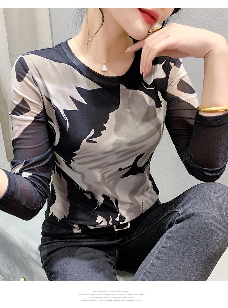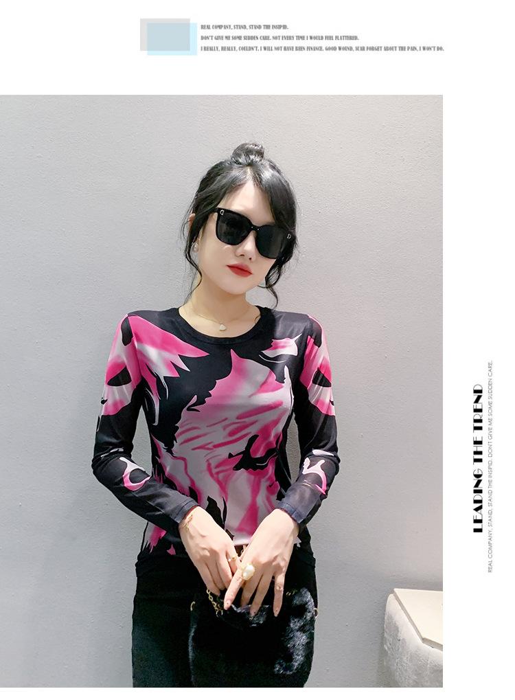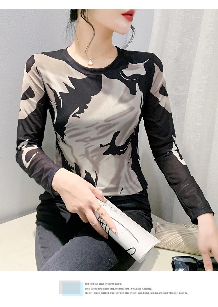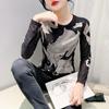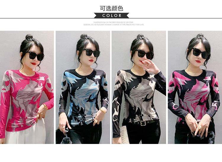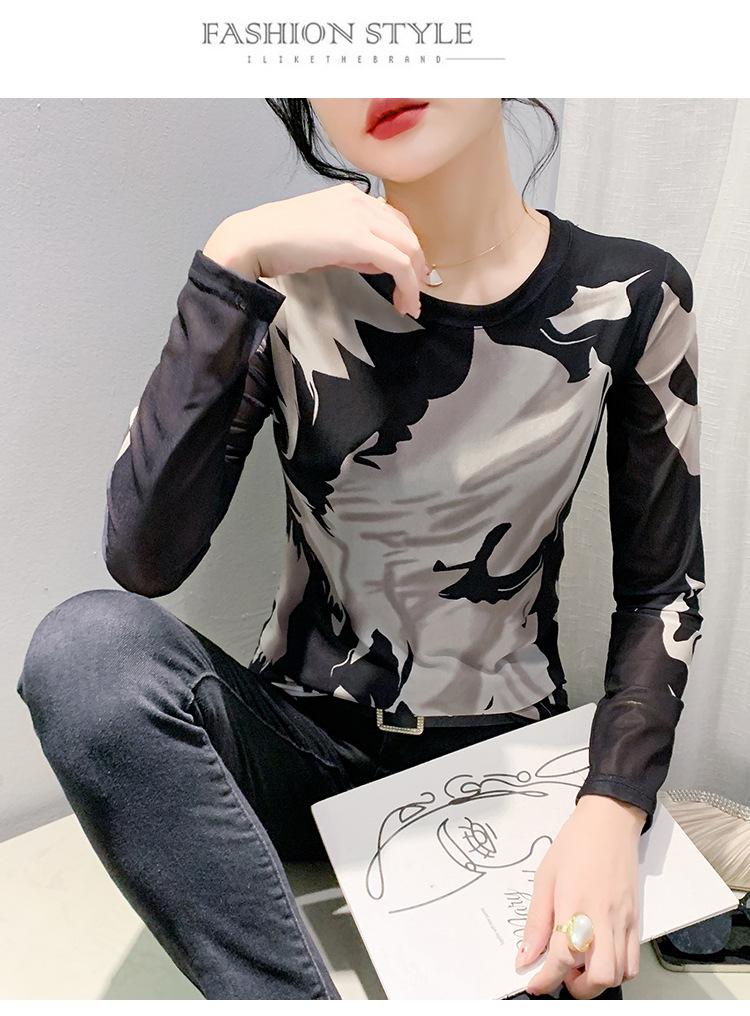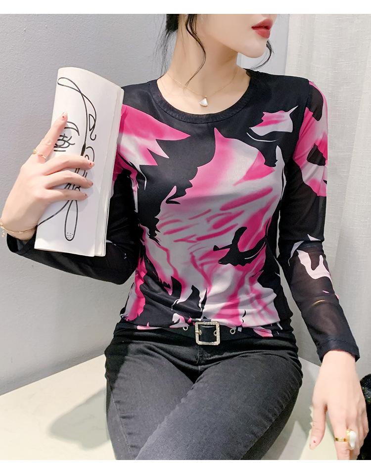Camiseta básica de cuello redondo para mujer, otoño e invierno, moda europea, top de malla de color contrastante, camiseta ajustada de manga larga, camiseta pequeña