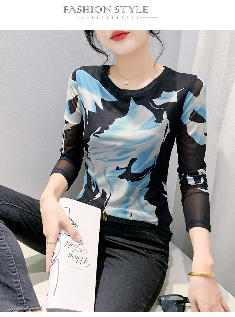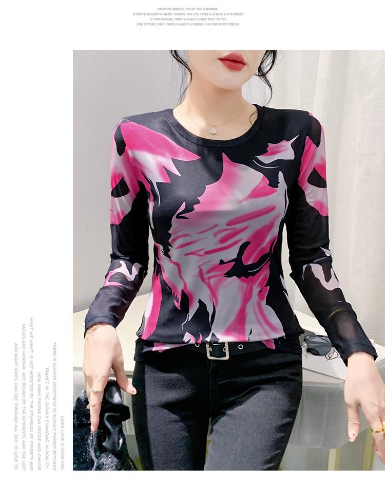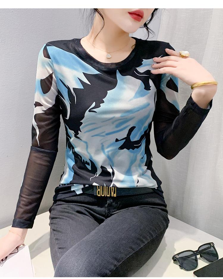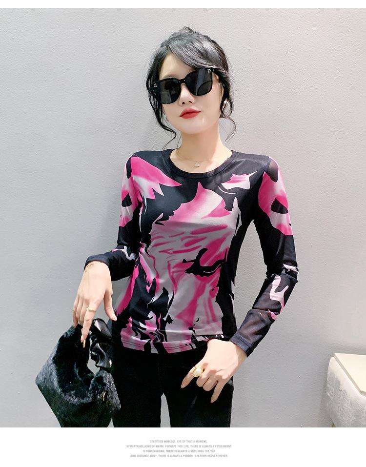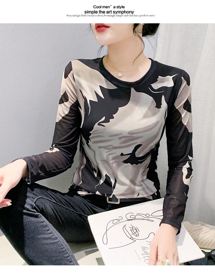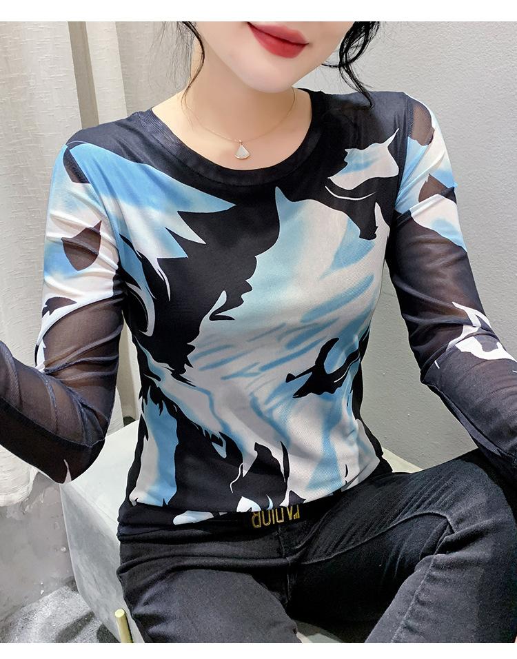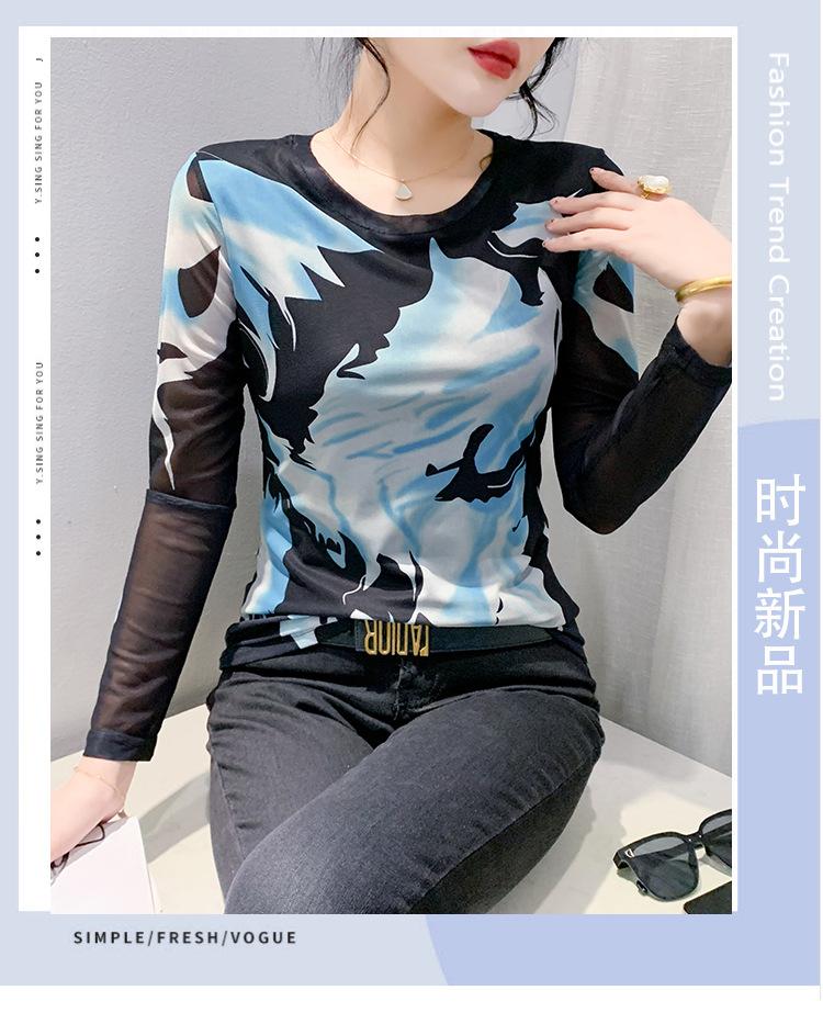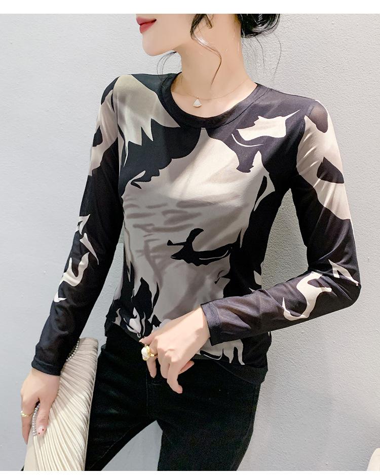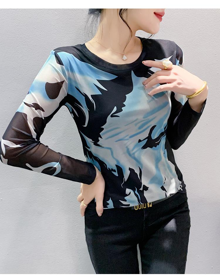 Camiseta básica de cuello redondo para mujer, otoño e invierno, moda europea, top de malla de color contrastante, camiseta ajustada de manga larga, camiseta pequeña