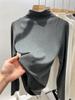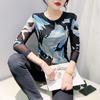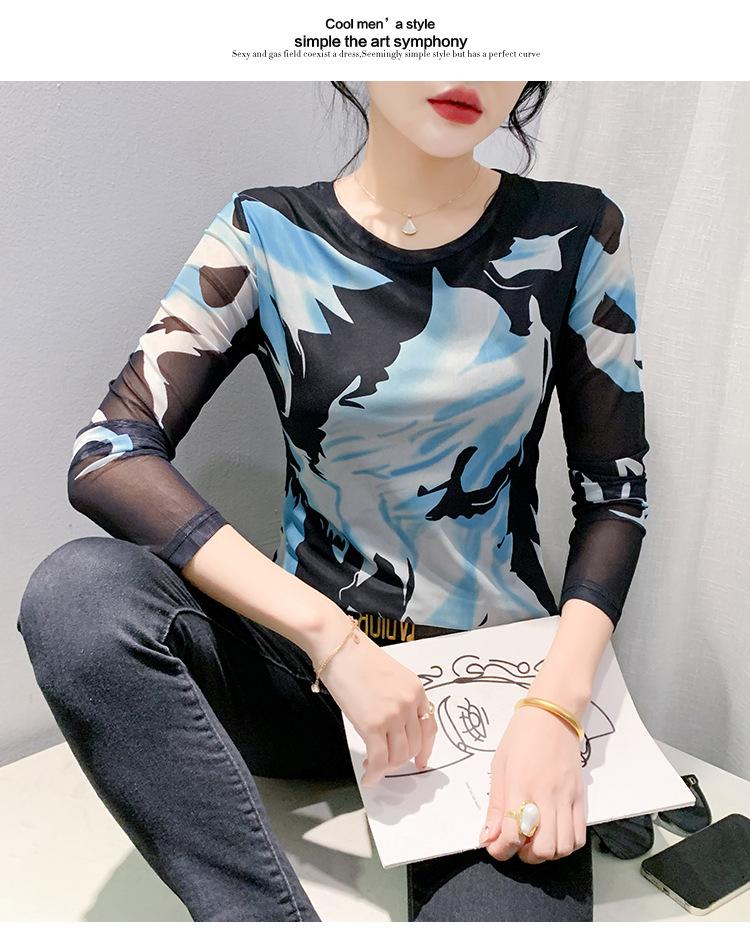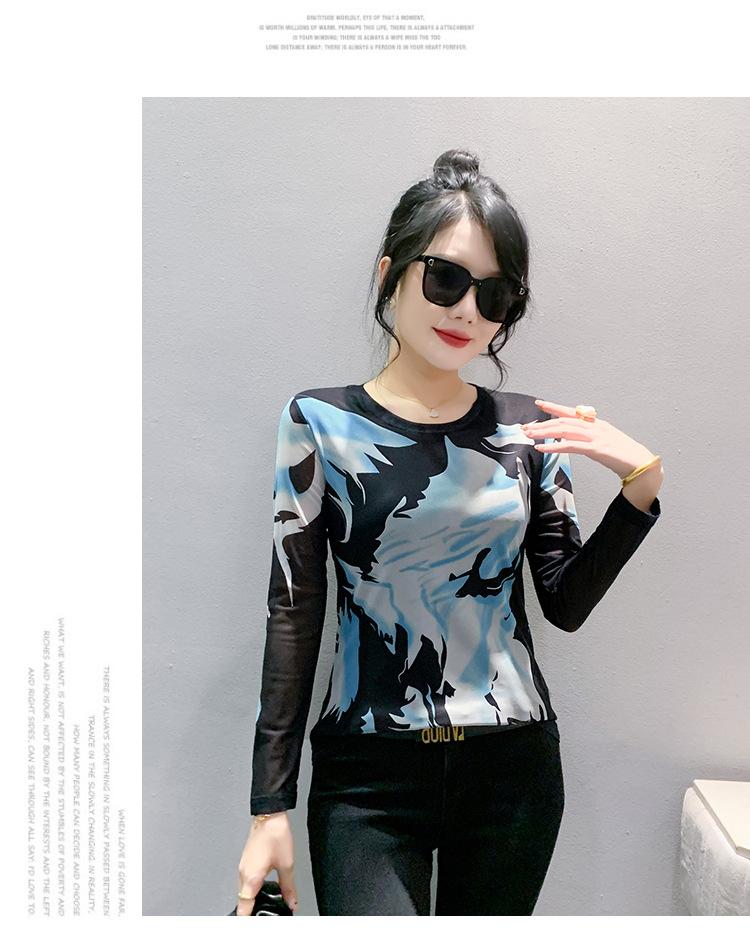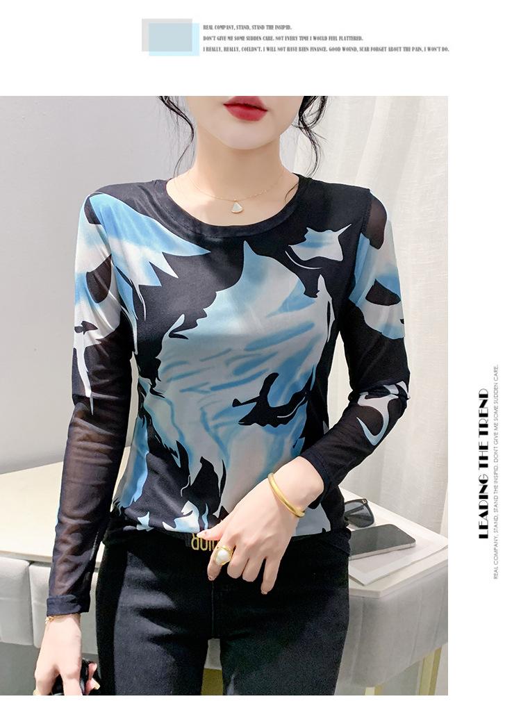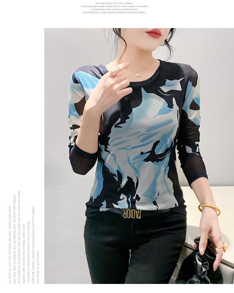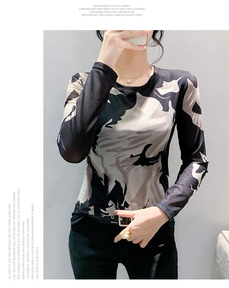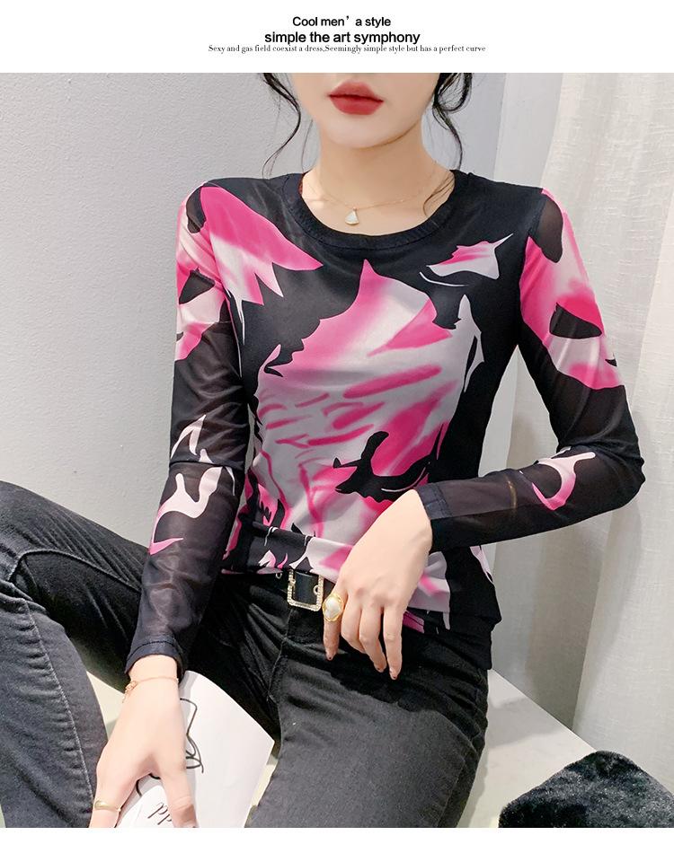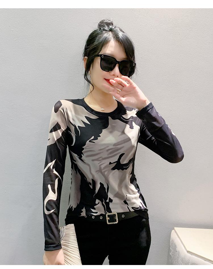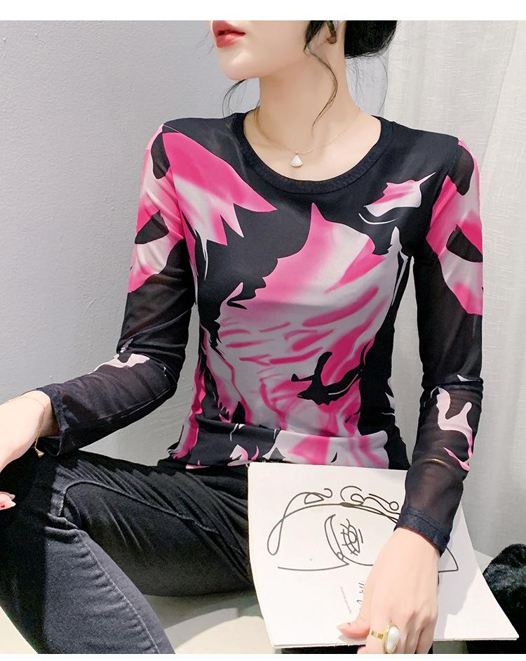 Camiseta básica de cuello redondo para mujer, otoño e invierno, moda europea, top de malla de color contrastante, camiseta ajustada de manga larga, camiseta pequeña