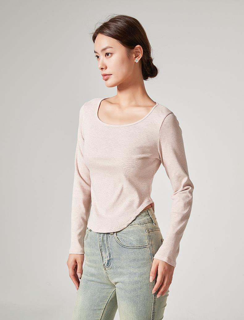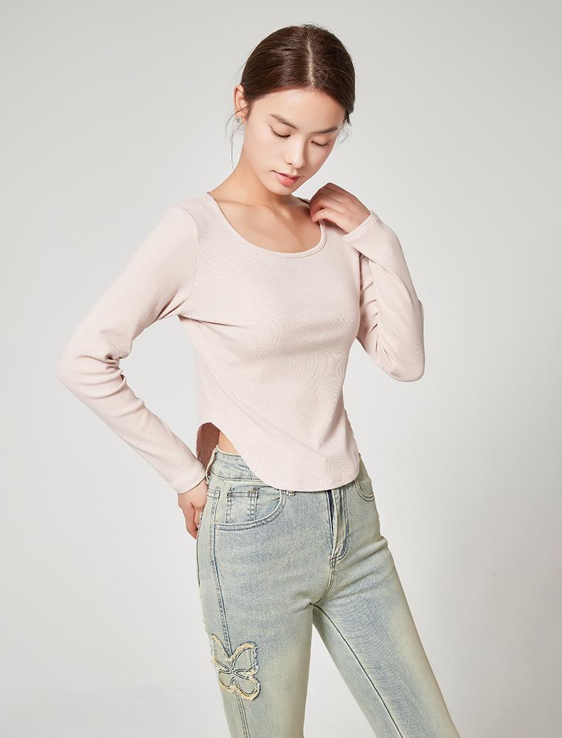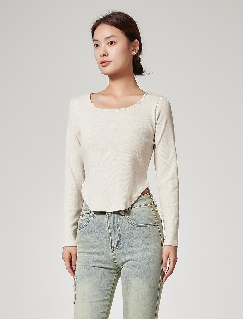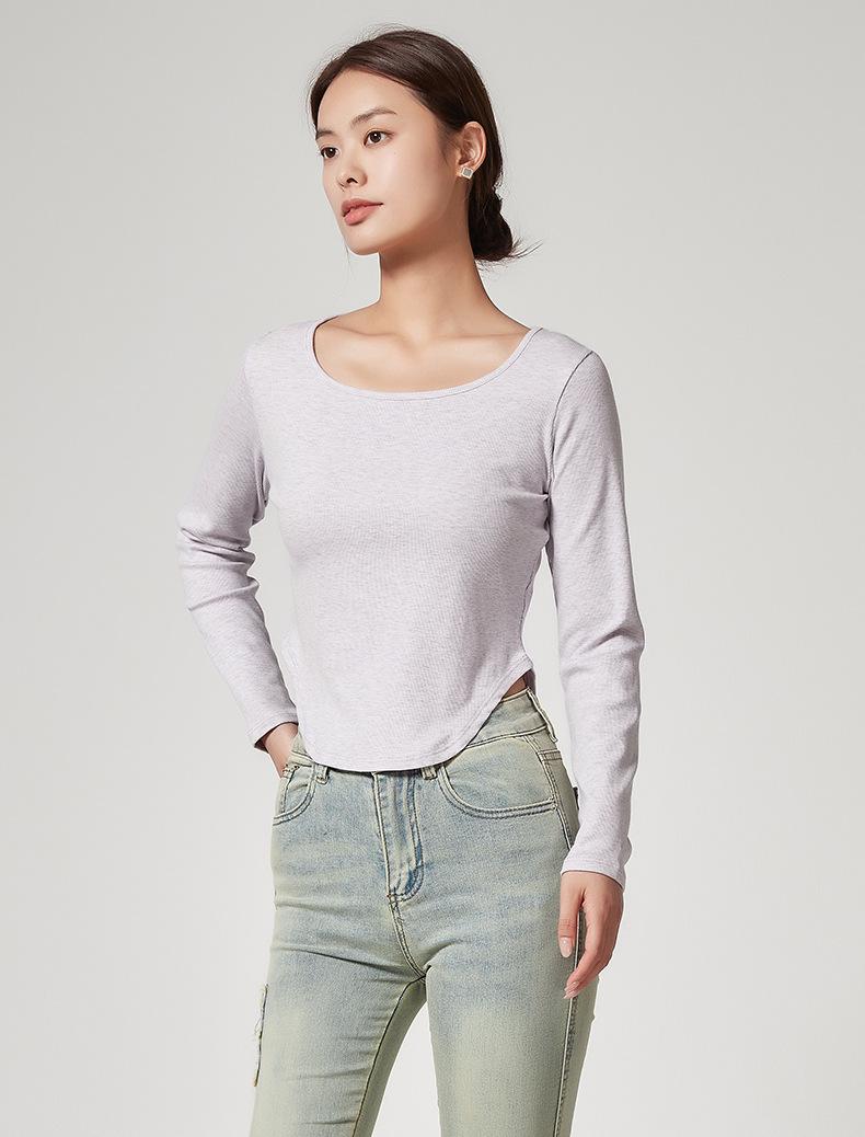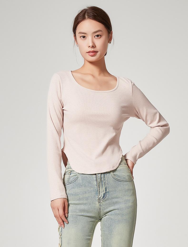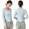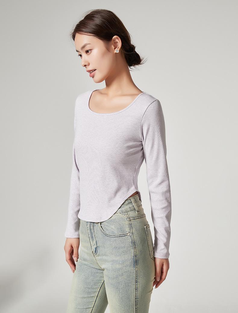 Camiseta Básica de Manga Larga con Patrón de Seda para Mujer Primavera Casual Color Puro Slim Camiseta Estilo Preppy Top Transfronterizo Trbottomyy Se Puede Usar Afuera