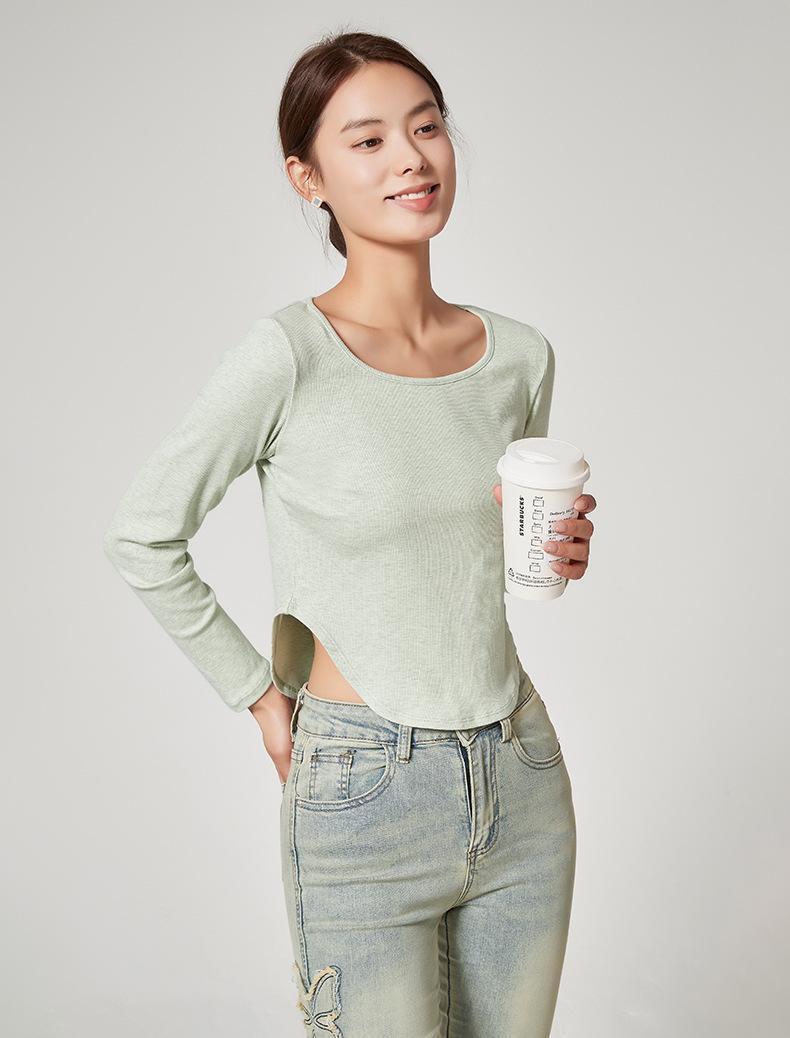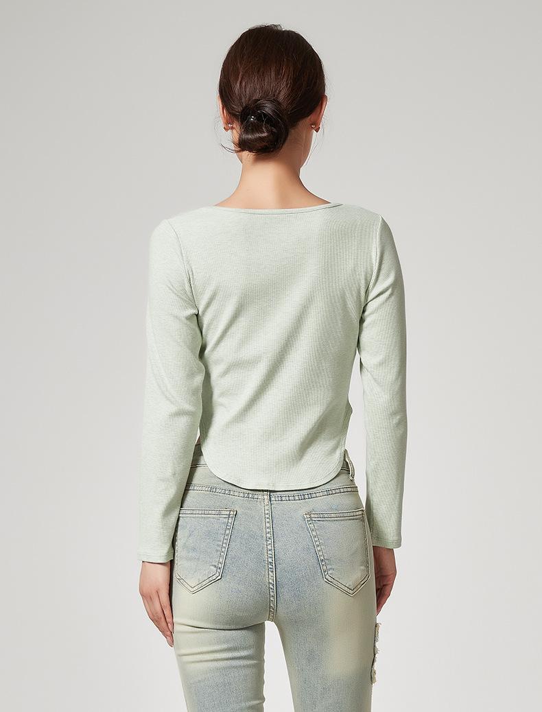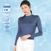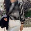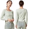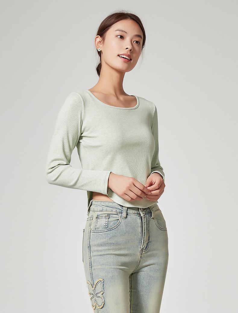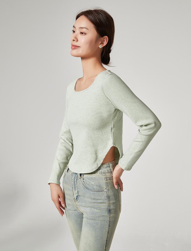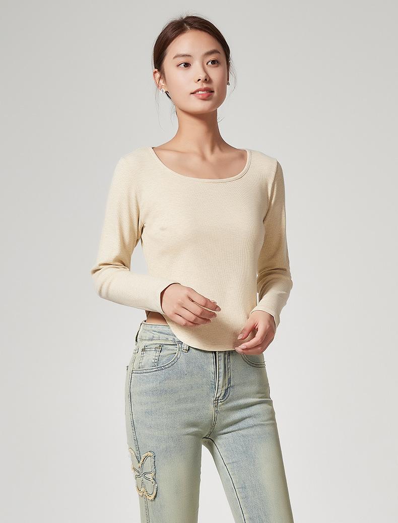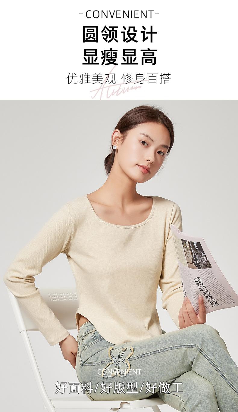Camiseta Básica de Manga Larga con Patrón de Seda para Mujer Primavera Casual Color Puro Slim Camiseta Estilo Preppy Top Transfronterizo Trbottomyy Se Puede Usar Afuera