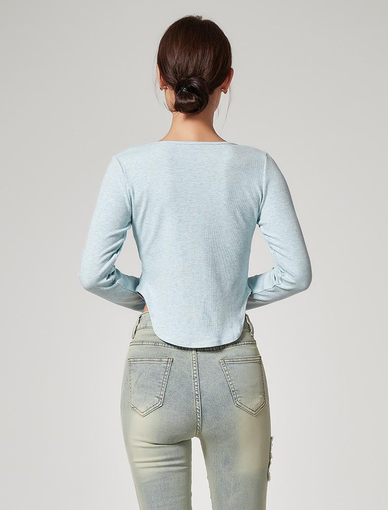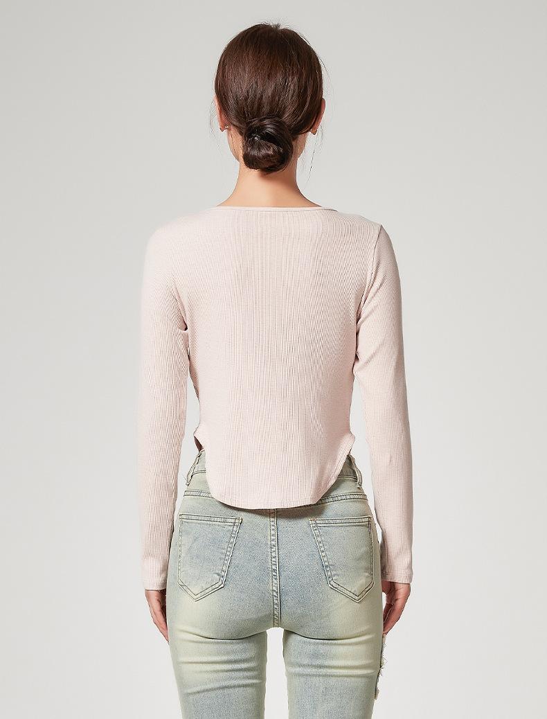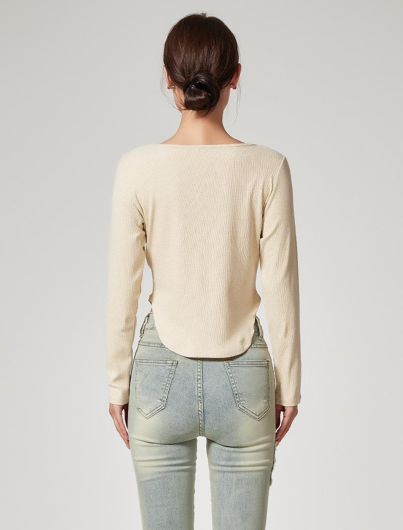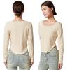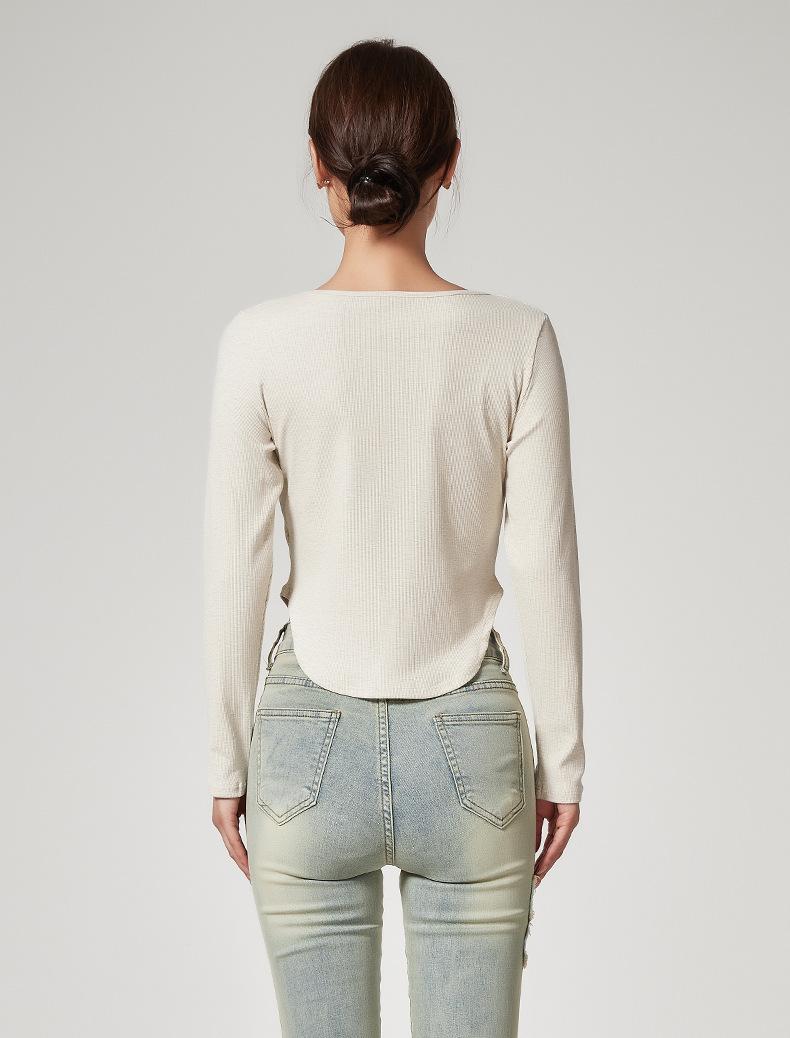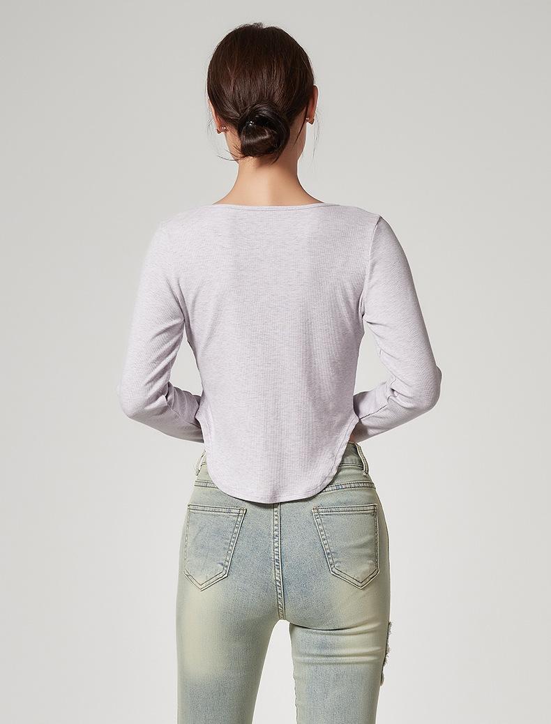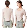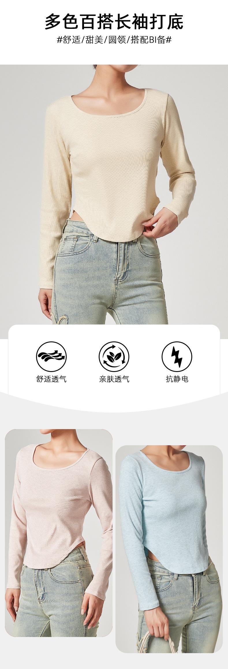 Camiseta Básica de Manga Larga con Patrón de Seda para Mujer Primavera Casual Color Puro Slim Camiseta Estilo Preppy Top Transfronterizo Trbottomyy Se Puede Usar Afuera