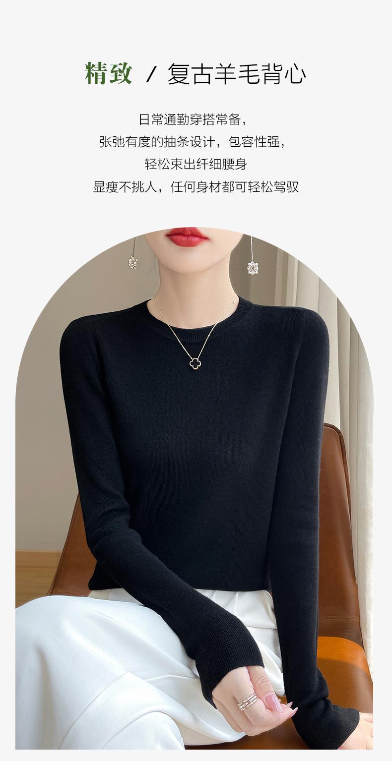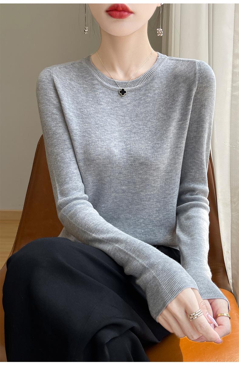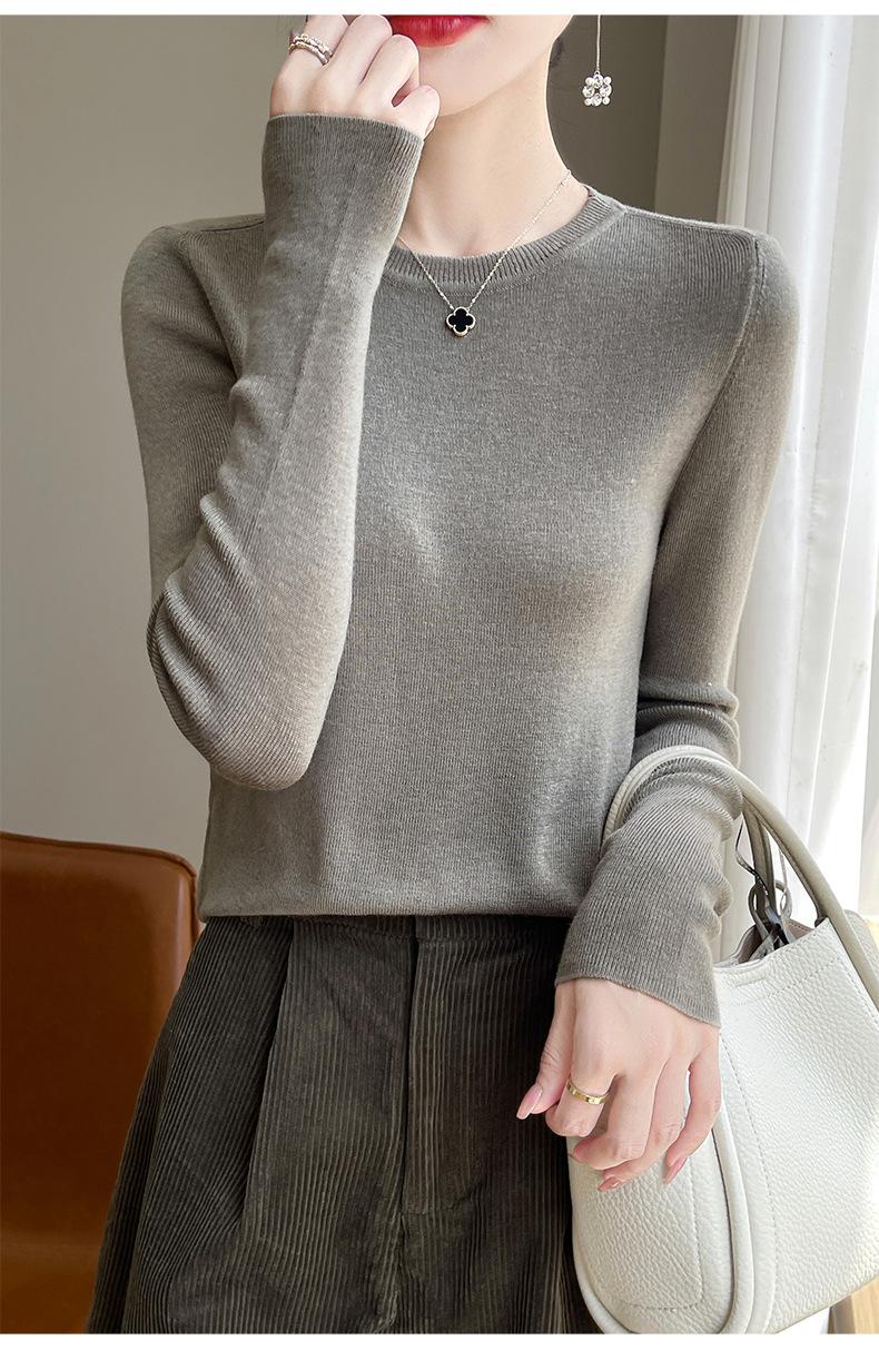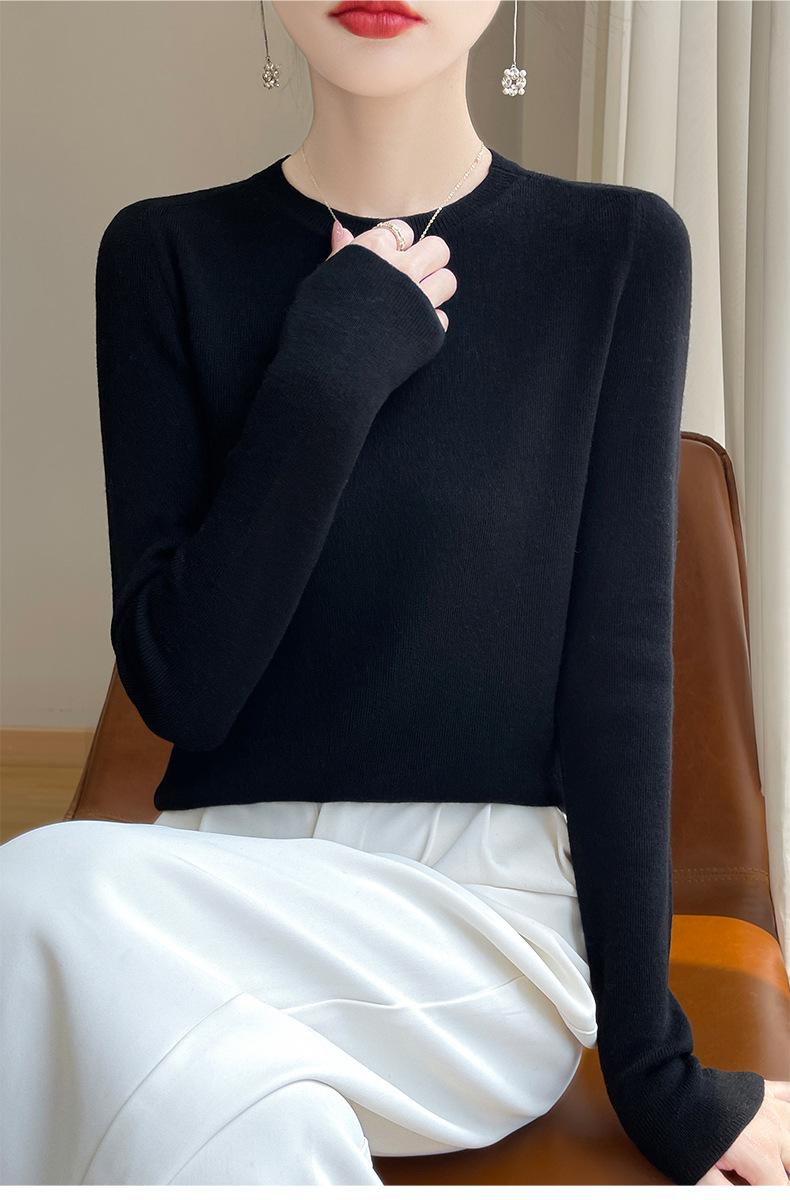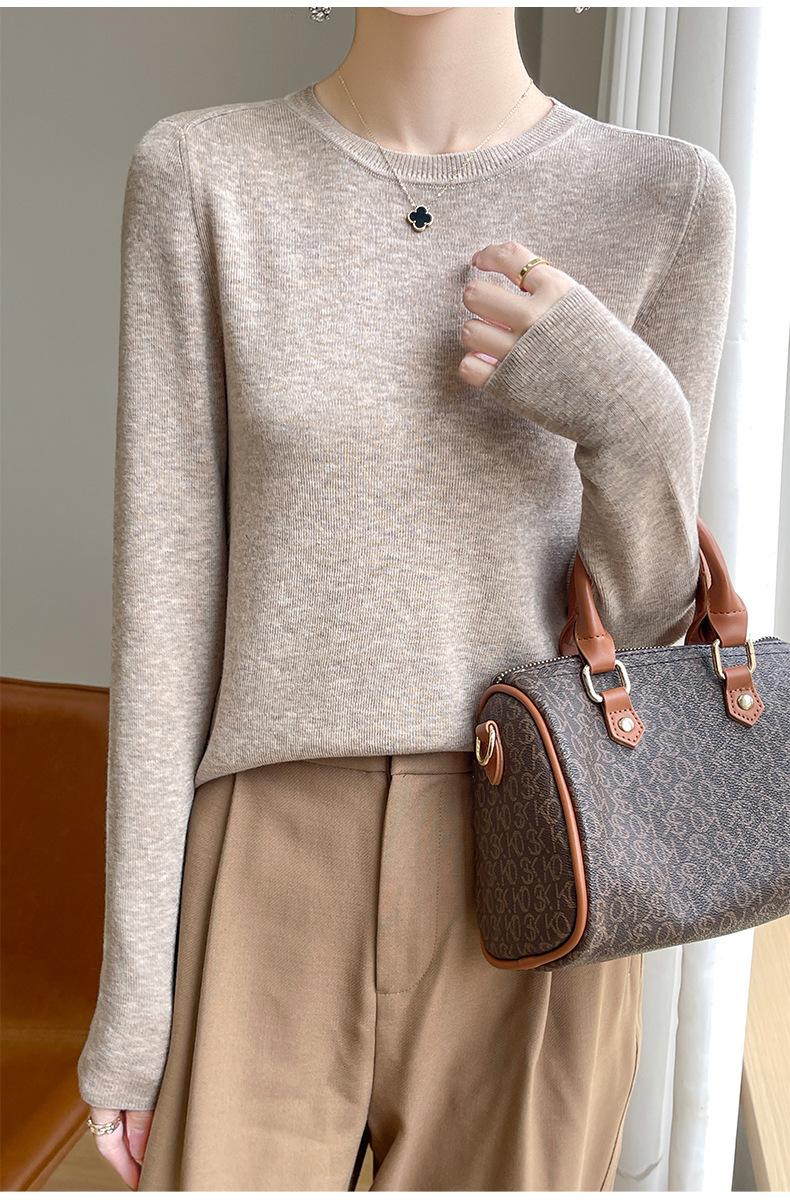 Suéter de punto nuevo, top de cuello redondo, camisa fina de base de lana, moda de estilo occidental, suéter interior de otoño e invierno, suéter de punto para mujer