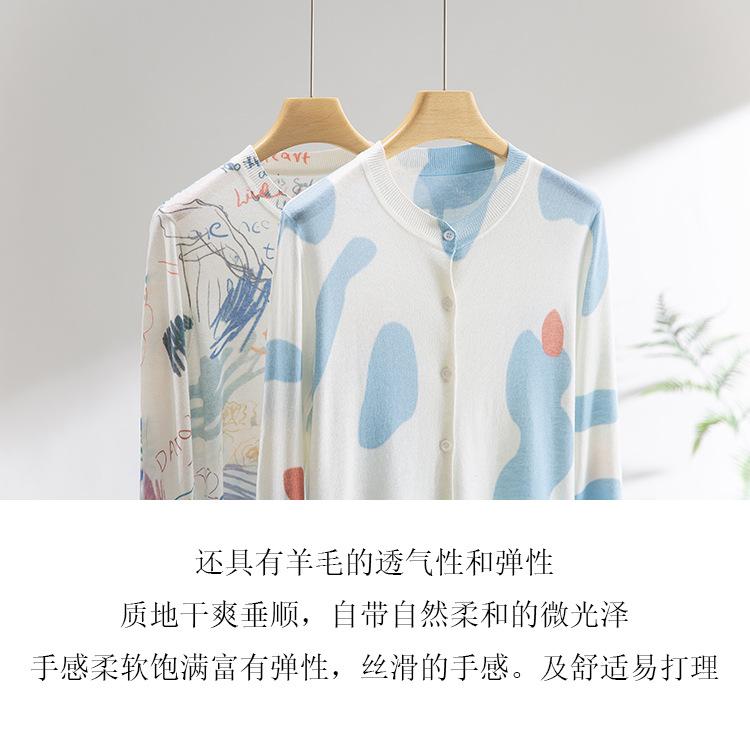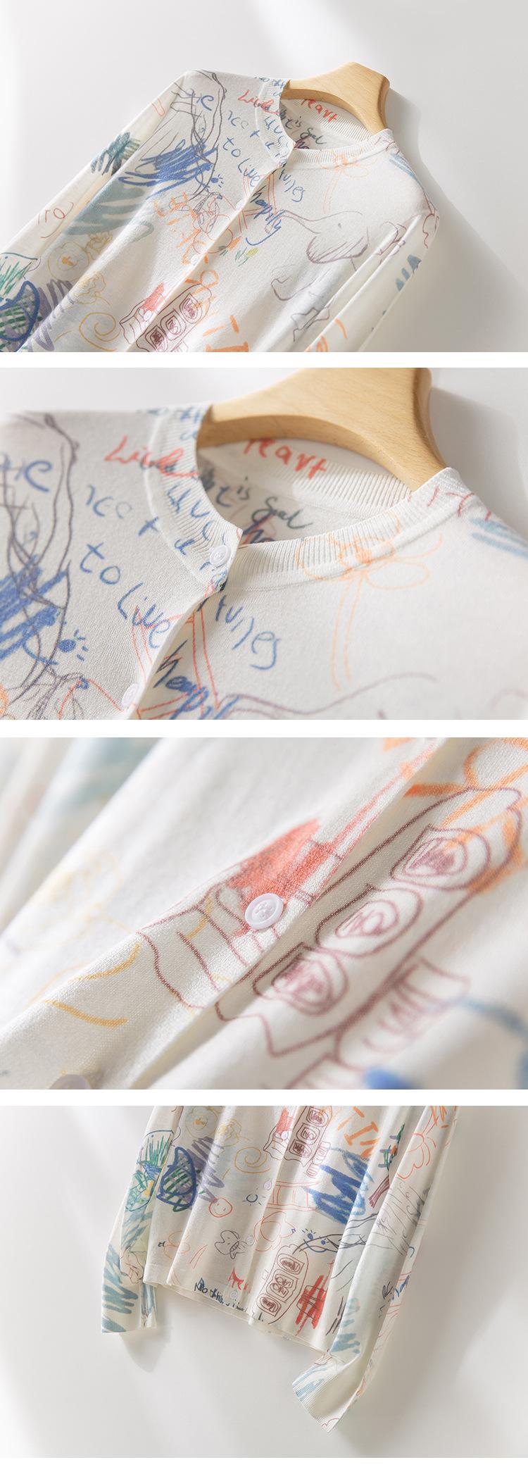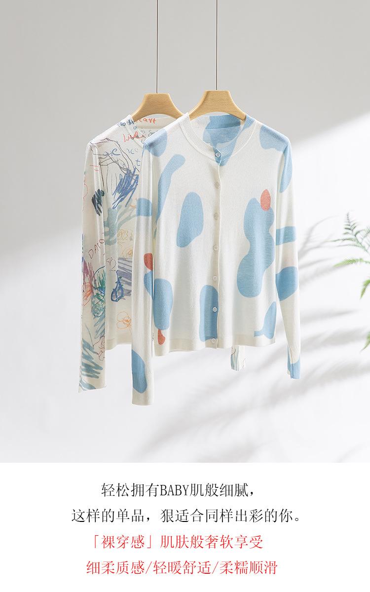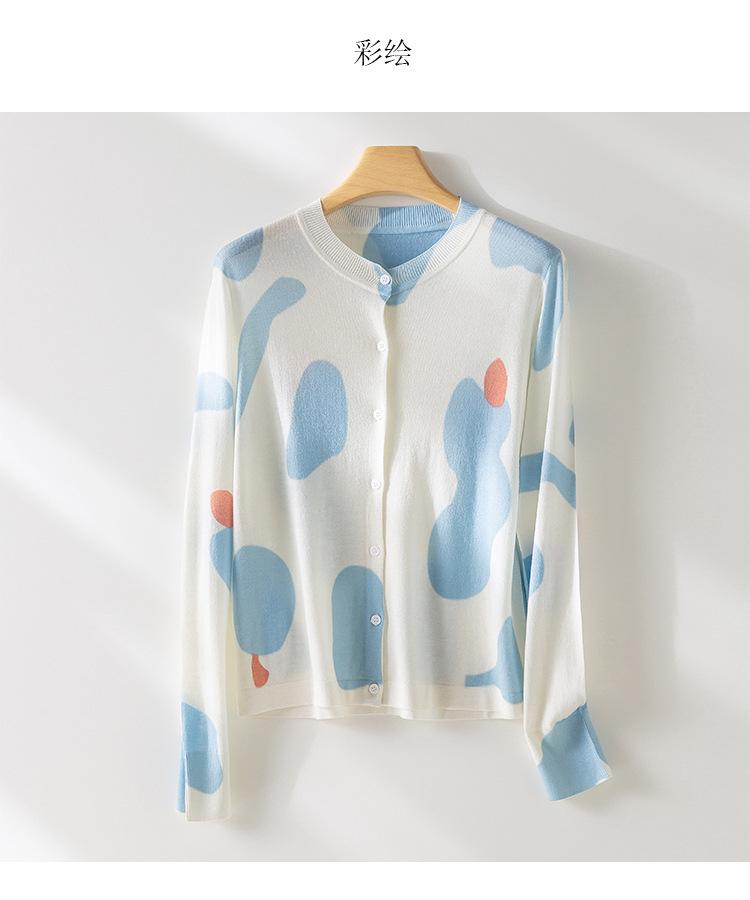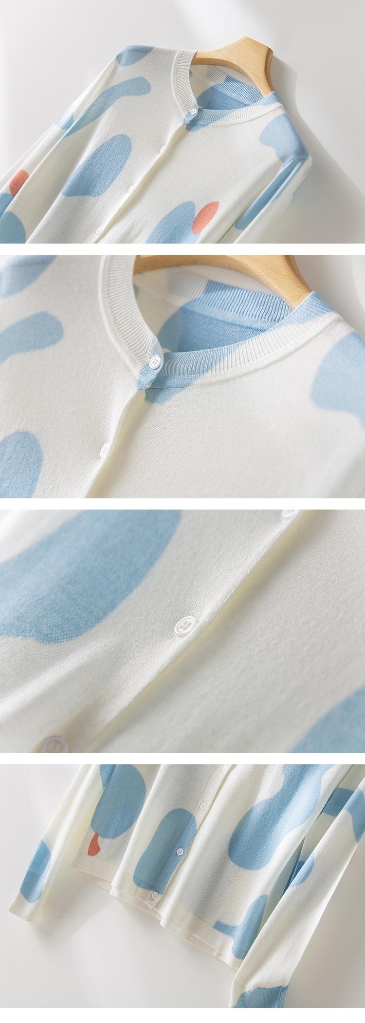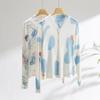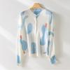 Cárdigan de Punto Estampado Pintado Mezcla Acetato Lana para Mujer, Nuevo Estilo Otoño Temprano 2025, Capa Base Exterior Top Fino