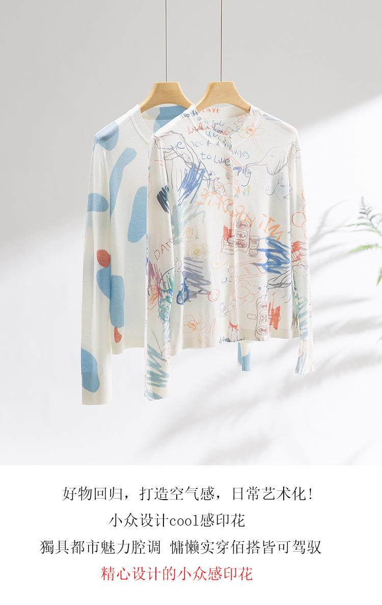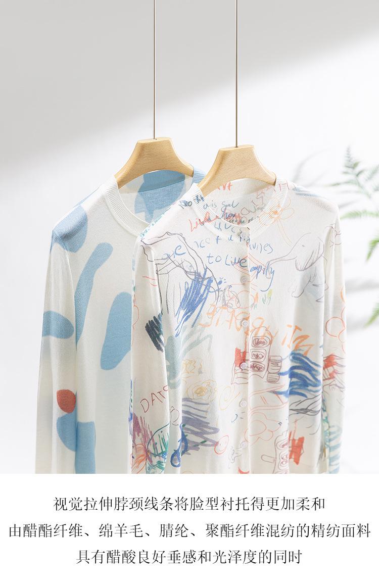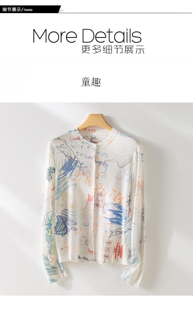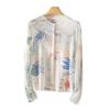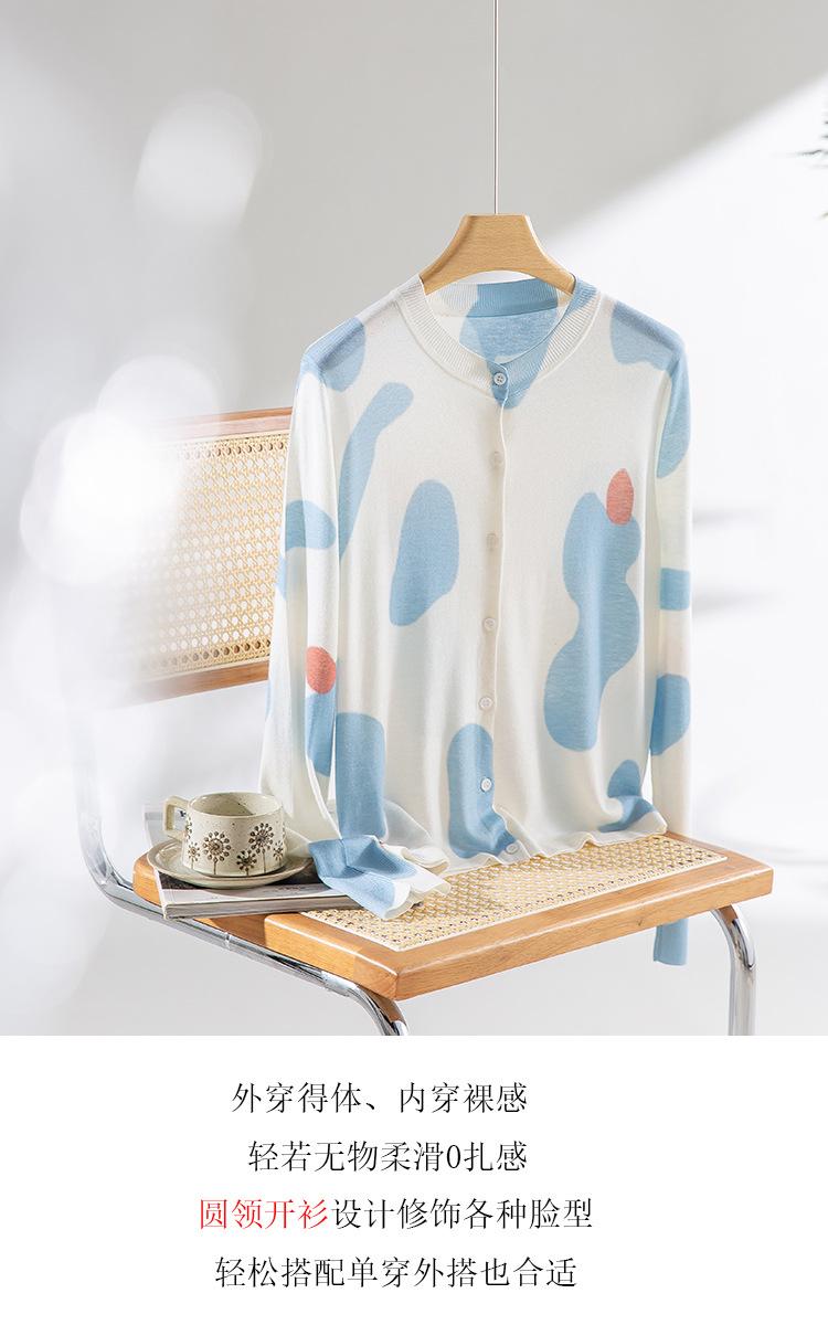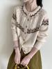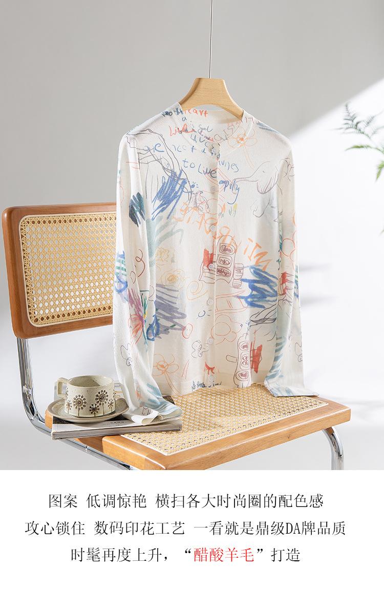 Cárdigan de Punto Estampado Pintado Mezcla Acetato Lana para Mujer, Nuevo Estilo Otoño Temprano 2025, Capa Base Exterior Top Fino