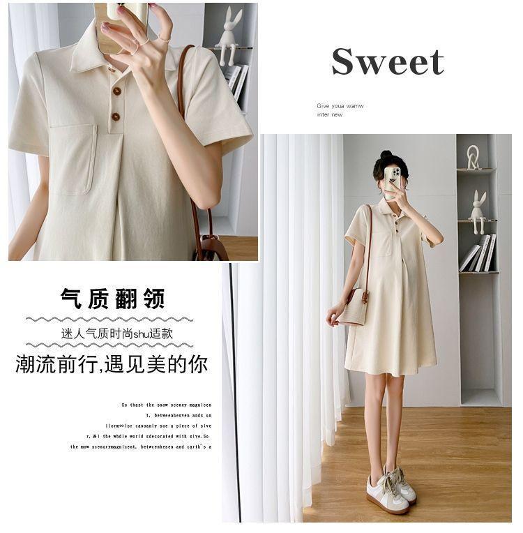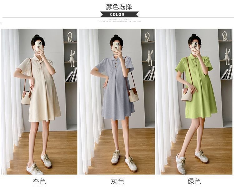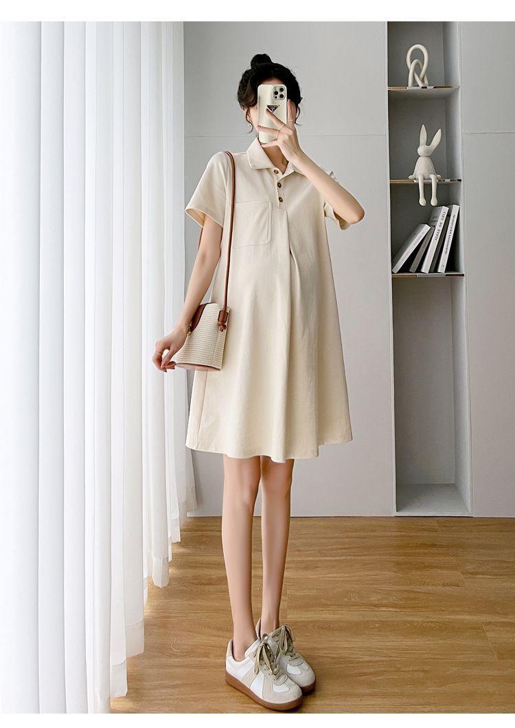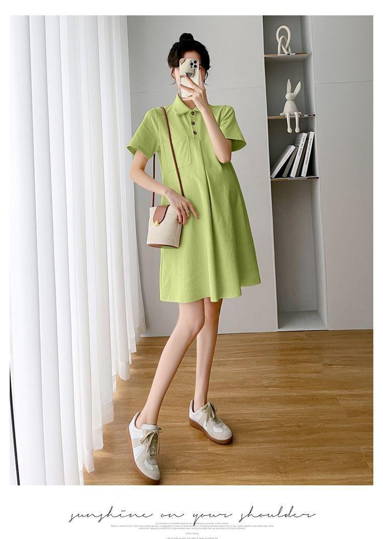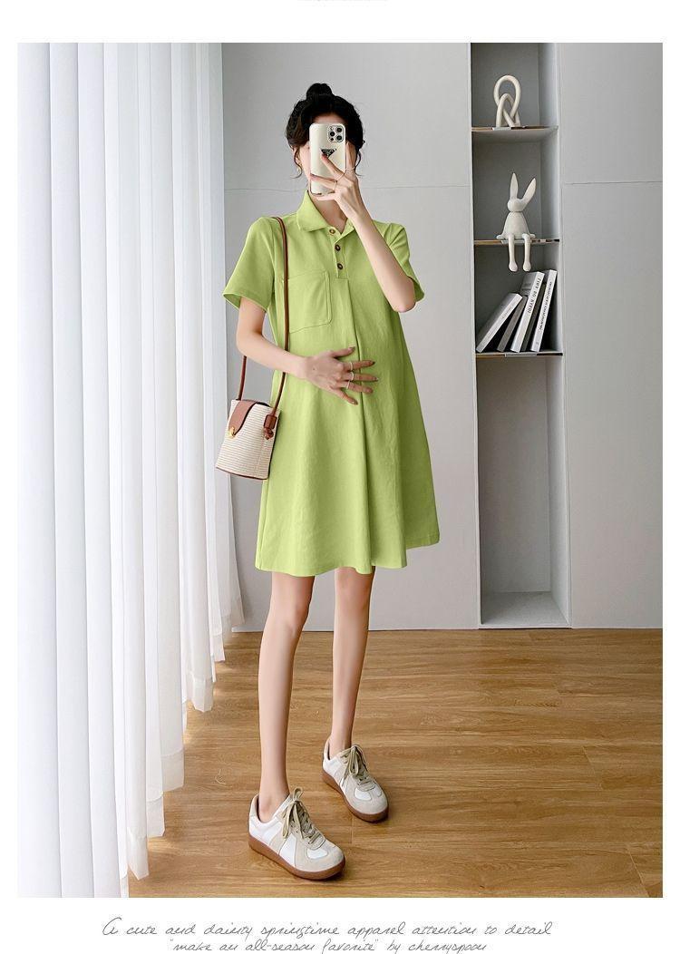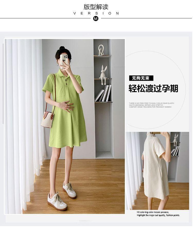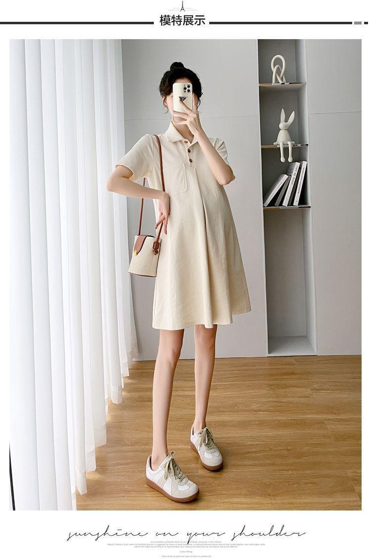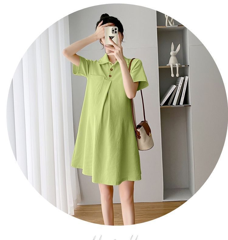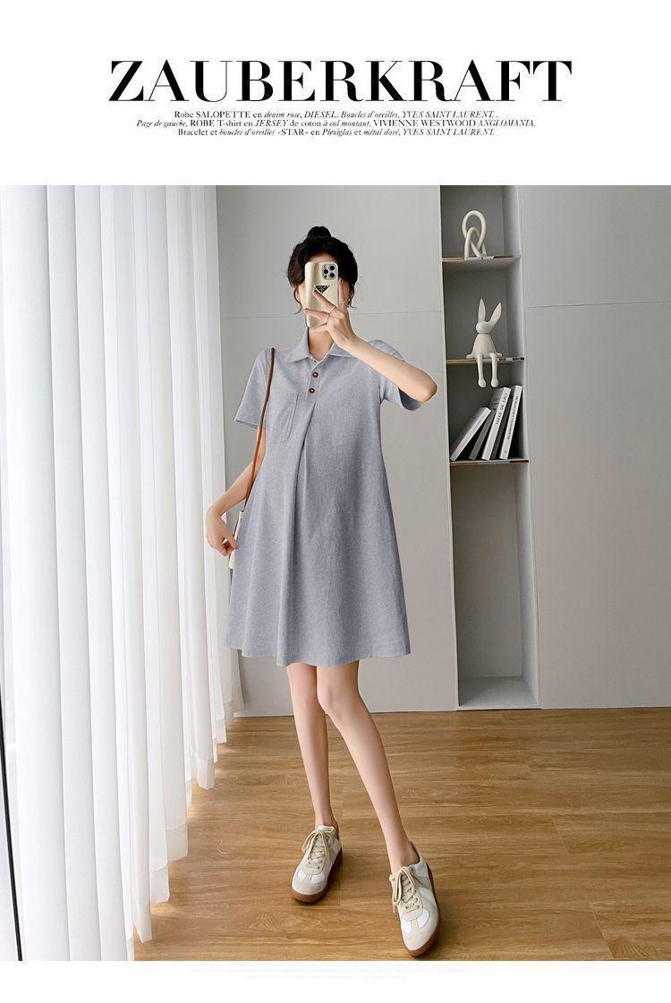 Vestido de verano para embarazadas, cuello polo, manga corta, holgado, que cubre el vientre, para salir