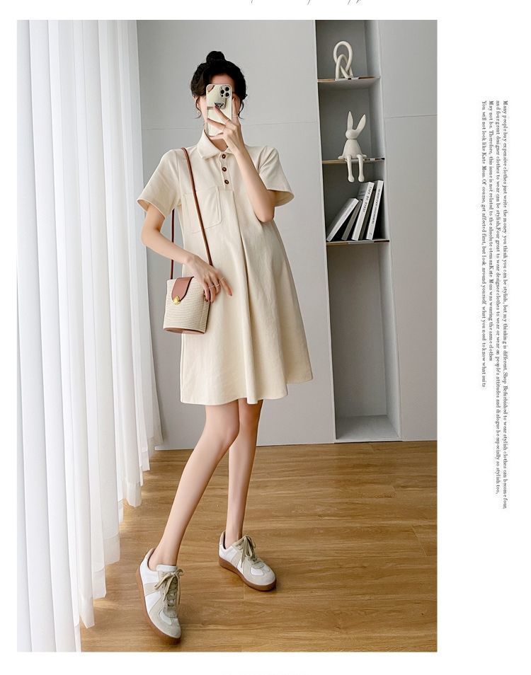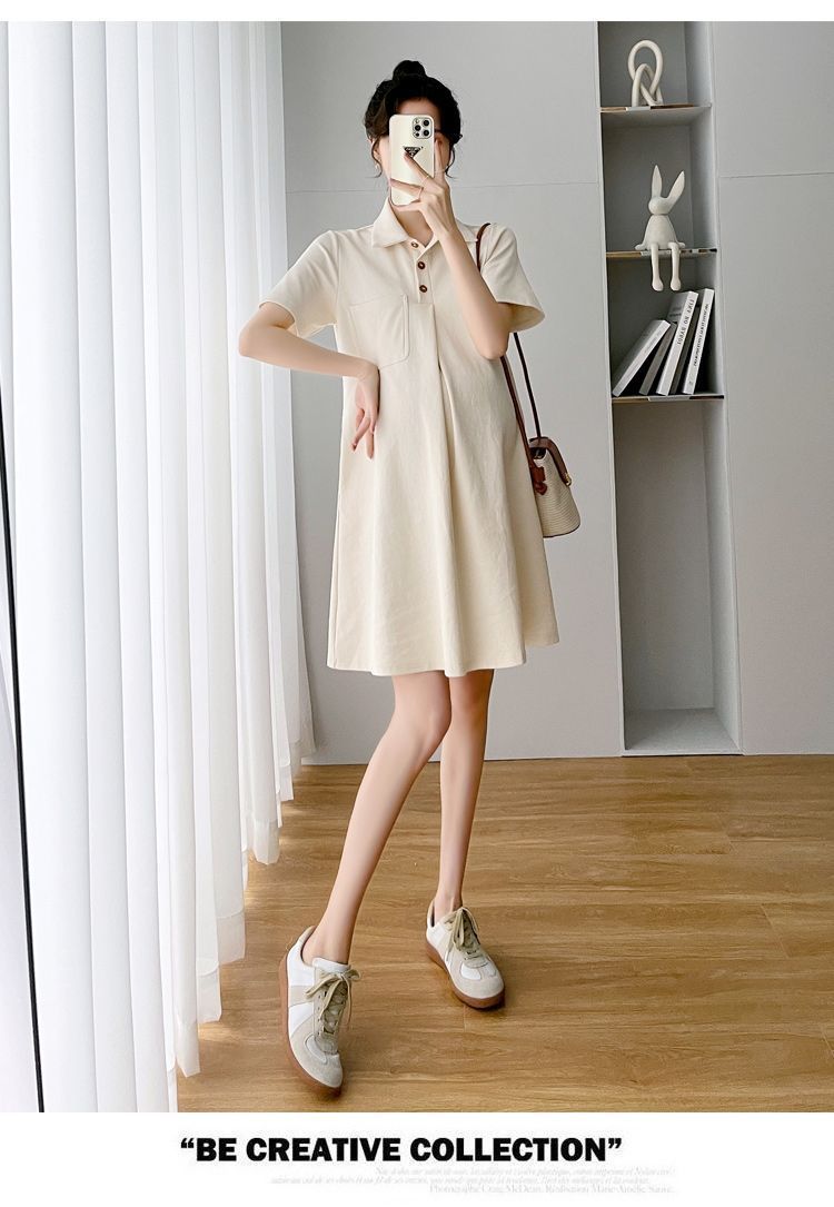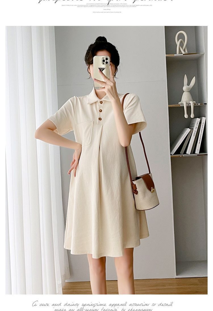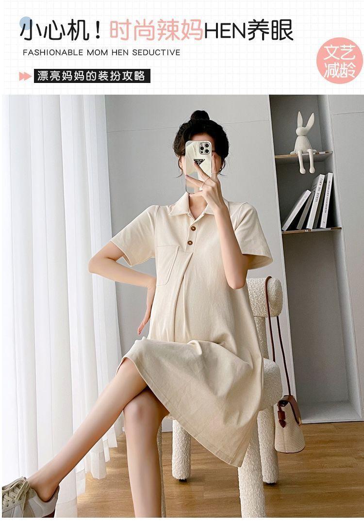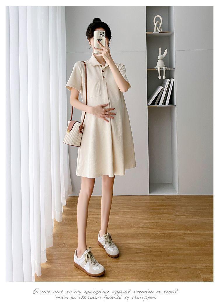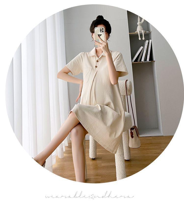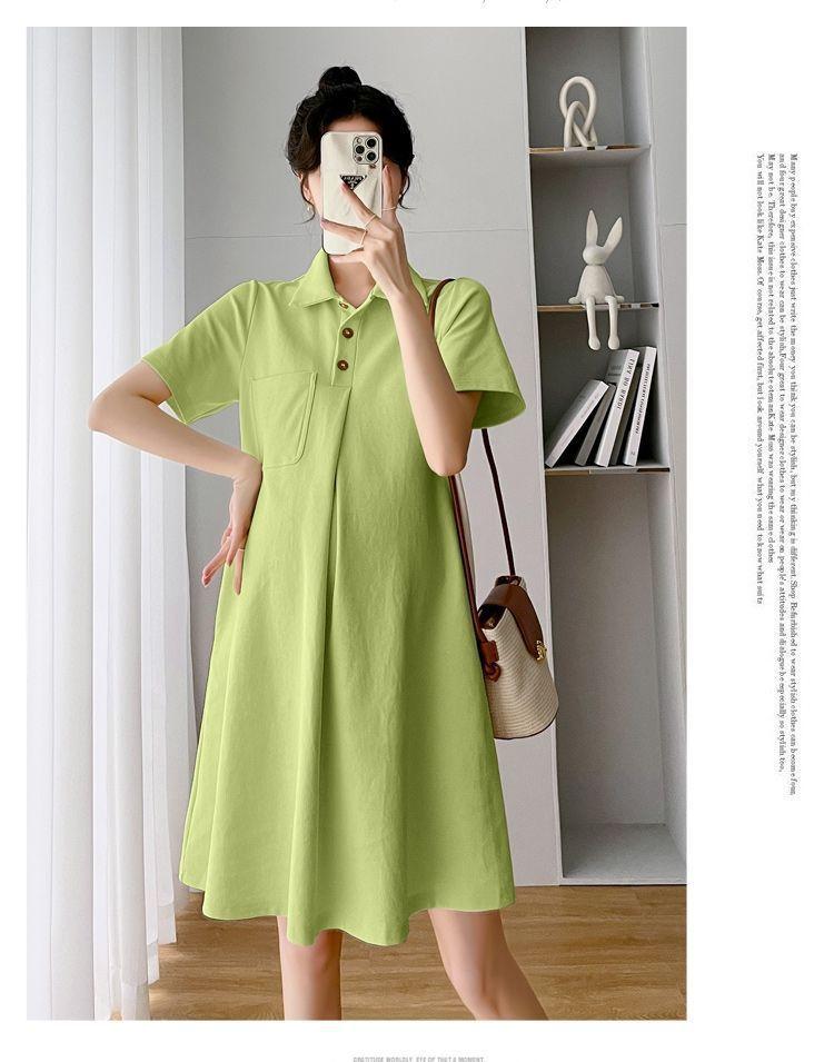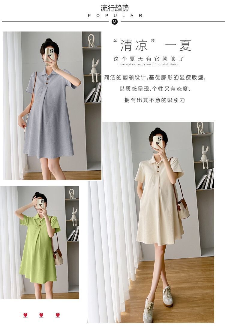 Vestido de verano para embarazadas, cuello polo, manga corta, holgado, que cubre el vientre, para salir