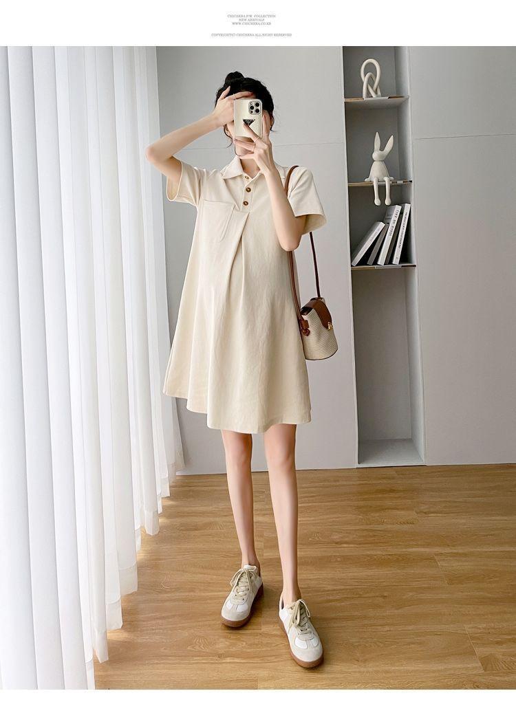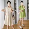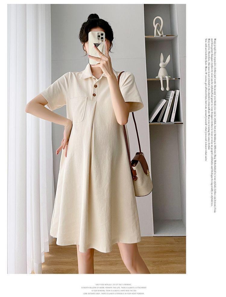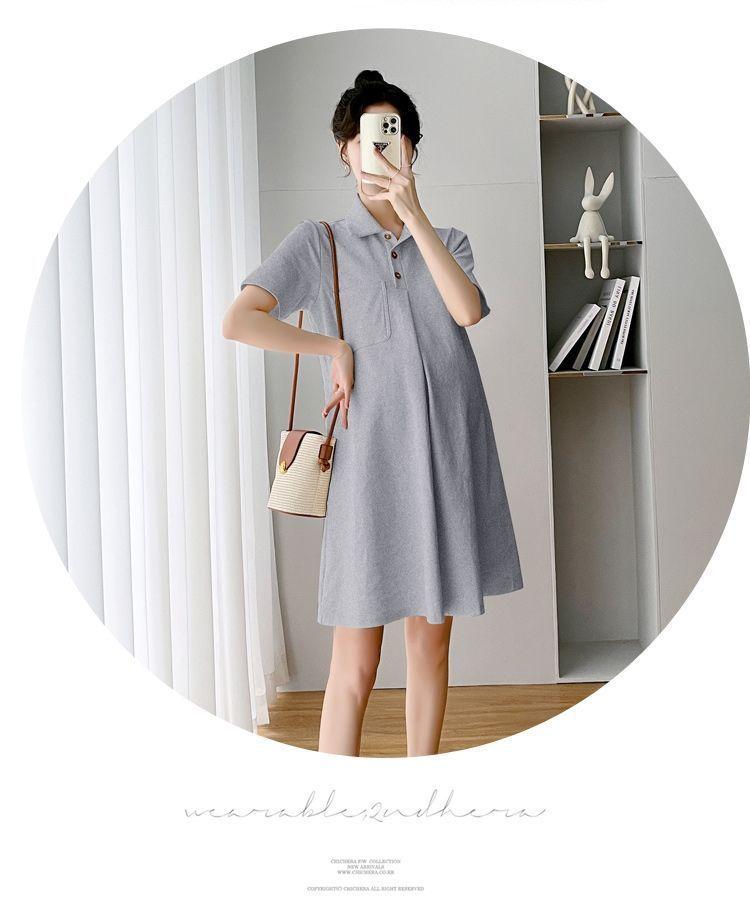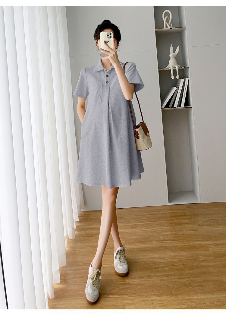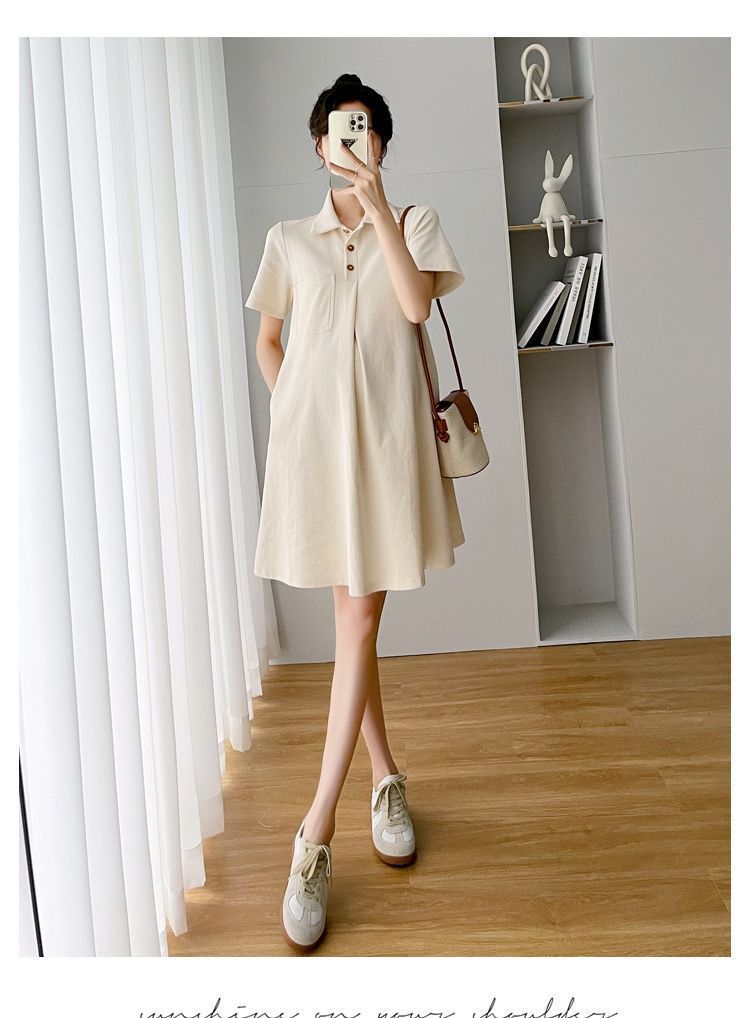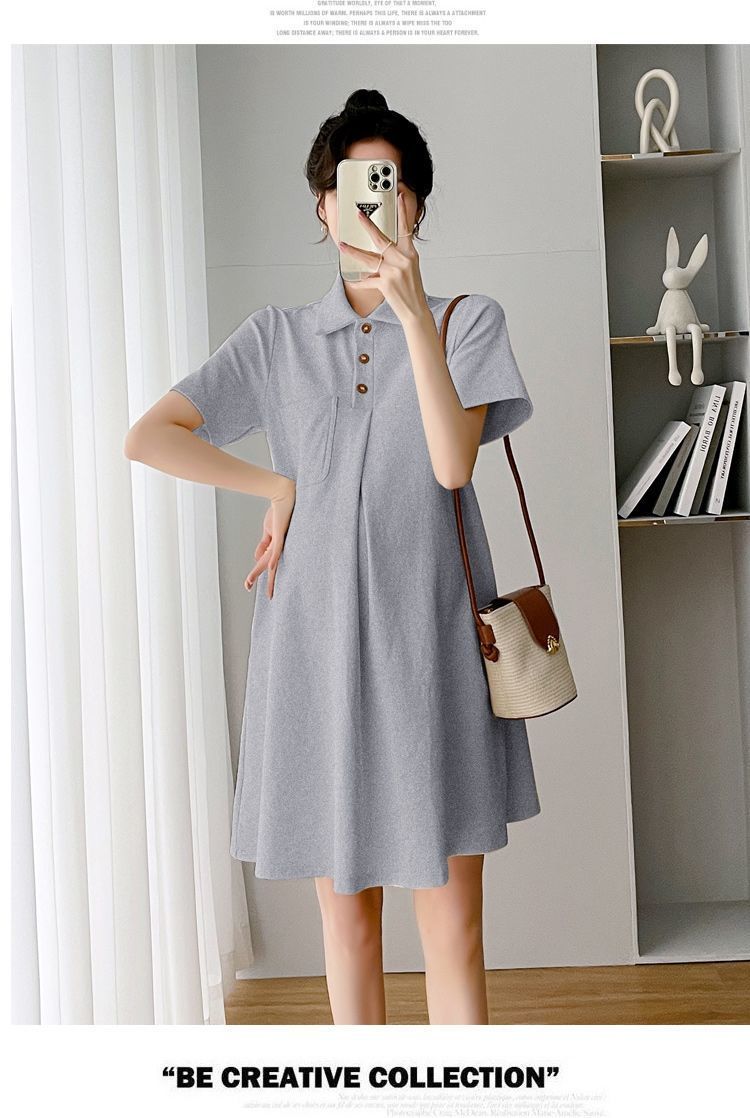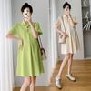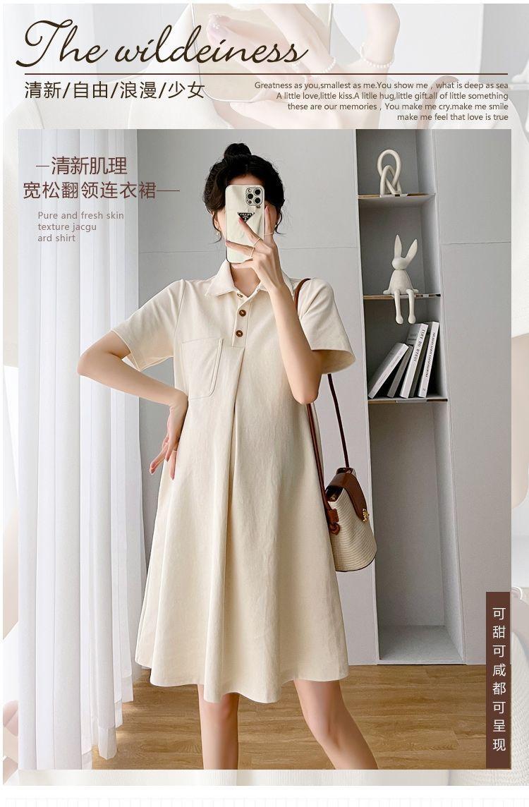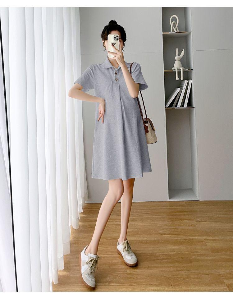Vestido de verano para embarazadas, cuello polo, manga corta, holgado, que cubre el vientre, para salir
