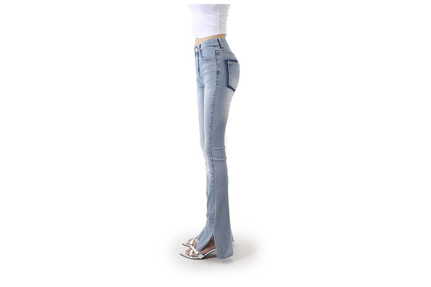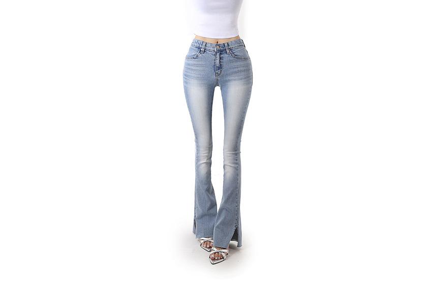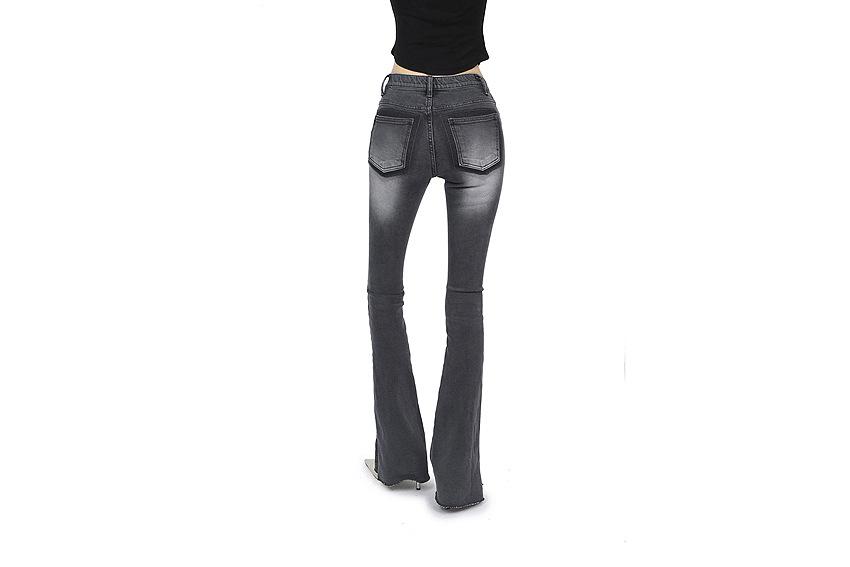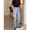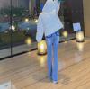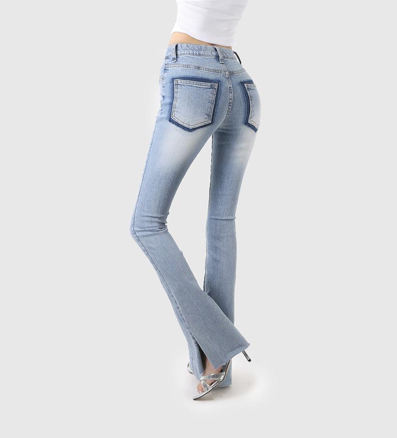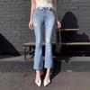 Pantalones vaqueros Dongdaemun de otoño de alta calidad para mujer coreana, nuevos, de cintura alta, elásticos, con aberturas laterales y pantalones acampanados.