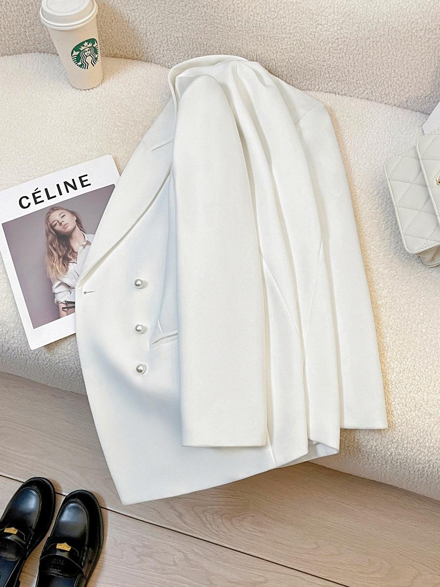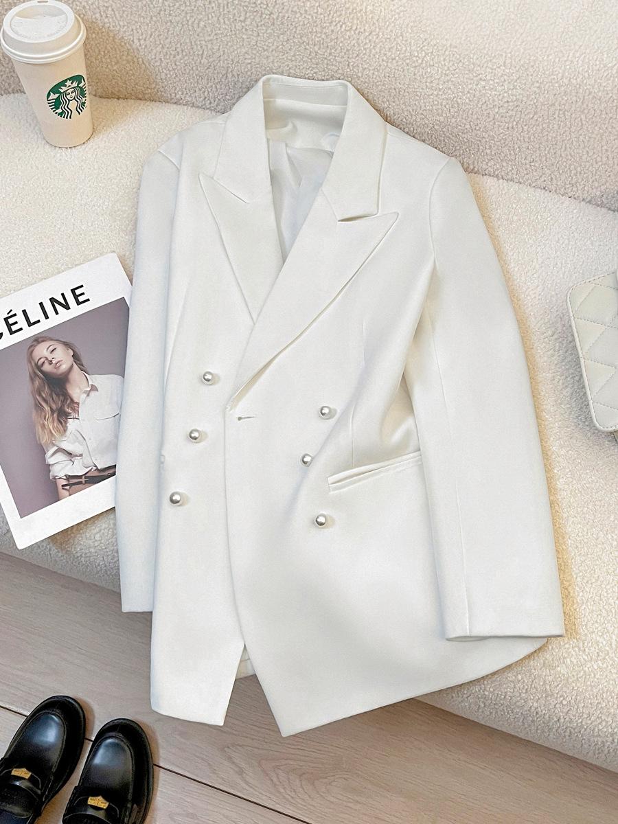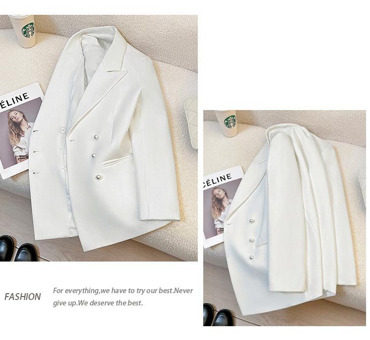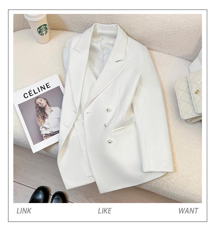 Chaqueta de Traje con Botones de Perla Blanca para Mujer 2025 Primavera y Otoño Nueva Más Fácil de Combinar Estilo Casual Informal Profesional para Desplazamientos Traje Pequeño