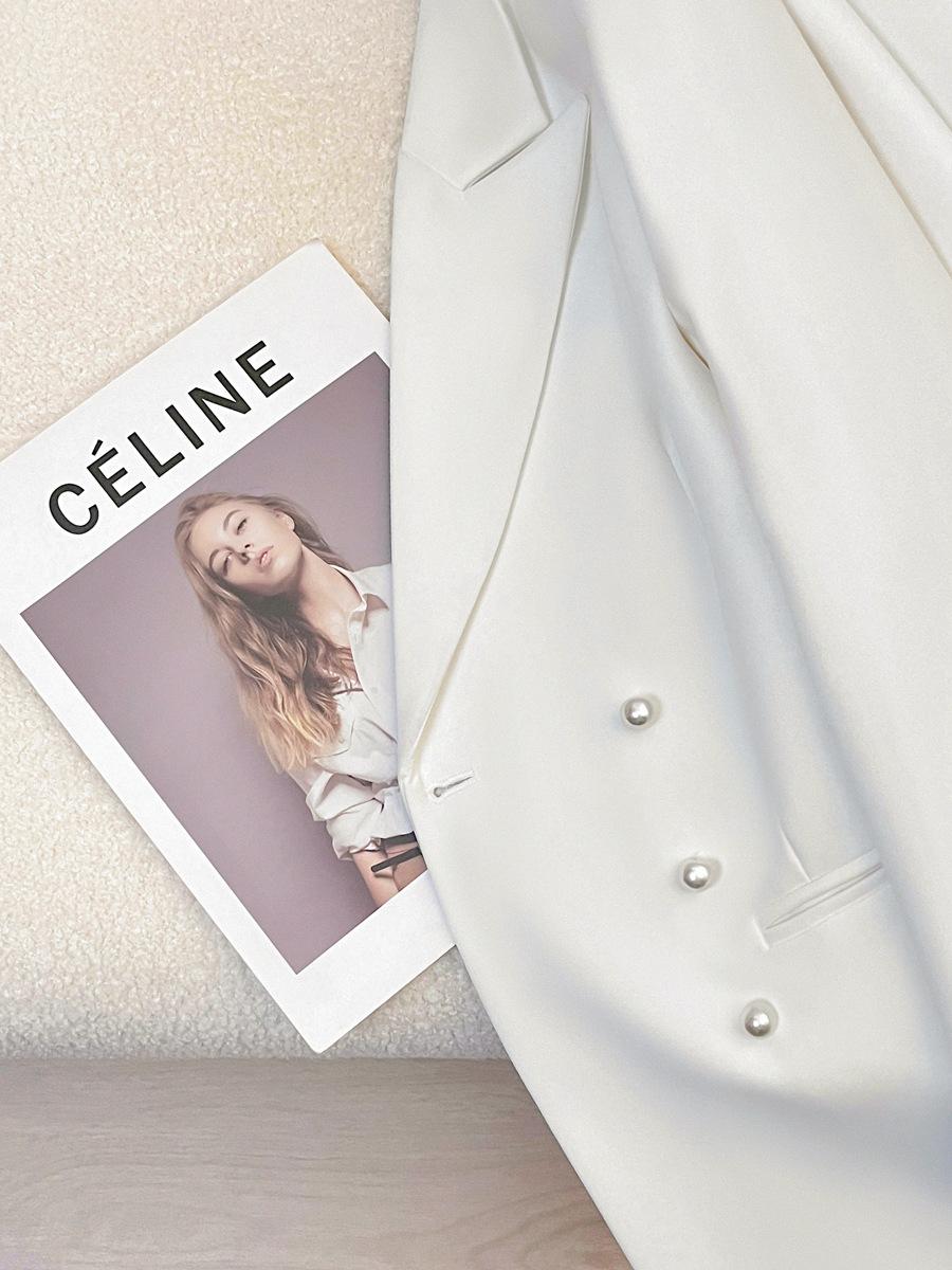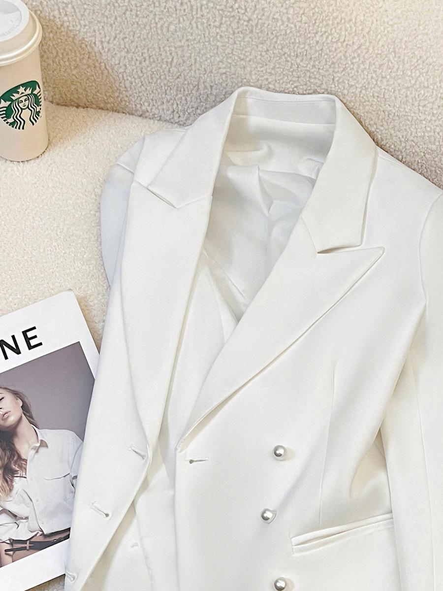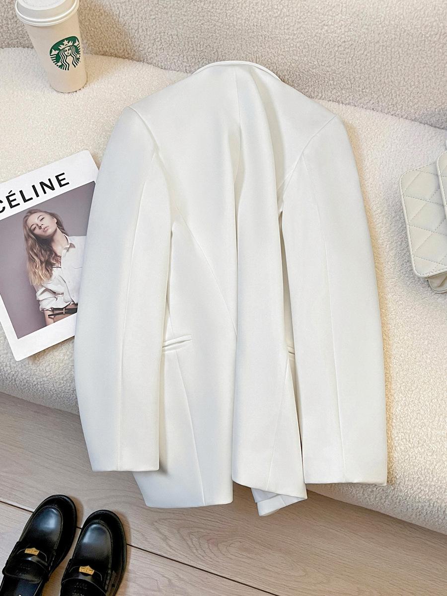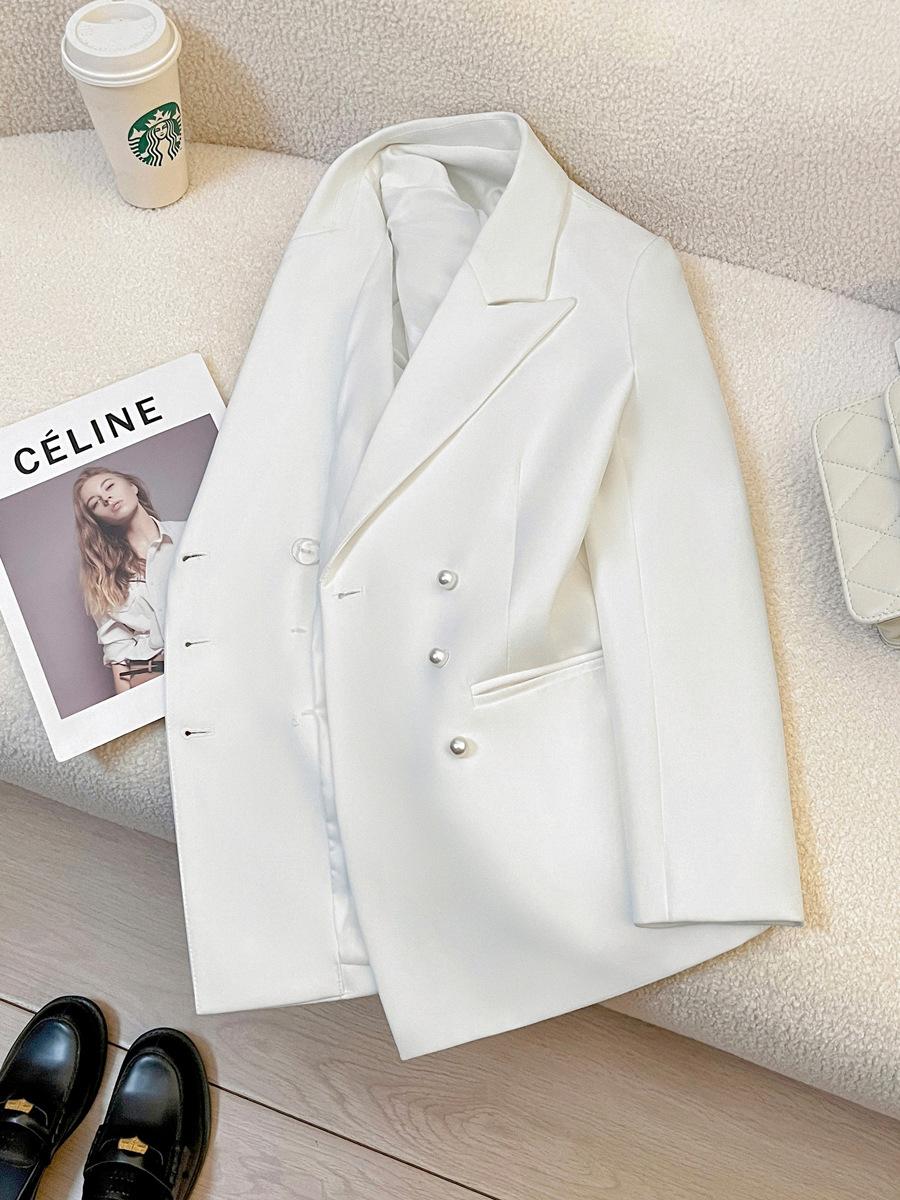 Chaqueta de Traje con Botones de Perla Blanca para Mujer 2025 Primavera y Otoño Nueva Más Fácil de Combinar Estilo Casual Informal Profesional para Desplazamientos Traje Pequeño