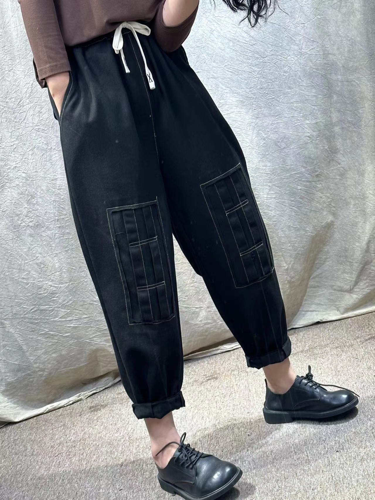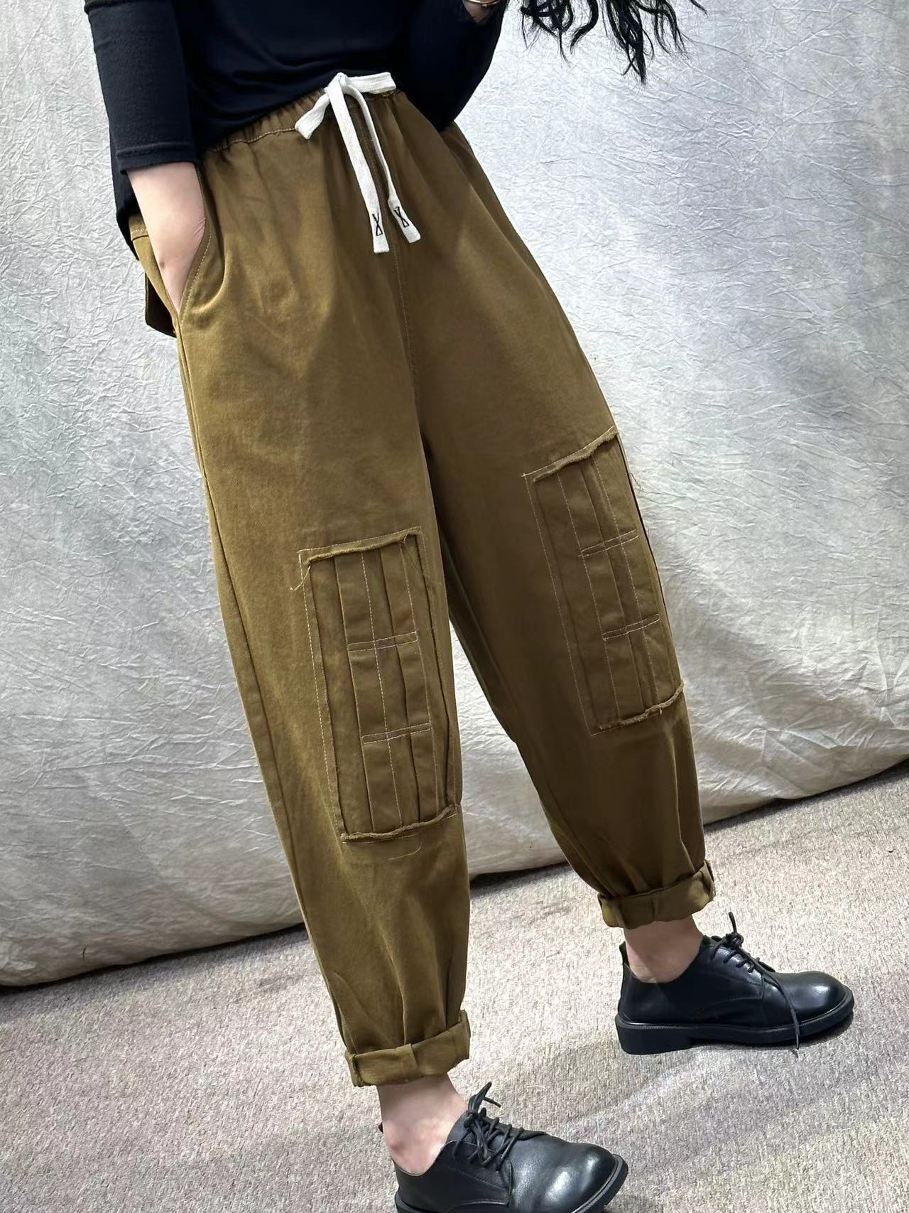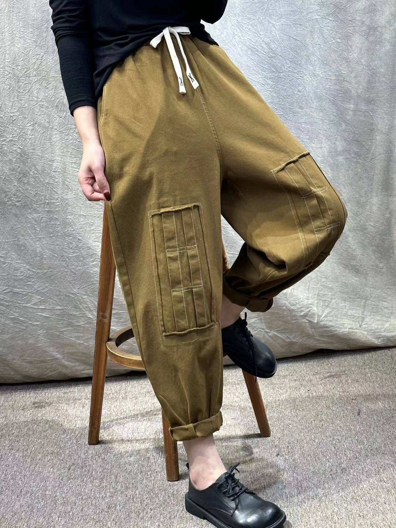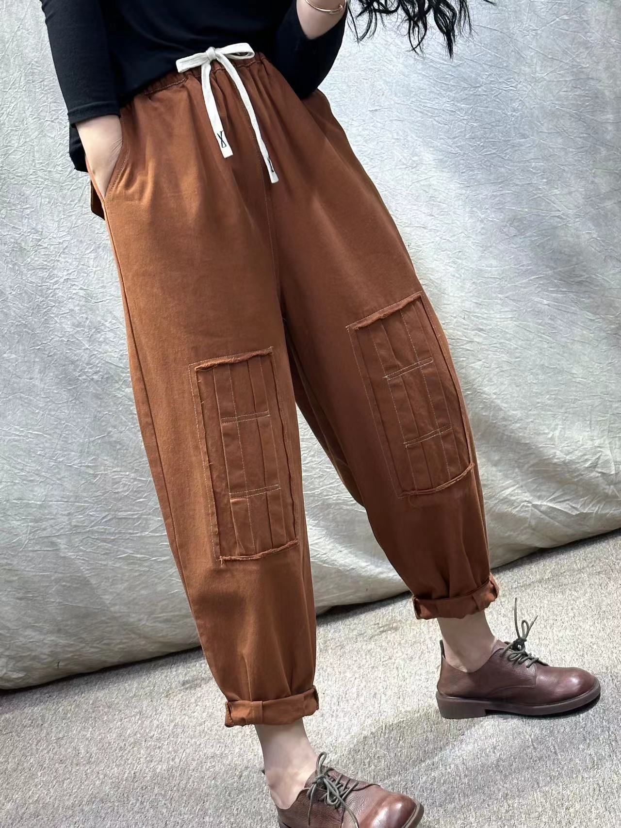 Pantalones harén con cordones, informales, holgados, de cintura elástica, para principios de otoño de 2024