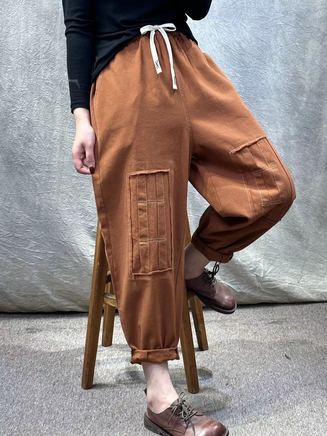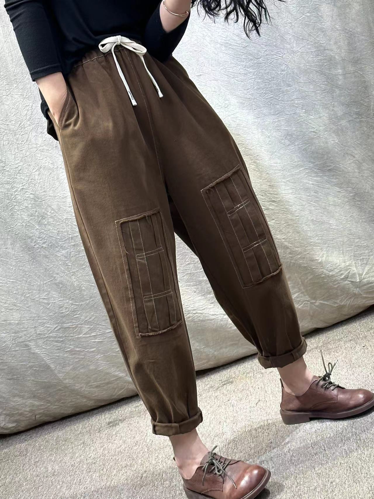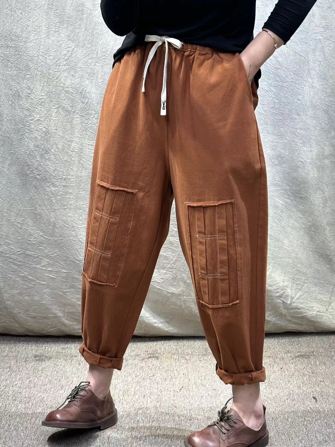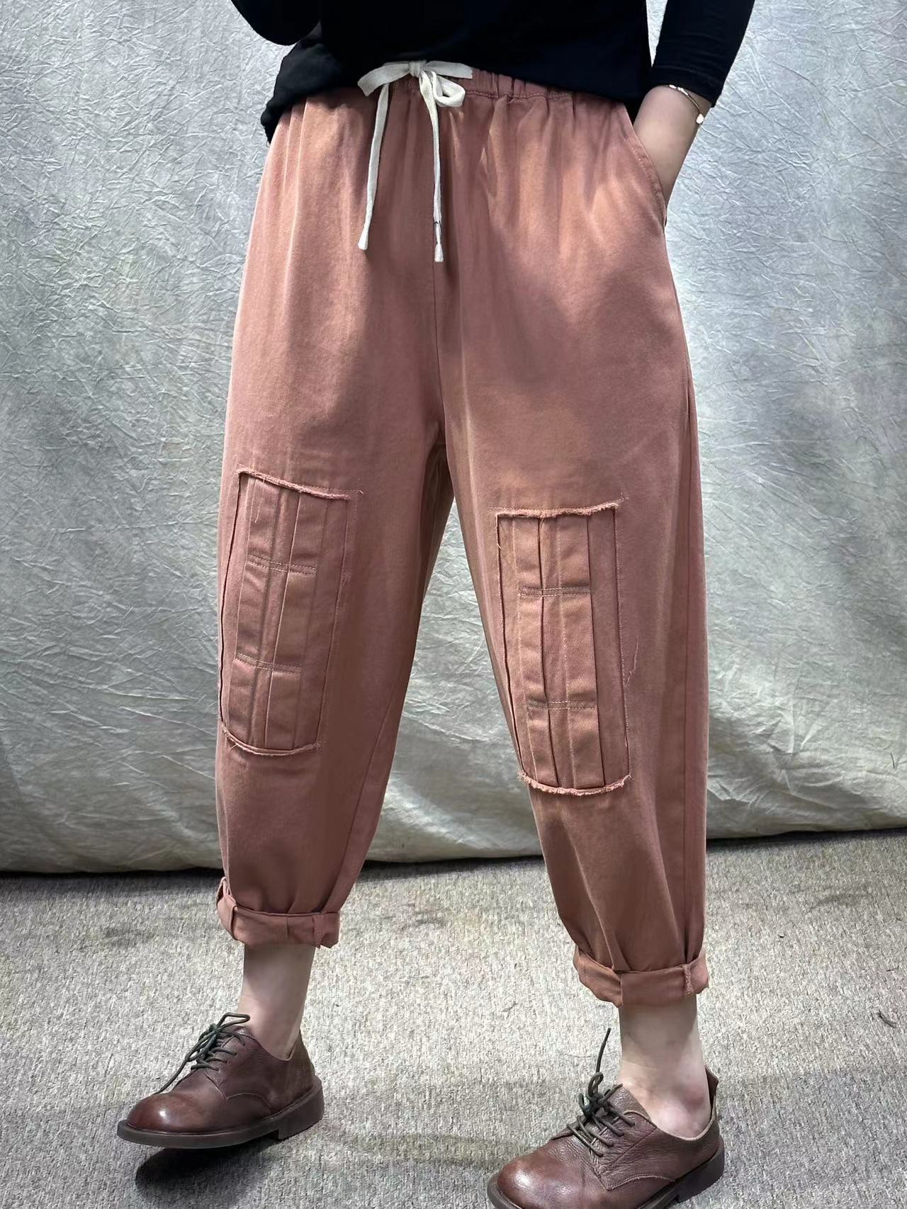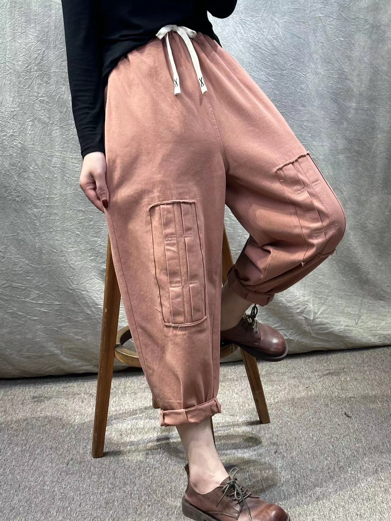 Pantalones harén con cordones, informales, holgados, de cintura elástica, para principios de otoño de 2024