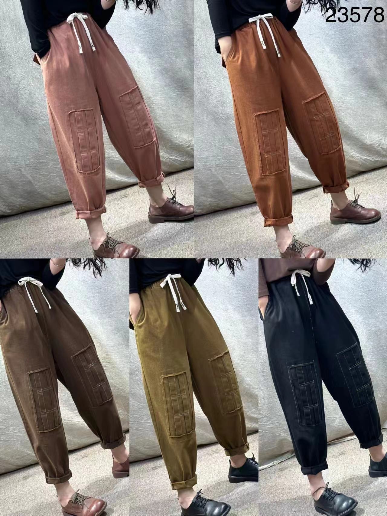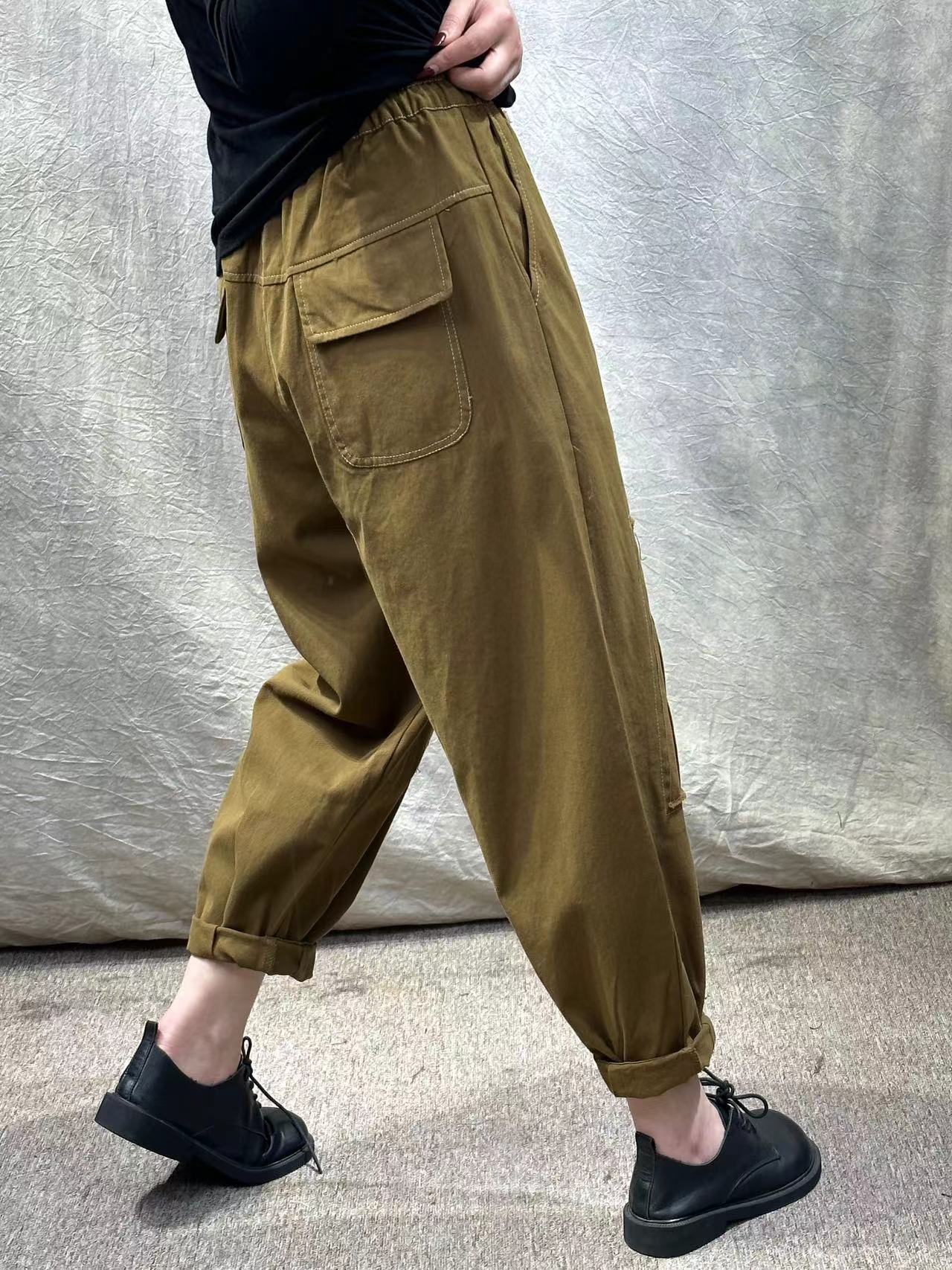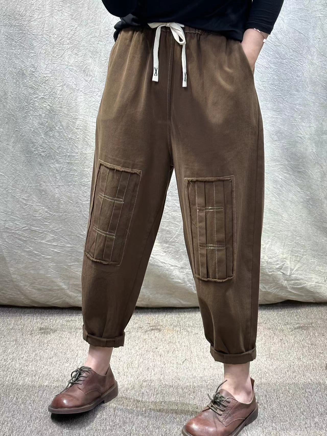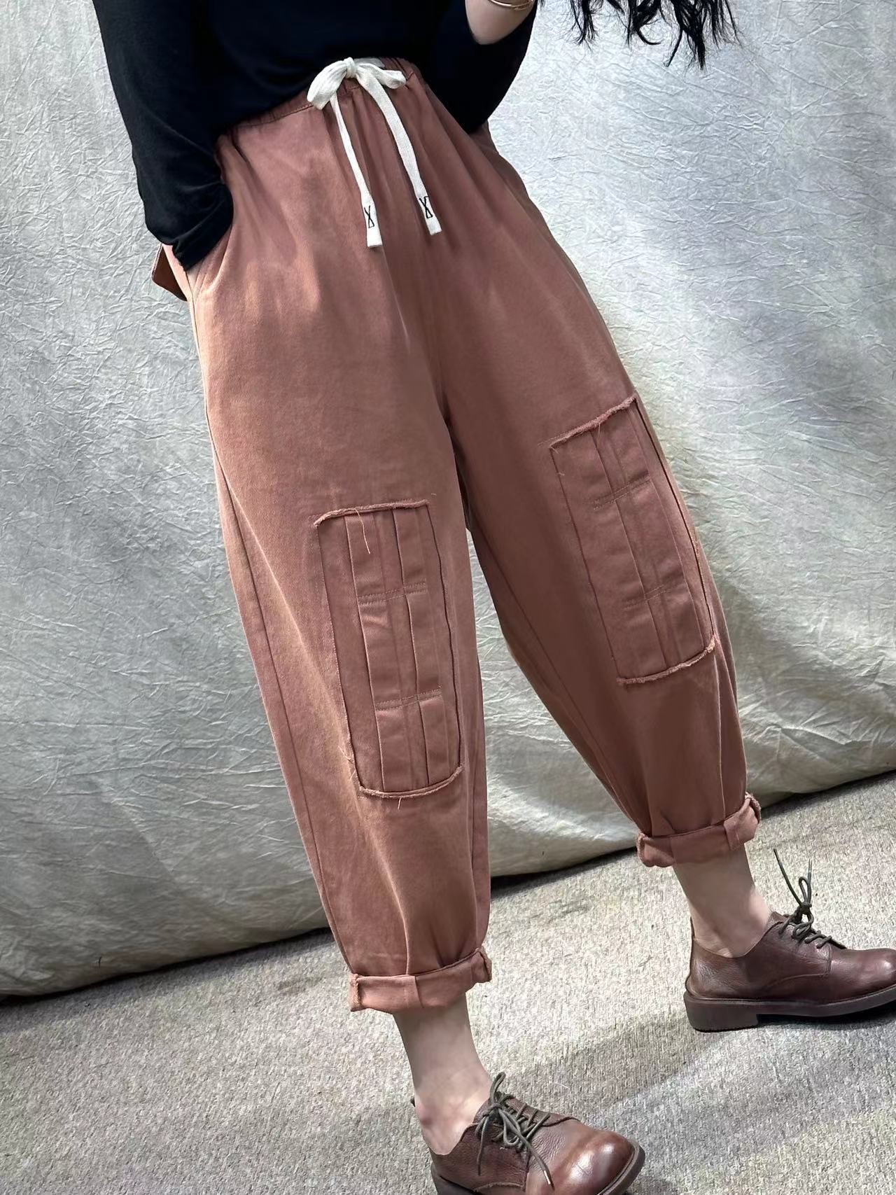 Pantalones harén con cordones, informales, holgados, de cintura elástica, para principios de otoño de 2024