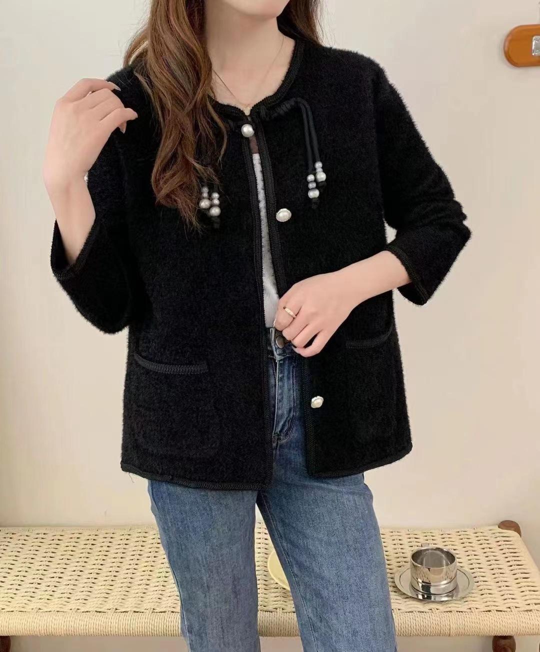 Suéter tipo cárdigan de cuello redondo estilo perezoso coreano nuevo de otoño e invierno para mujer, tops casuales sueltos y suaves que no dañan la piel.