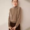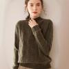 Suéter de cachemira de cuello medio alto y grueso con jacquard grueso para mujer, suéter de manga larga para otoño e invierno, camisa de punto de estilo relajado.