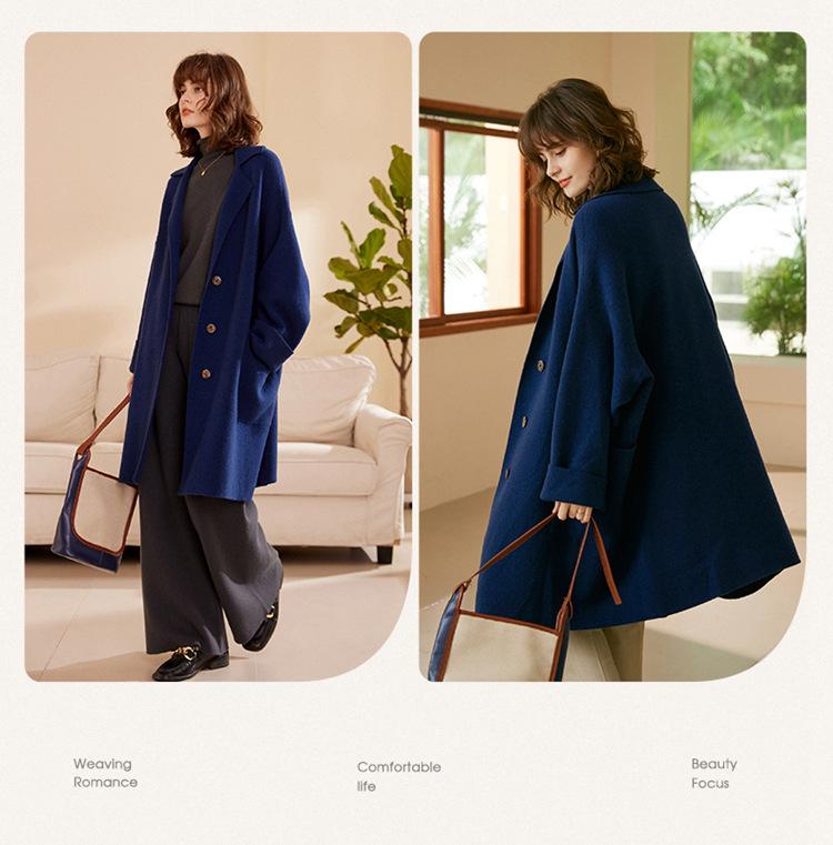 Abrigo de cachemira al por mayor para mujer 100% cachemira pura otoño e invierno nuevo abrigo cárdigan de punto de longitud media con cuello de traje