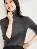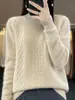 Ropa de Punto de Cuello Alto Medio para Mujer Otoño e Invierno 100% Lana Pura Tejido Grueso de Cinco Agujas Camiseta Básica Europea Suave Ceroso Tejido de Punto Holgado