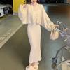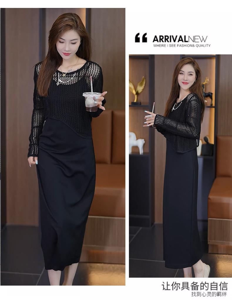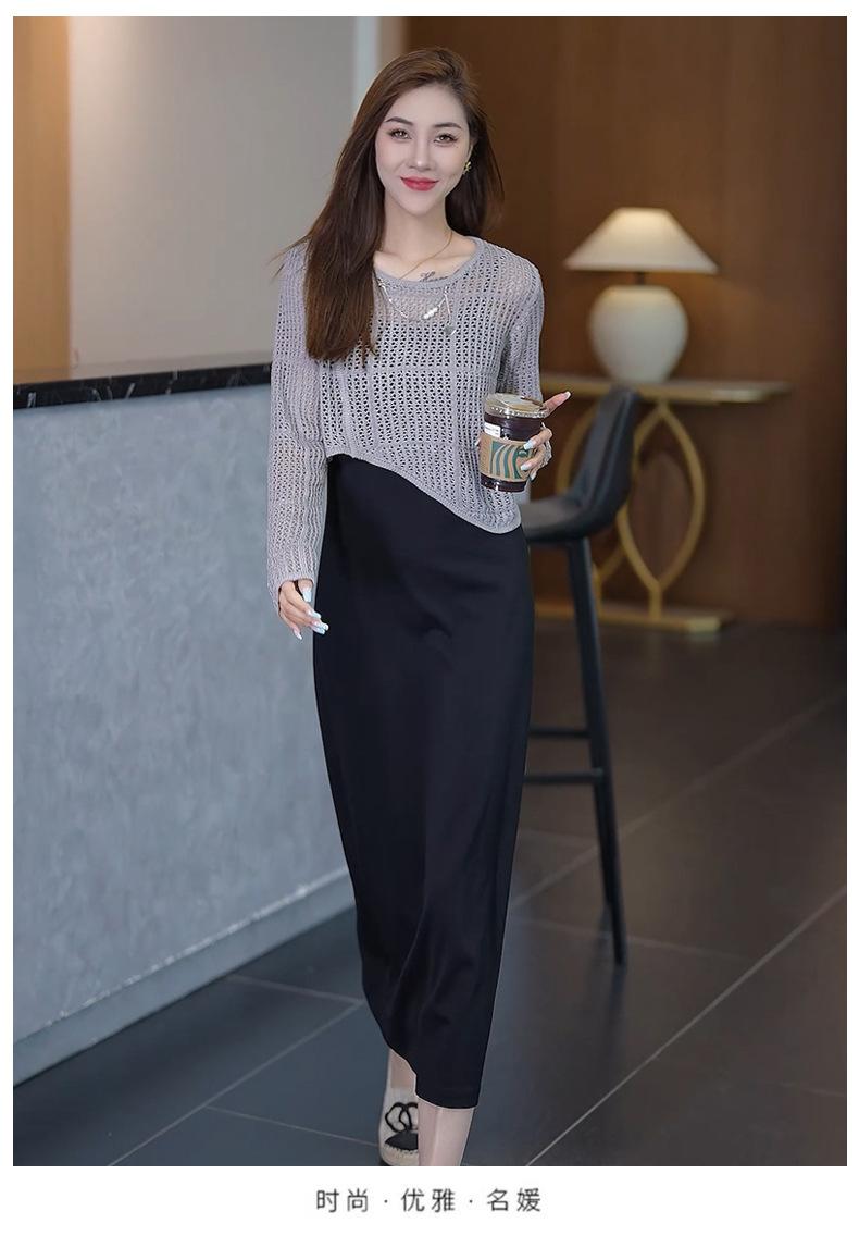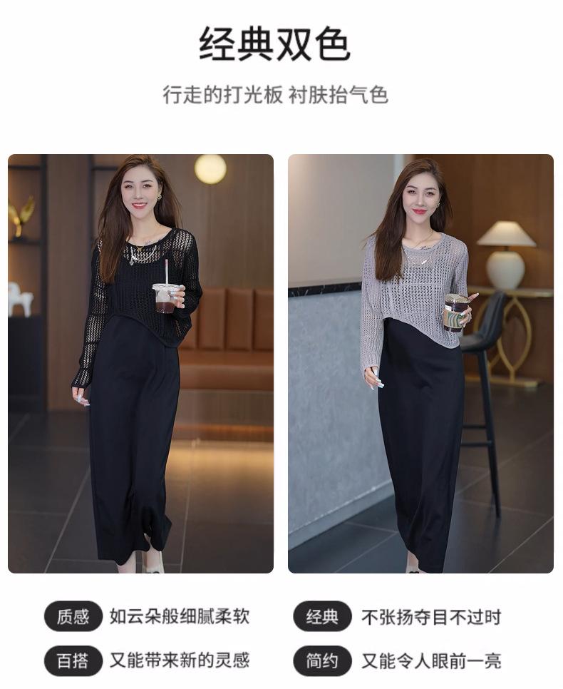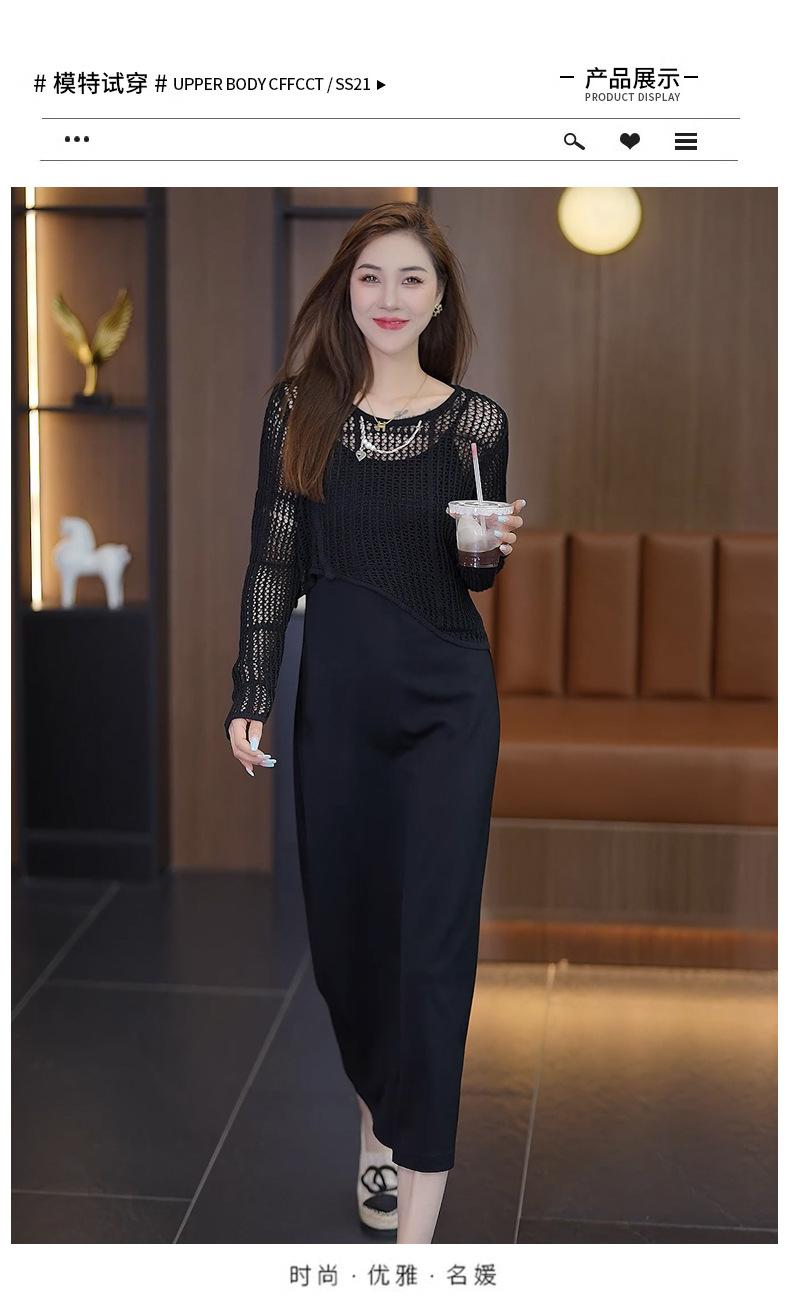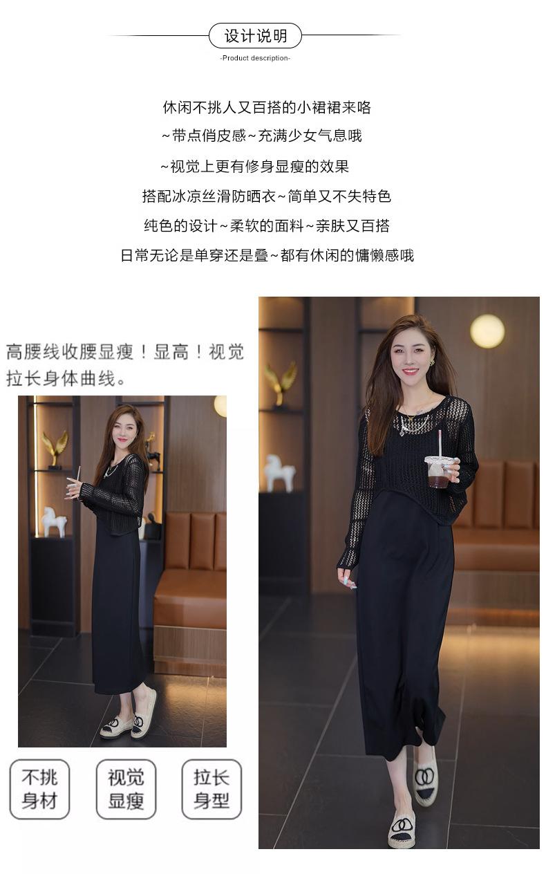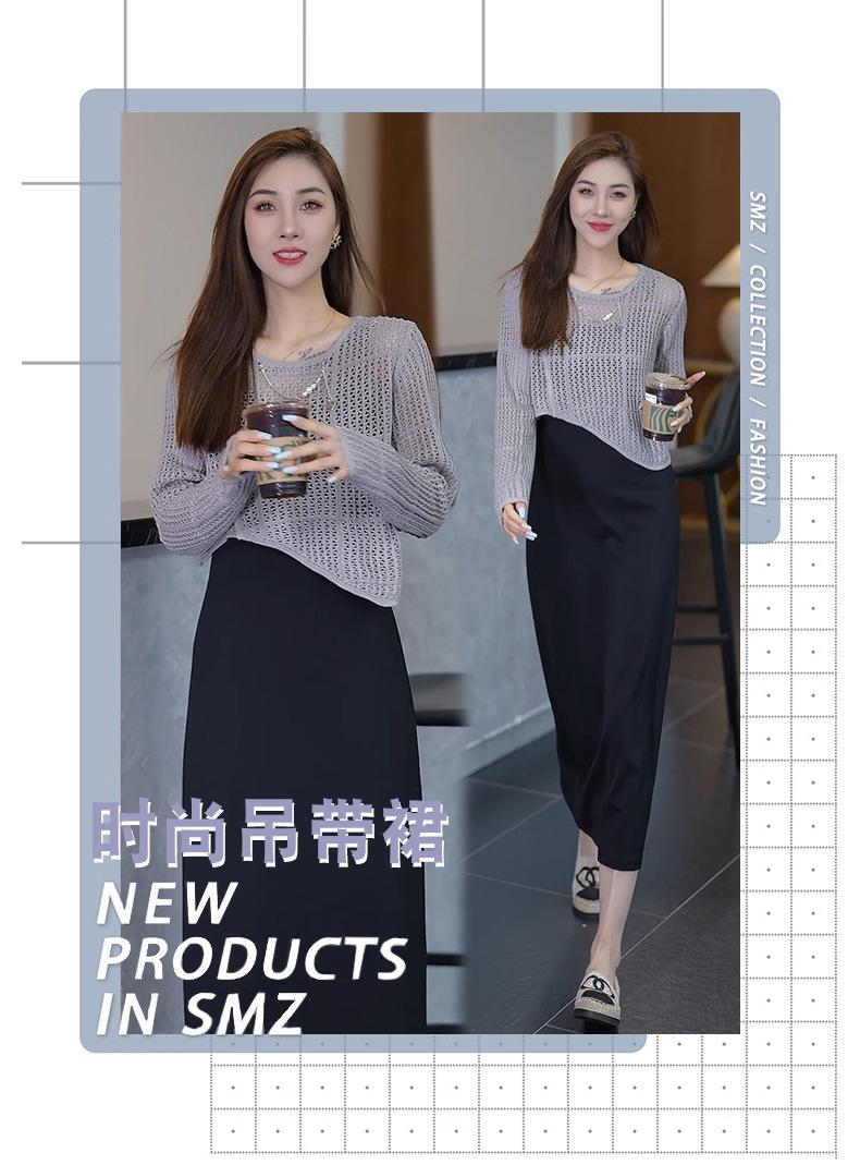 Vestido de Mujer 2024 Verano Nuevo Estilo Coreano Moderno y Elegante Calado Tejido Exterior Drapeado Ajustado Falda con Tirantes Conjunto de Dos Piezas