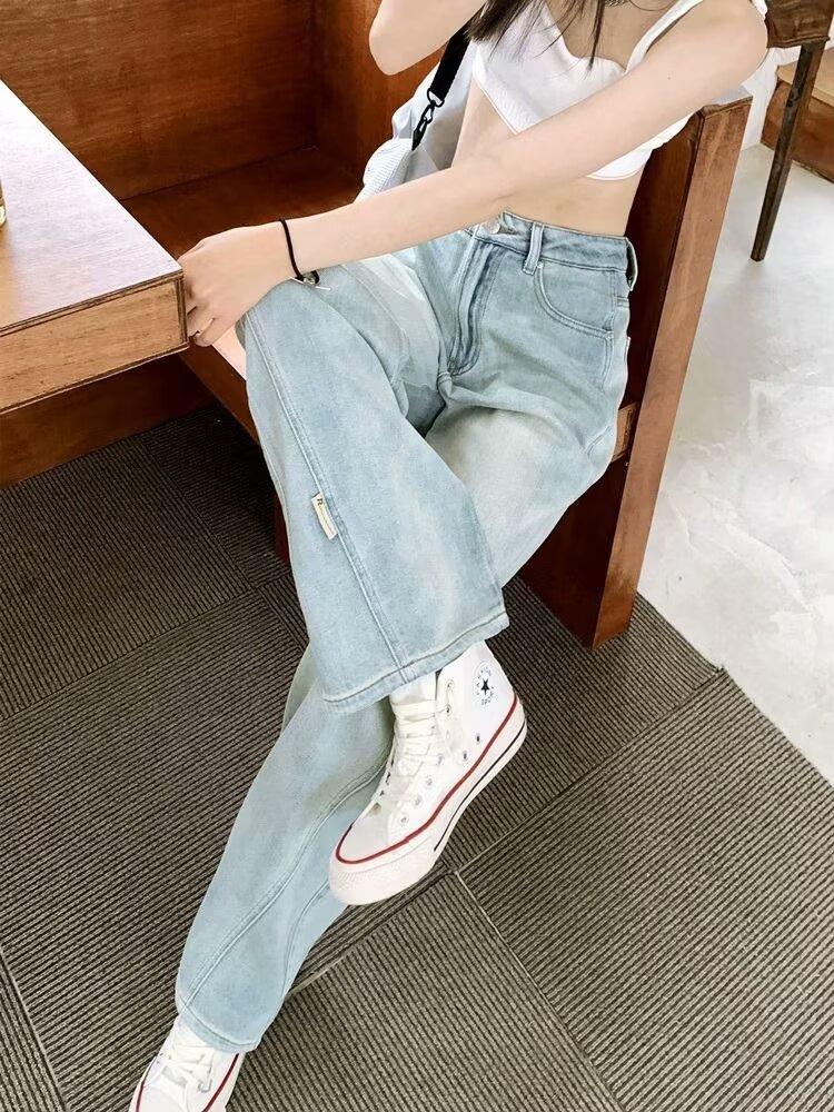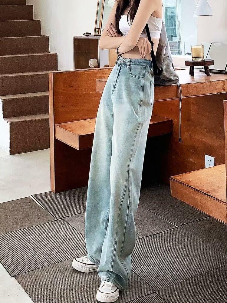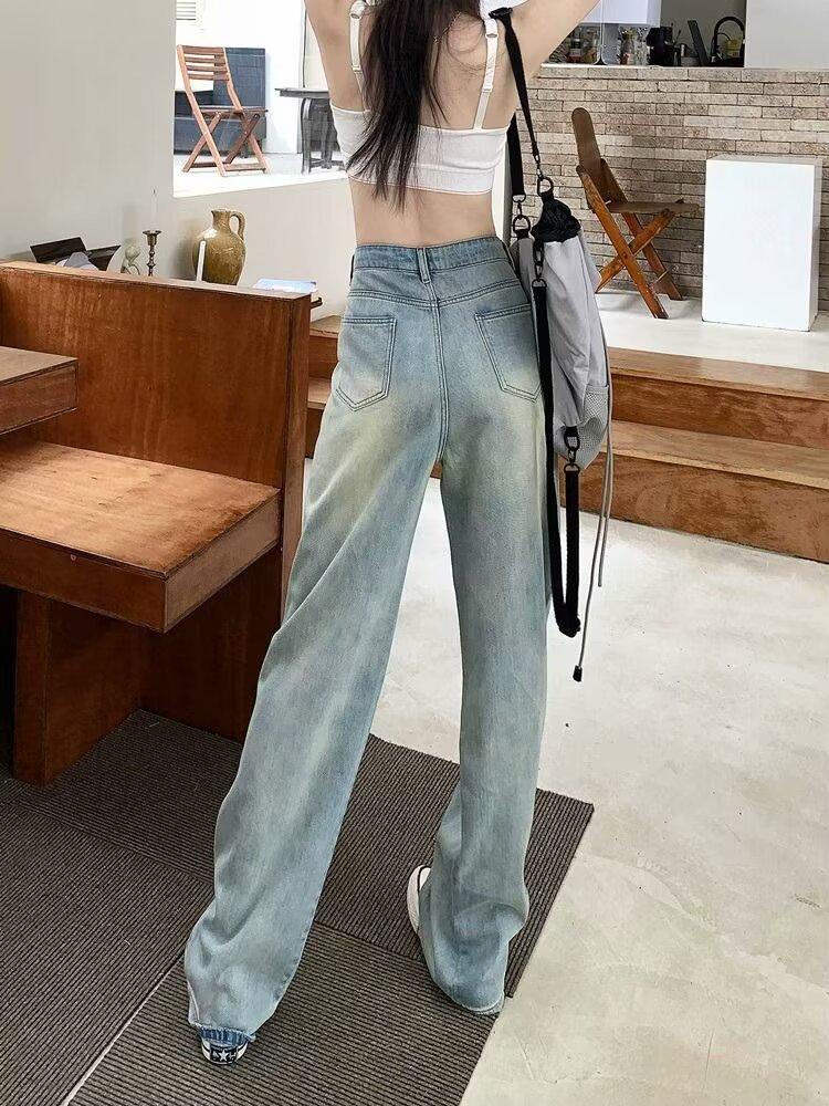 Jeans Micro-Acampanados para Mujer 2024 Nuevo Primavera y Otoño Elásticos de Cintura Alta Sueltos Adelgazantes Pantalones Herradura