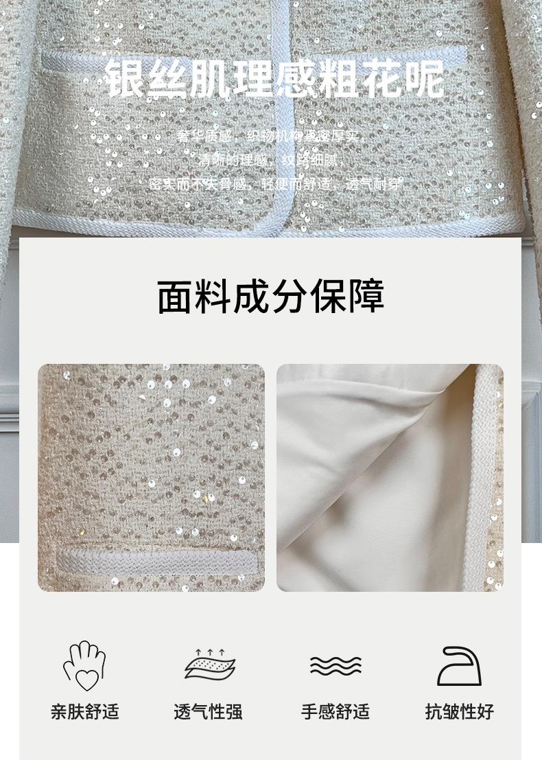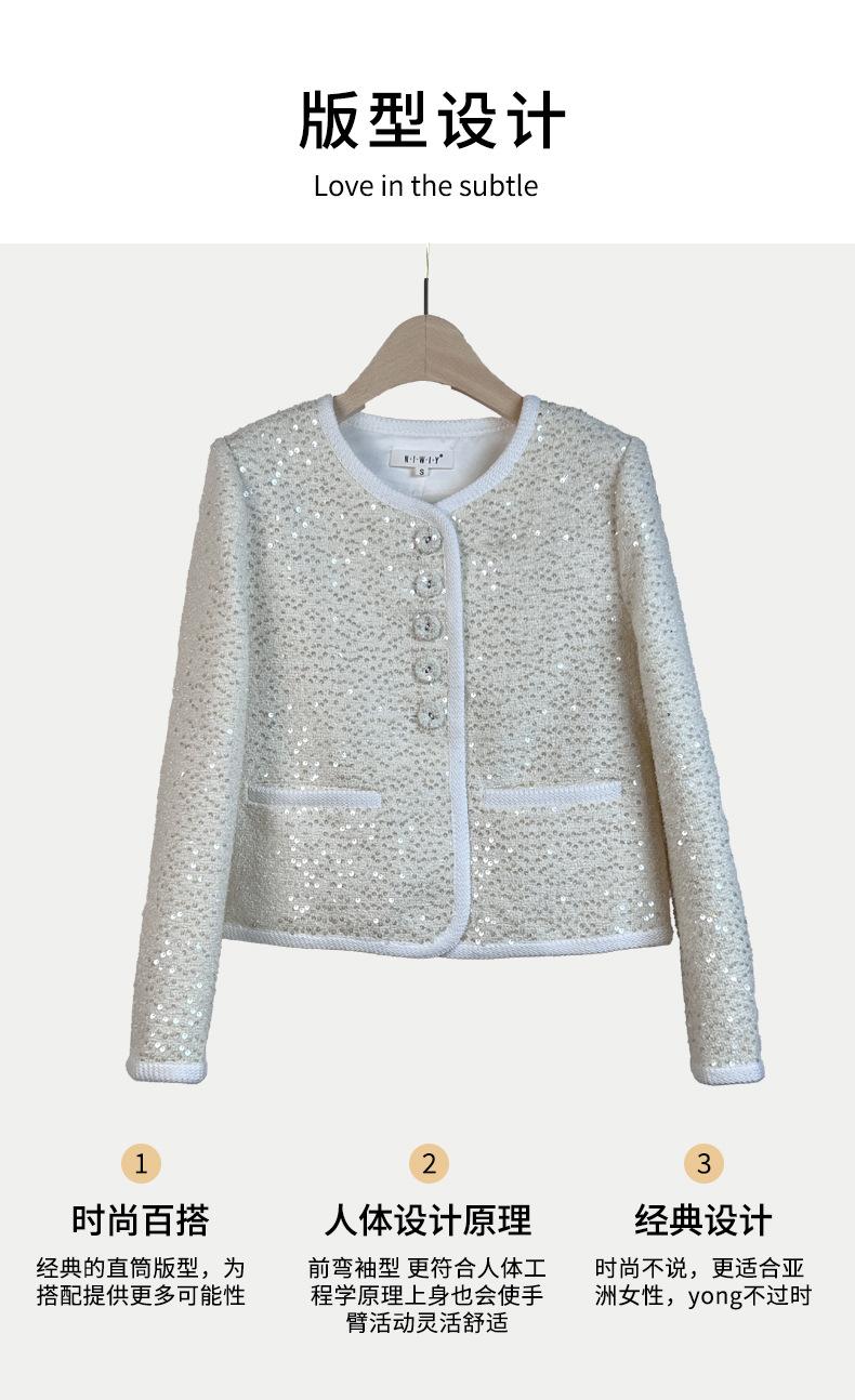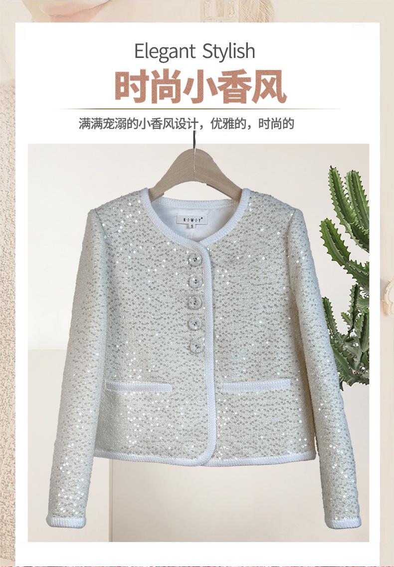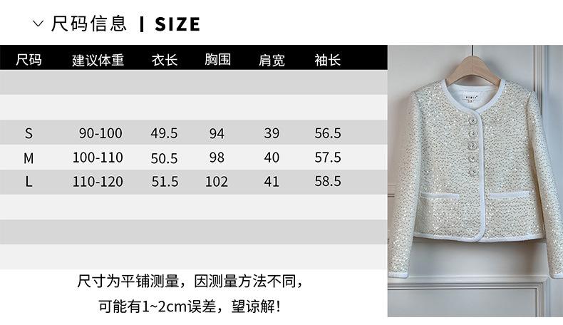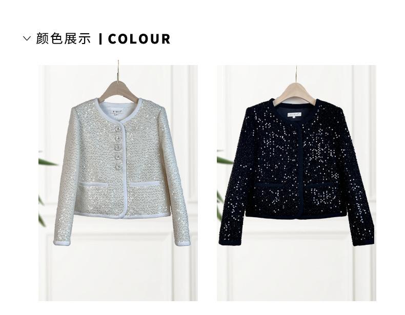 Chaqueta de Lentejuelas de Alta Gama de Estilo Caliente de Celebridad de Internet Nueva de Primavera y Otoño 2024 Cárdigan Corto Exquisito para Mujer