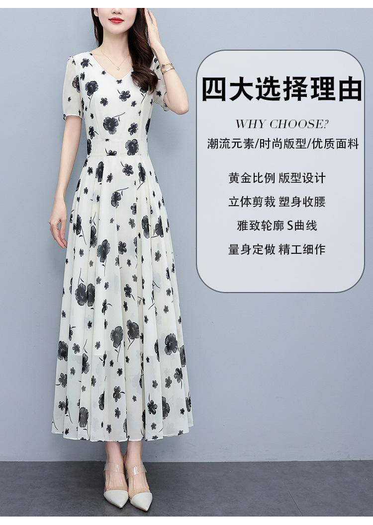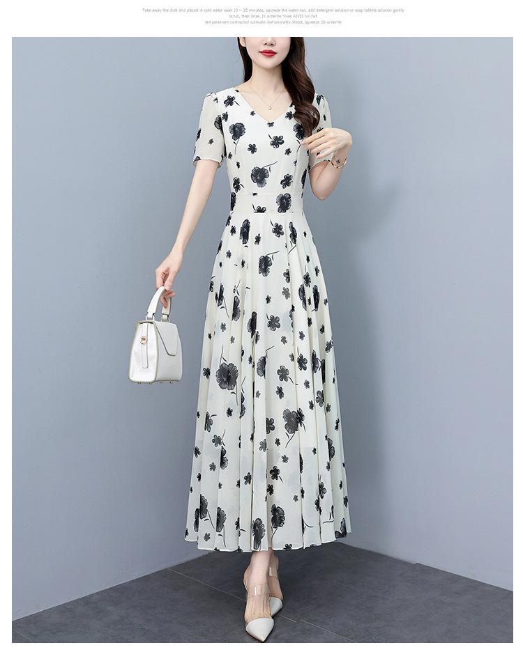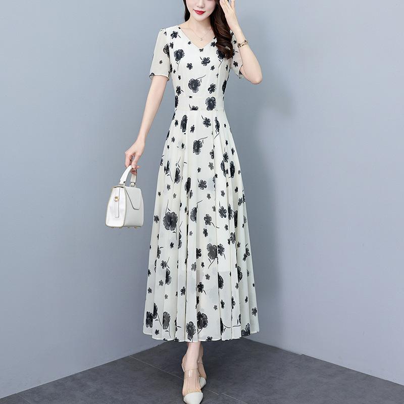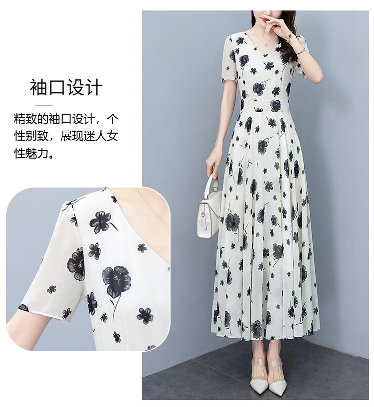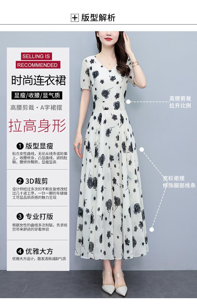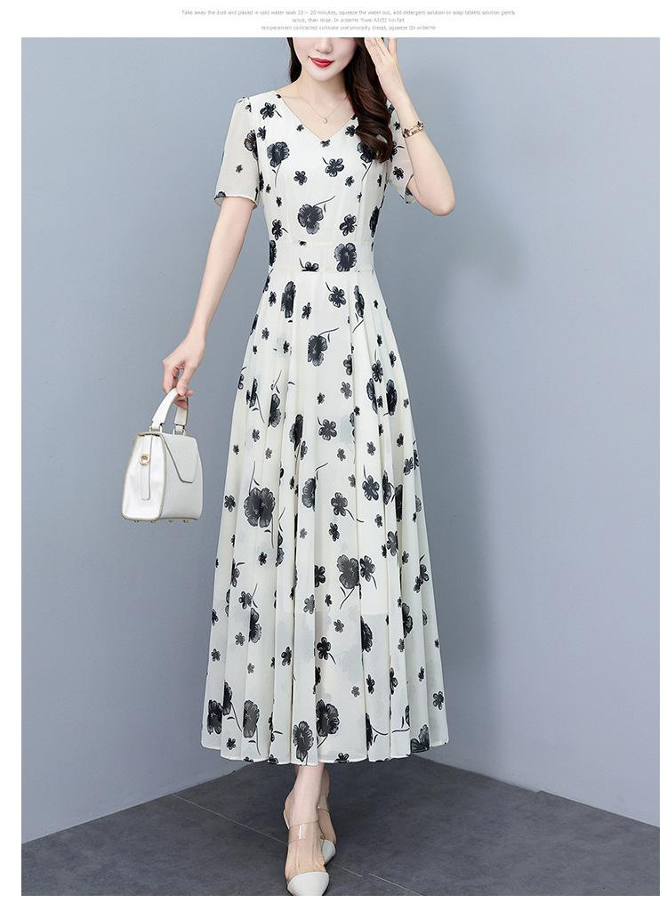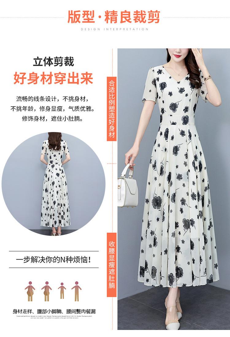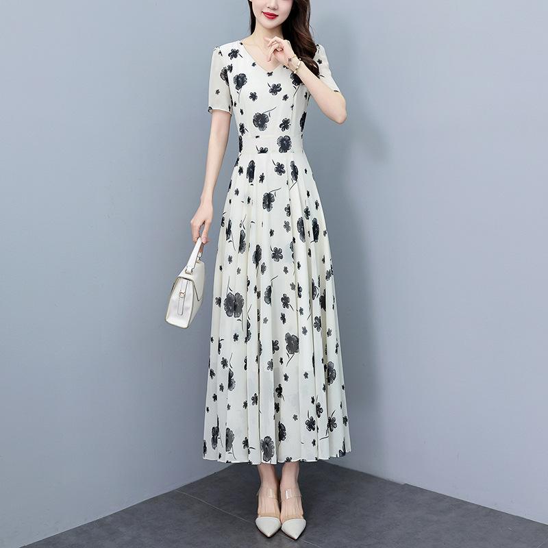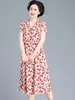 Vestido floral de gasa de verano para madre de mediana edad, nueva moda 2024, elegante vestido de estilo occidental con cintura que cubre el vientre