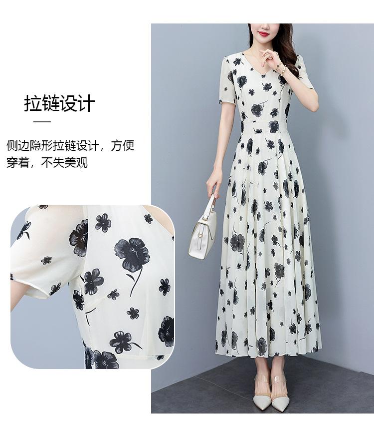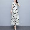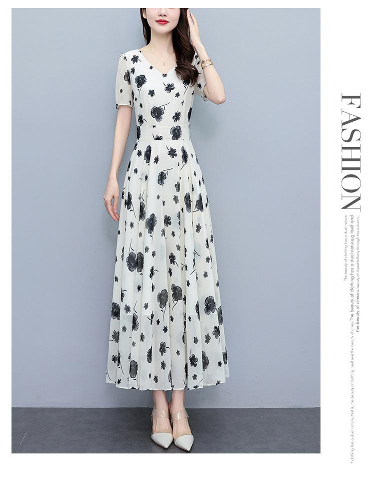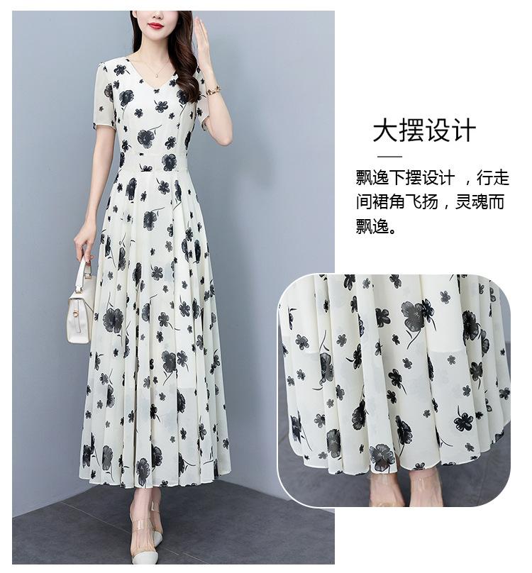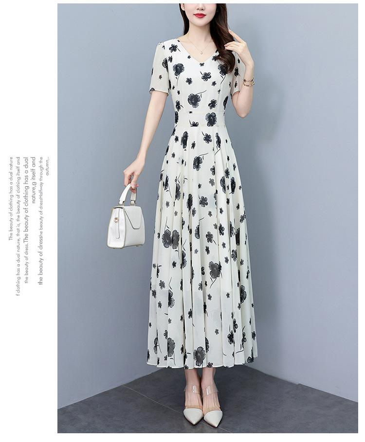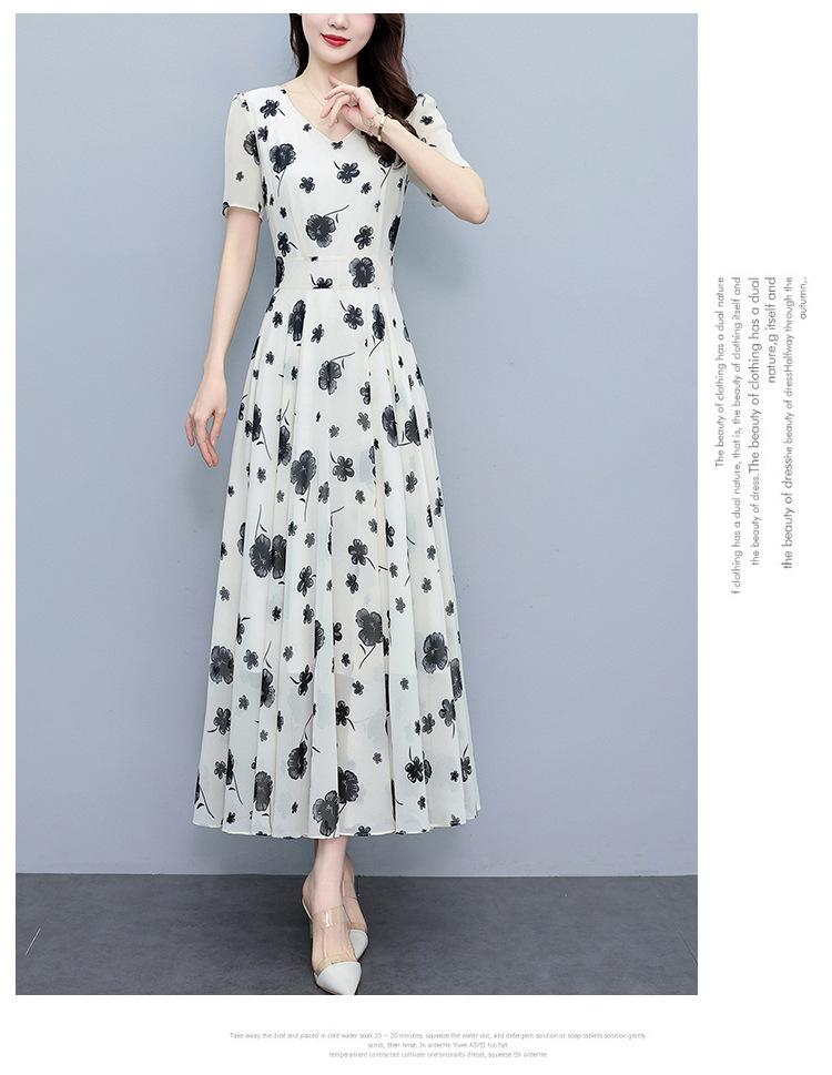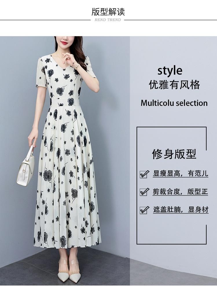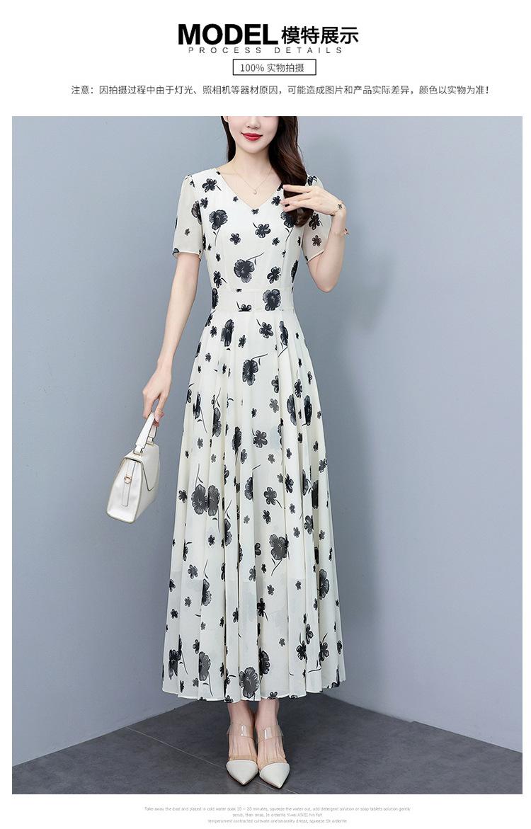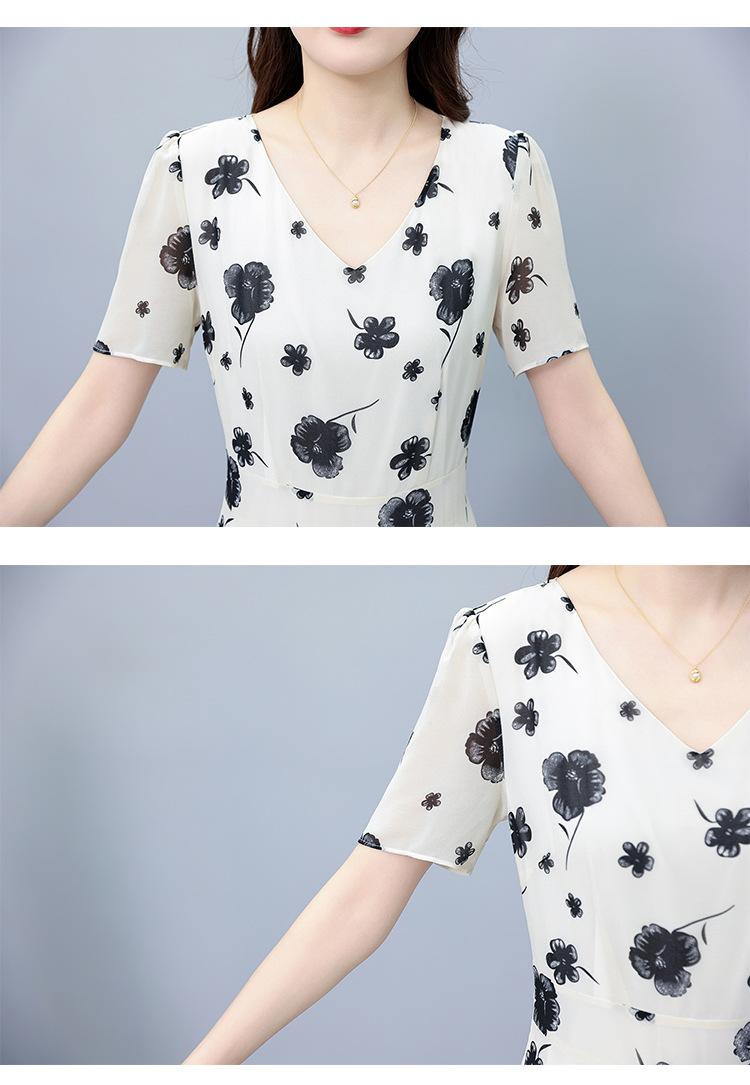 Vestido floral de gasa de verano para madre de mediana edad, nueva moda 2024, elegante vestido de estilo occidental con cintura que cubre el vientre