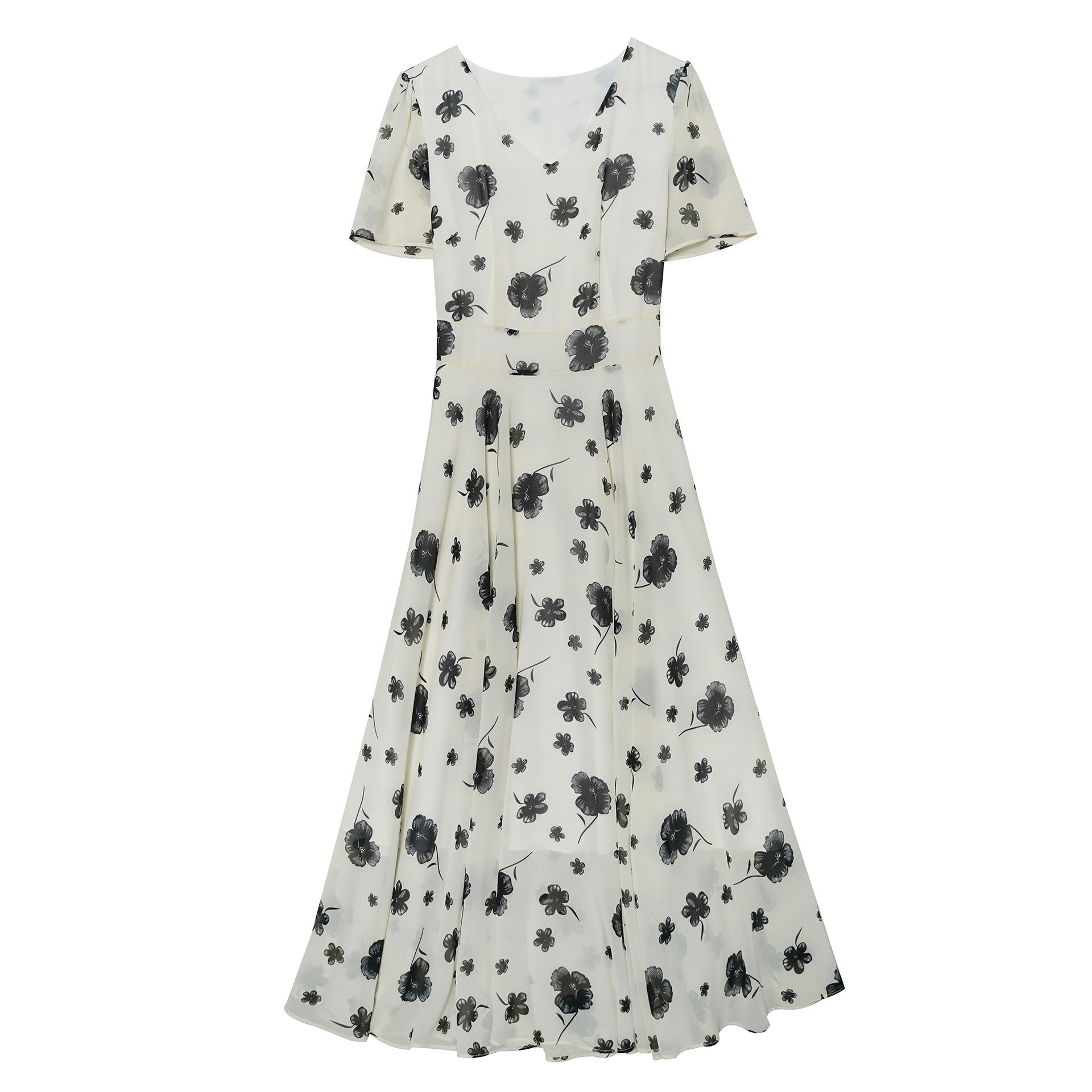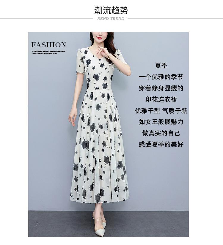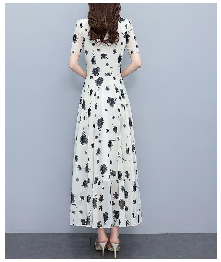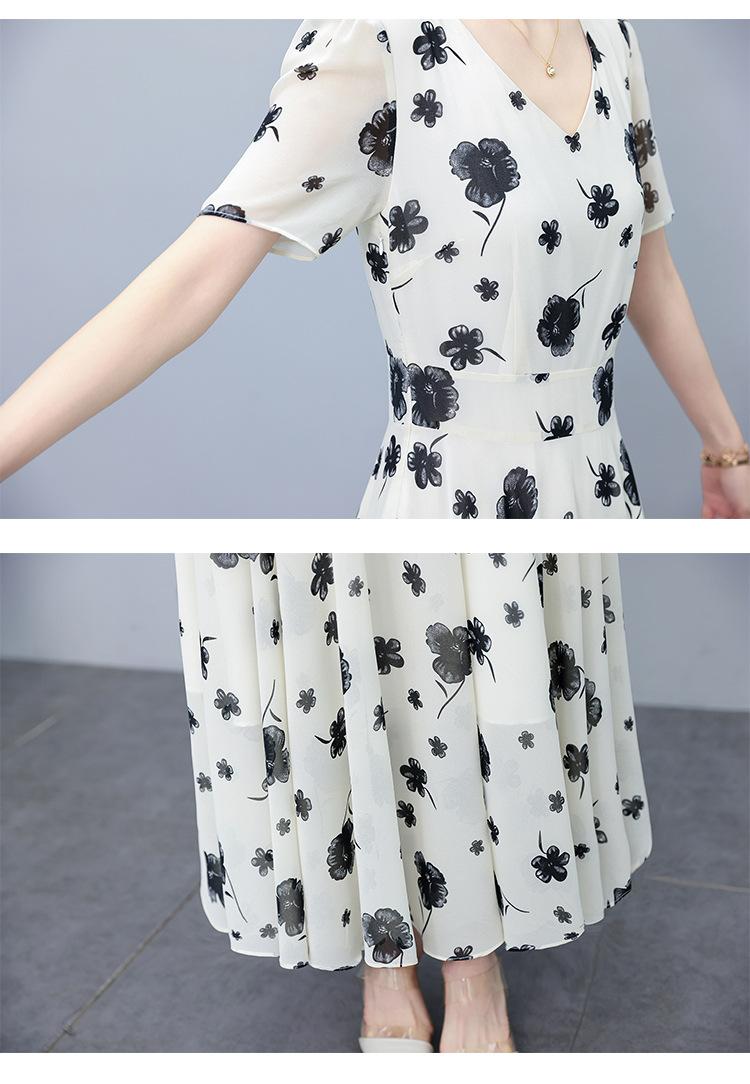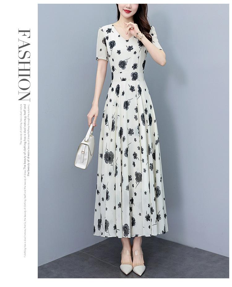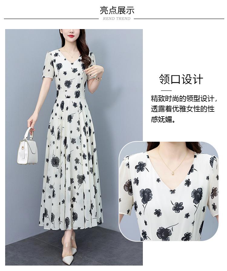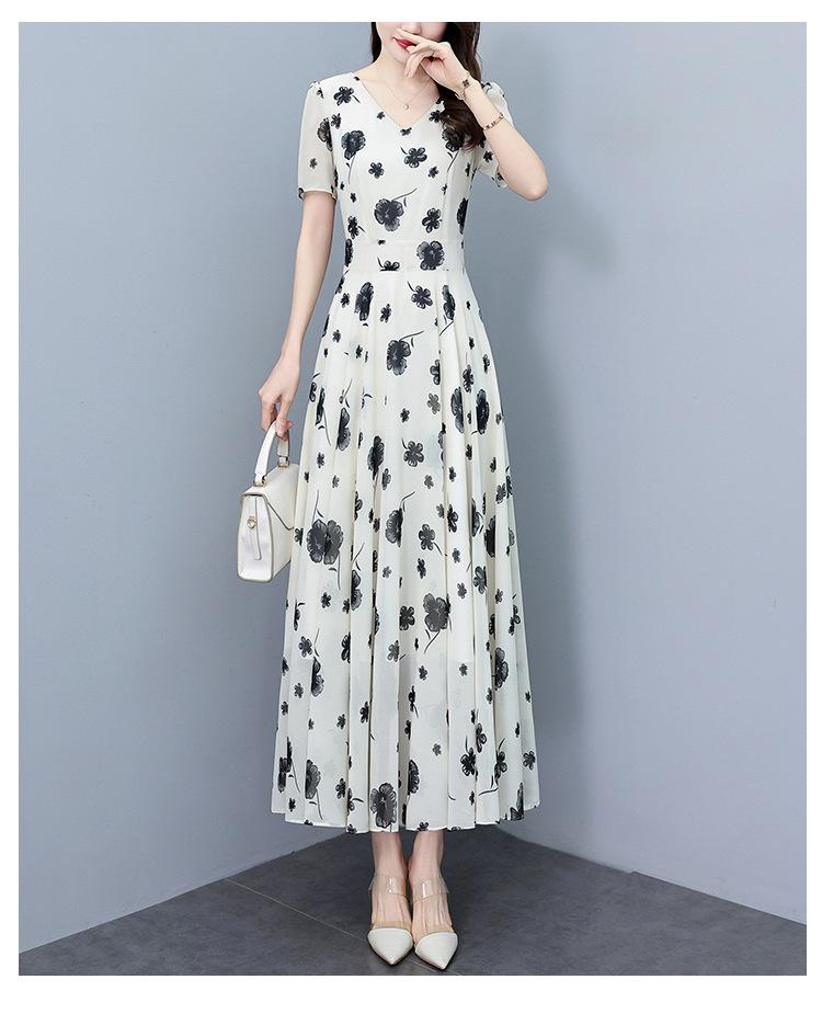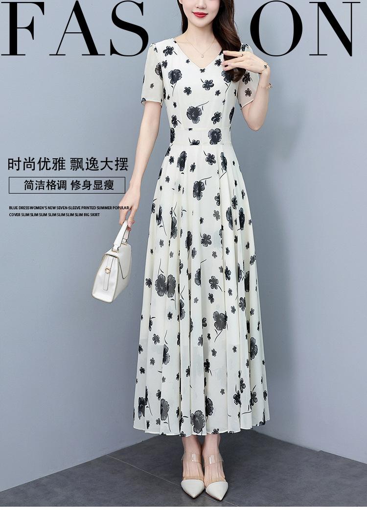 Vestido floral de gasa de verano para madre de mediana edad, nueva moda 2024, elegante vestido de estilo occidental con cintura que cubre el vientre