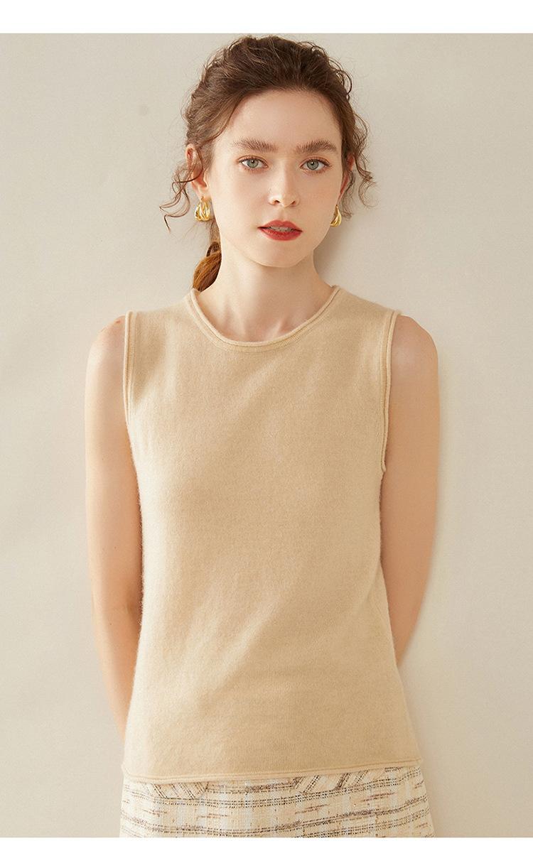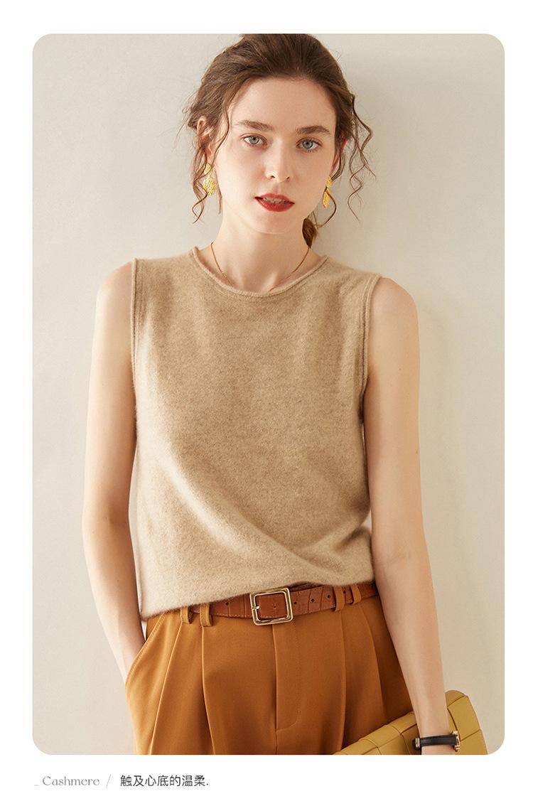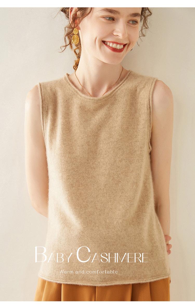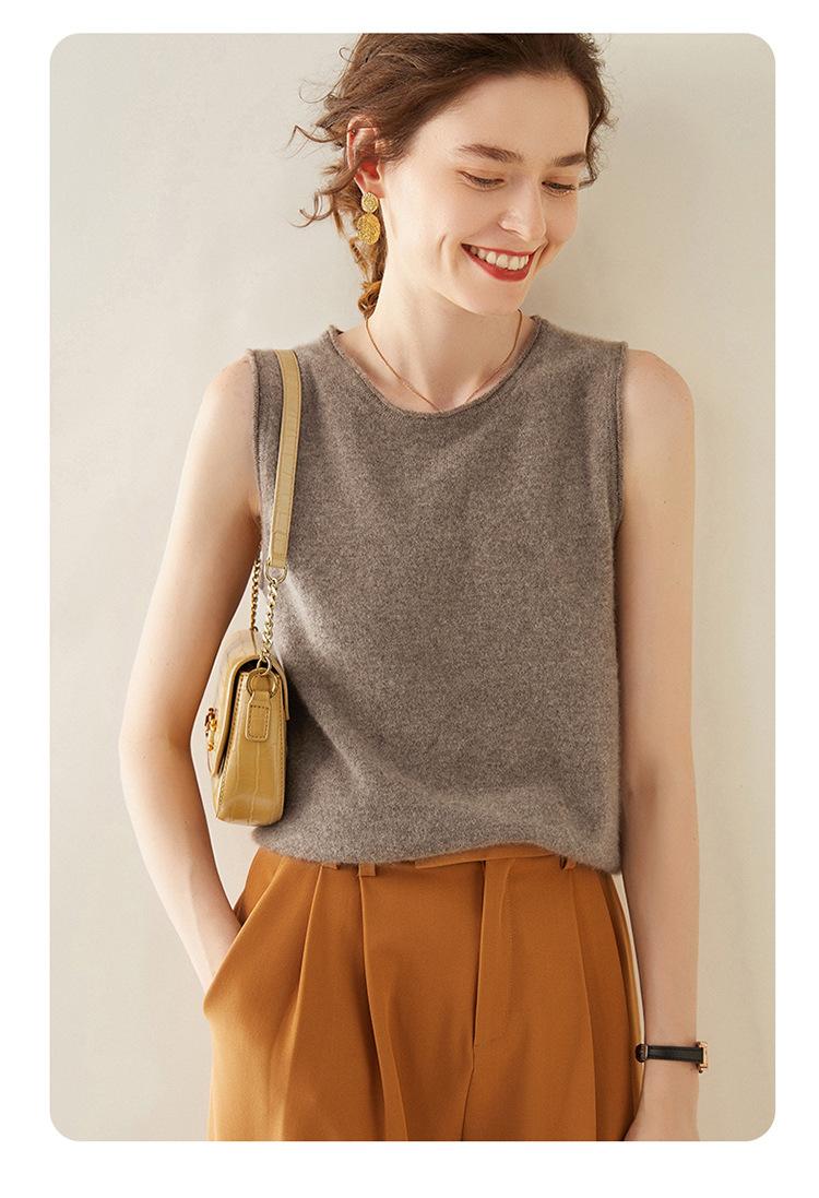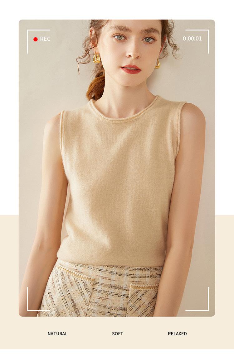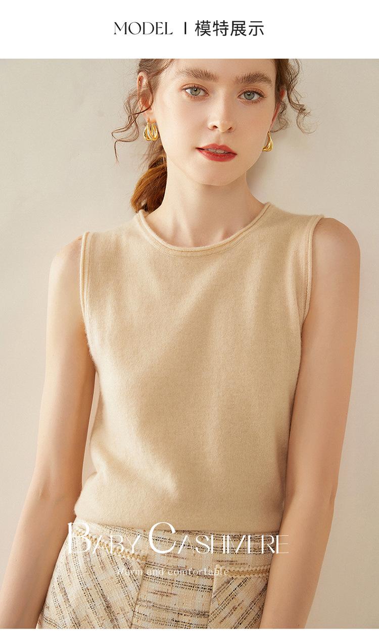 Nuevo Camisola sin mangas de cachemira para mujer para otoño e invierno, Chaleco moderno de punto base con cuello redondo bajo y borde enrollado