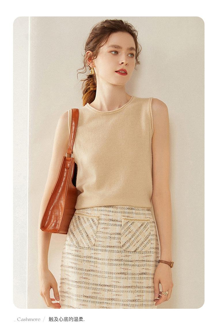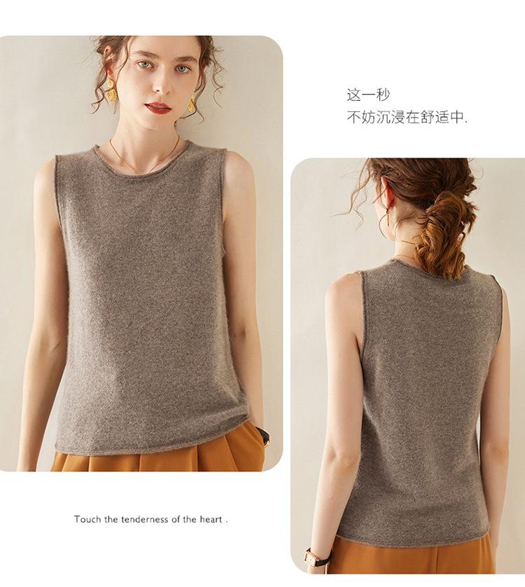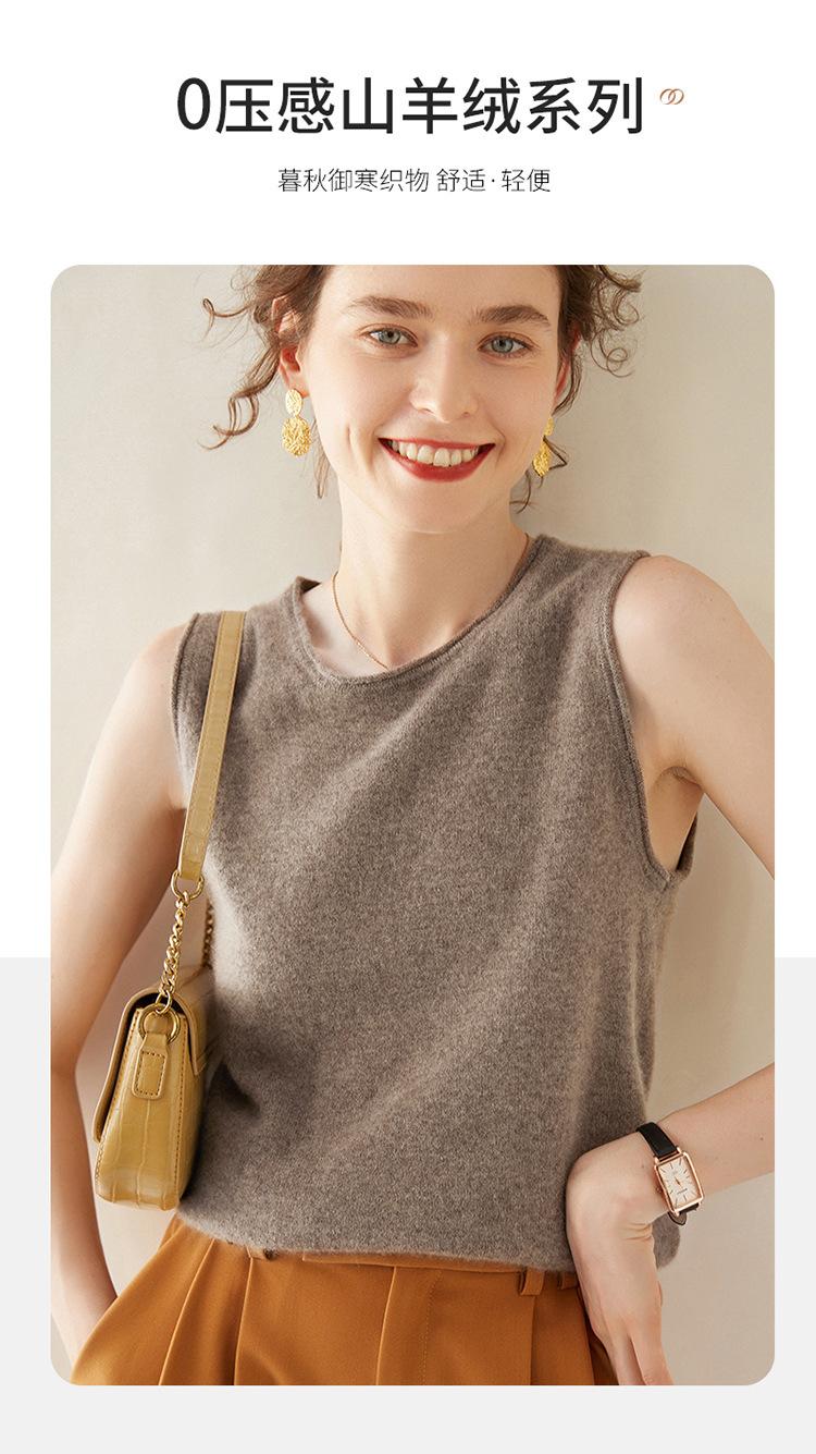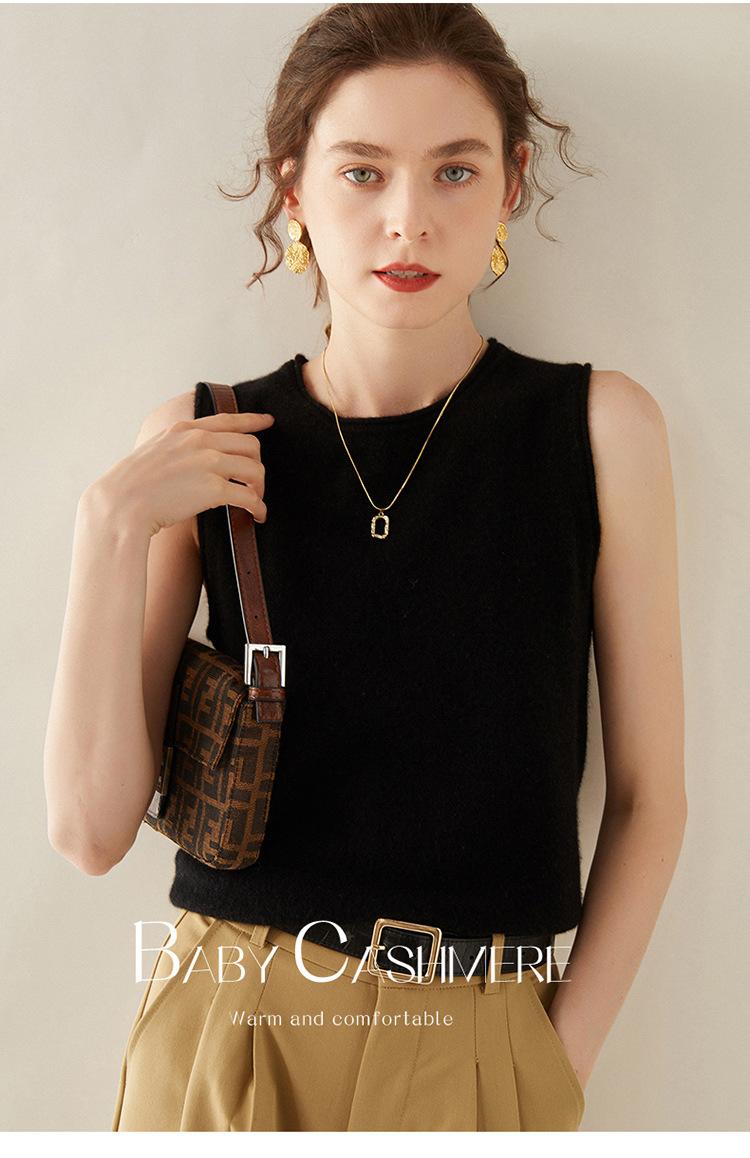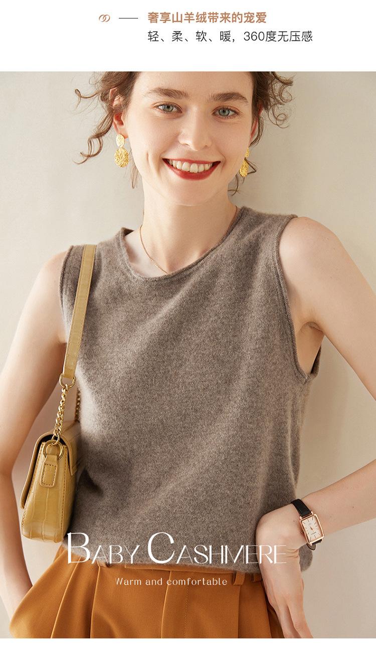 Nuevo Camisola sin mangas de cachemira para mujer para otoño e invierno, Chaleco moderno de punto base con cuello redondo bajo y borde enrollado