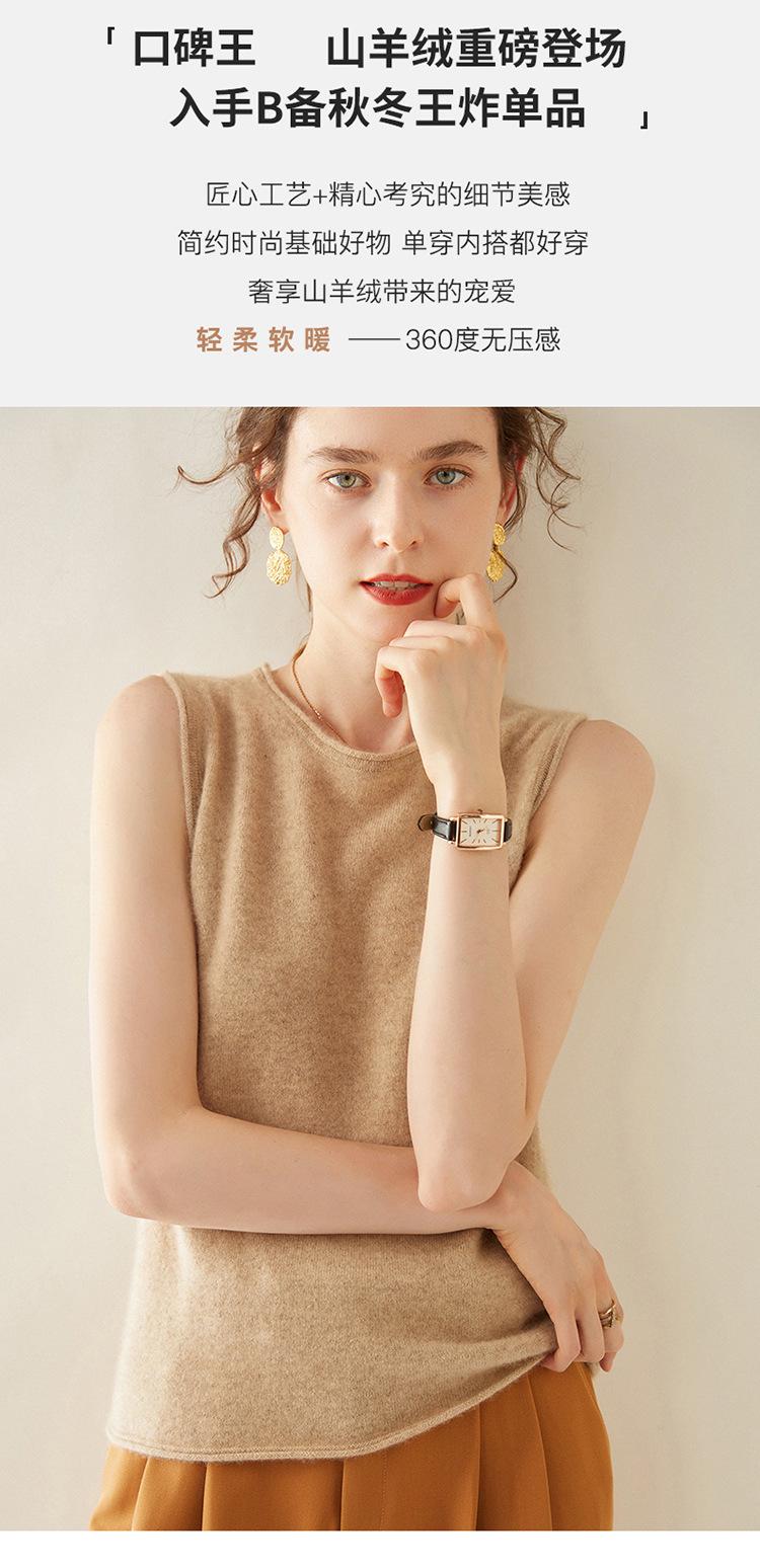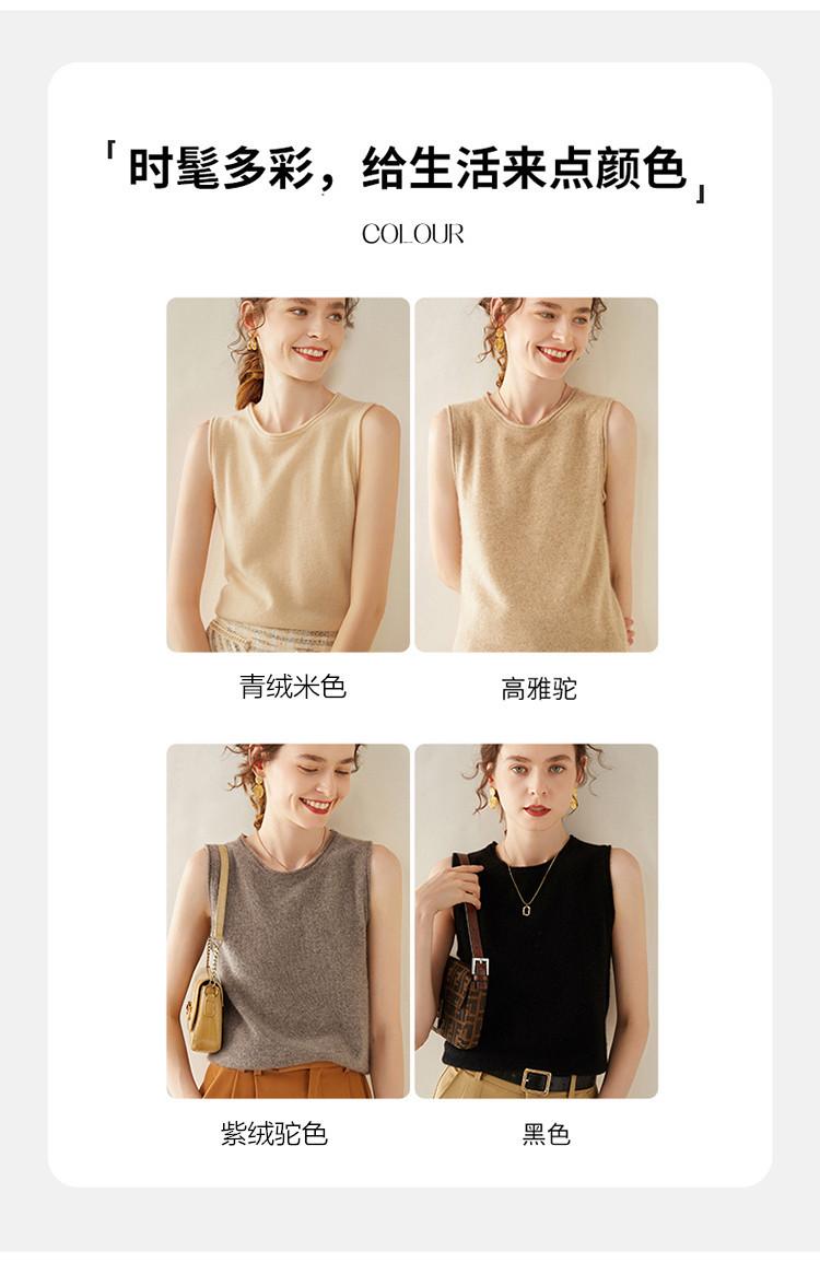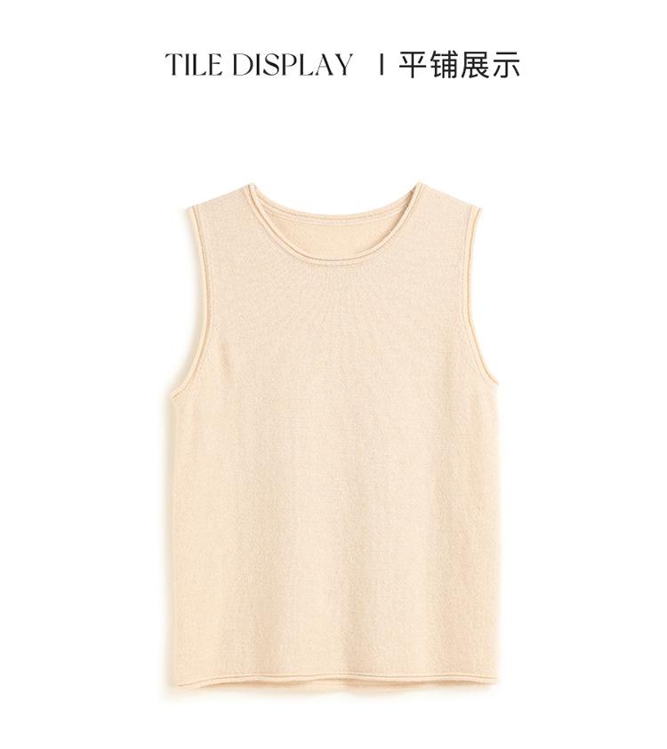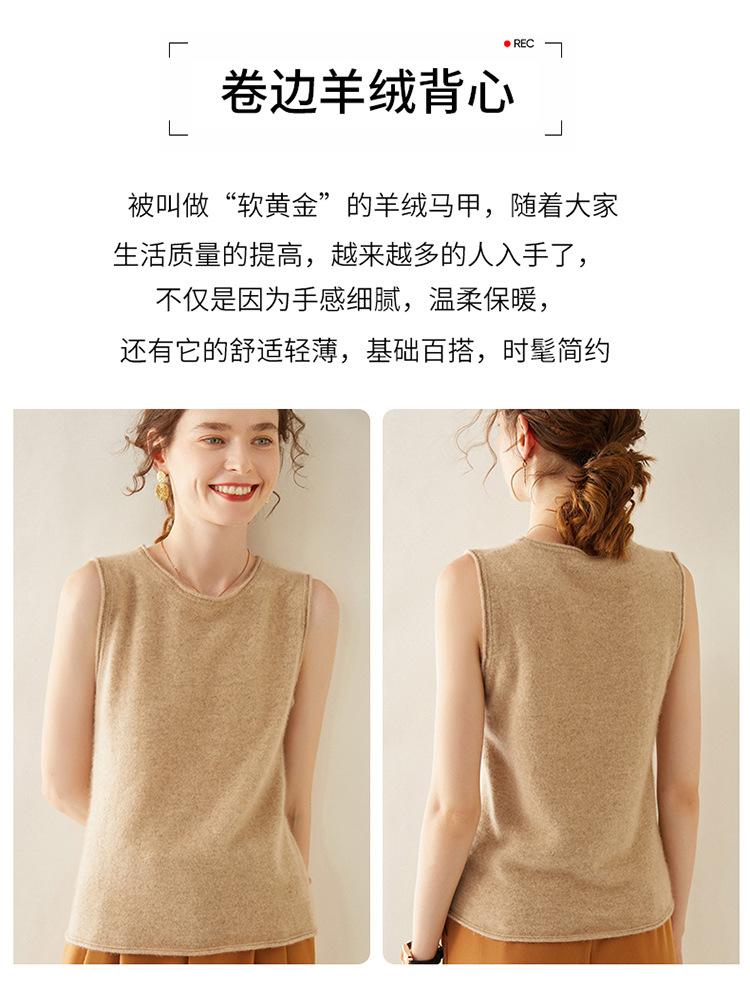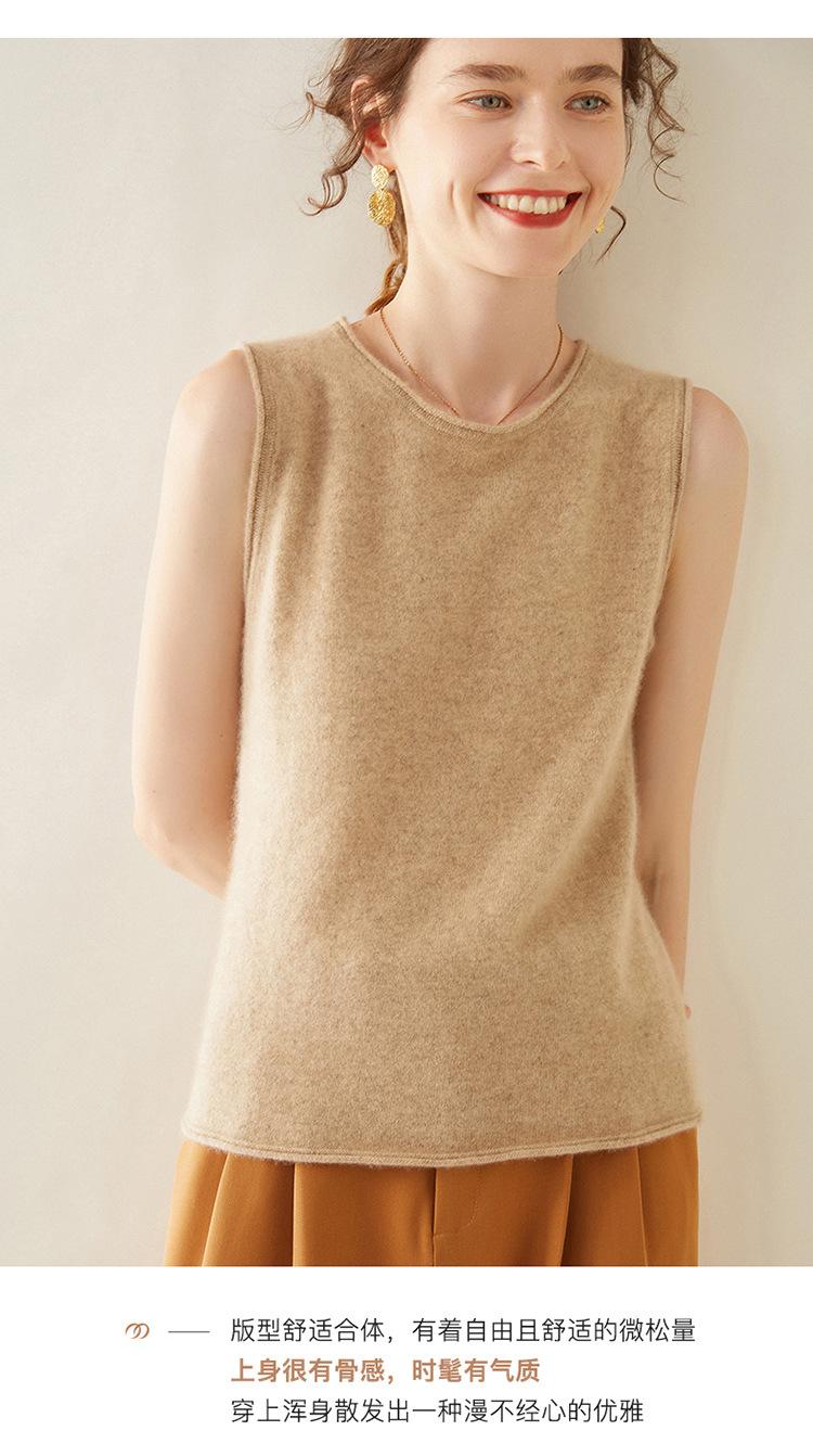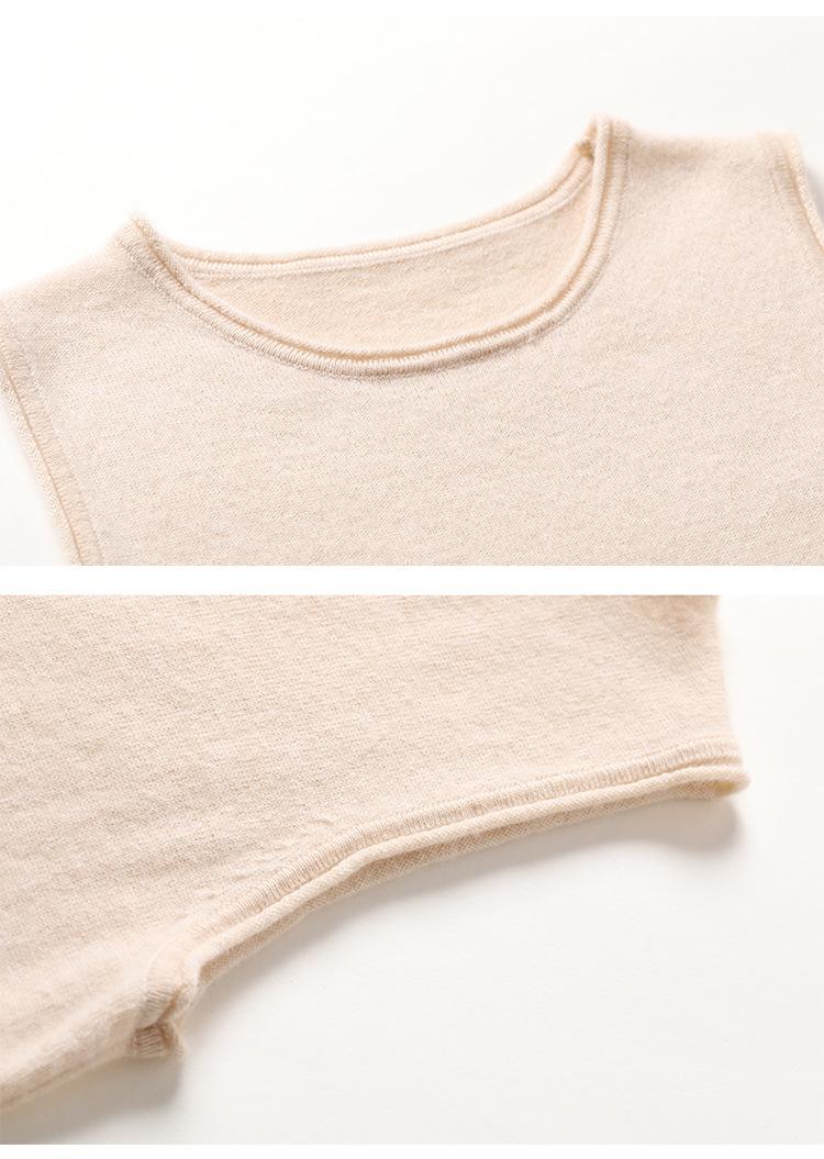 Nuevo Camisola sin mangas de cachemira para mujer para otoño e invierno, Chaleco moderno de punto base con cuello redondo bajo y borde enrollado