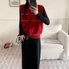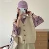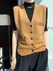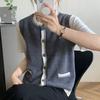 Chaleco de suéter con cuello en V de color gris oscuro para mujer, chaleco corto de otoño, chaleco de suéter suave y ceroso