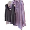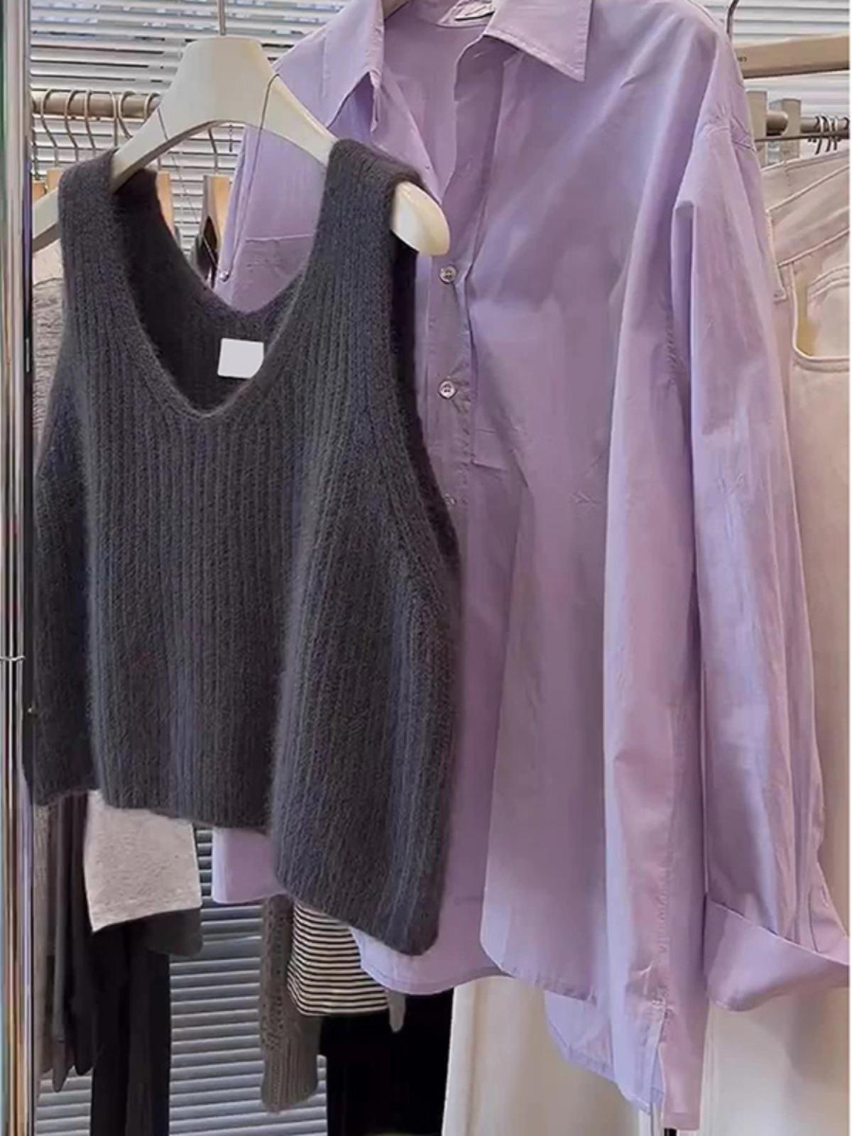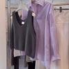 Chaleco de mohair gris oscuro con cuello en V para mujer, chaleco corto de otoño, suéter de cera suave, chaleco pequeño