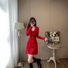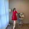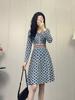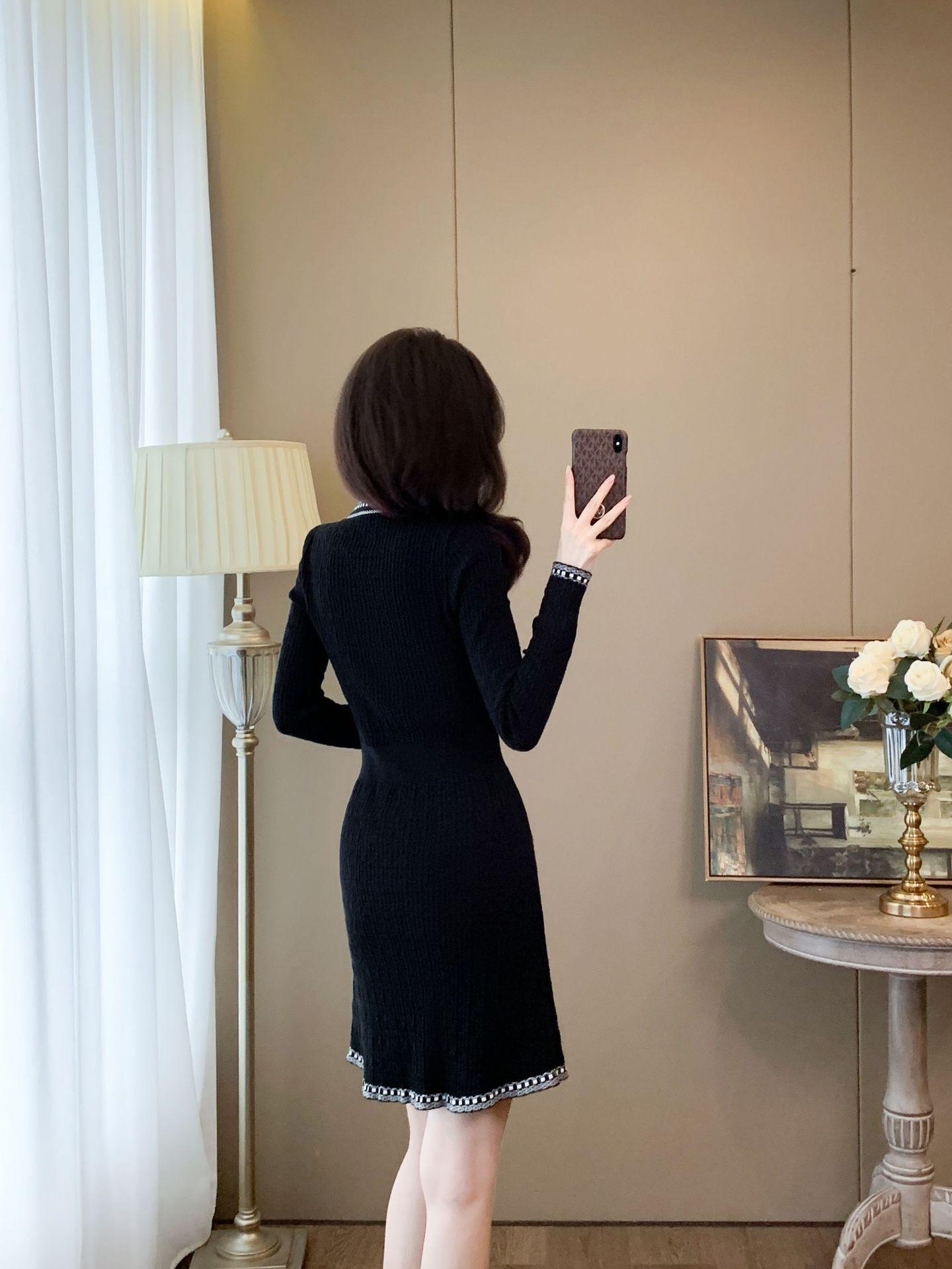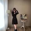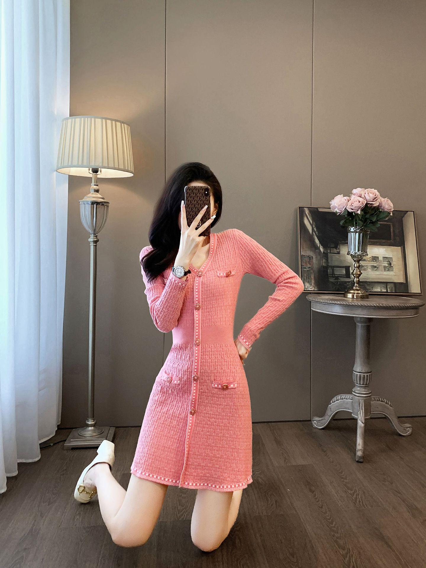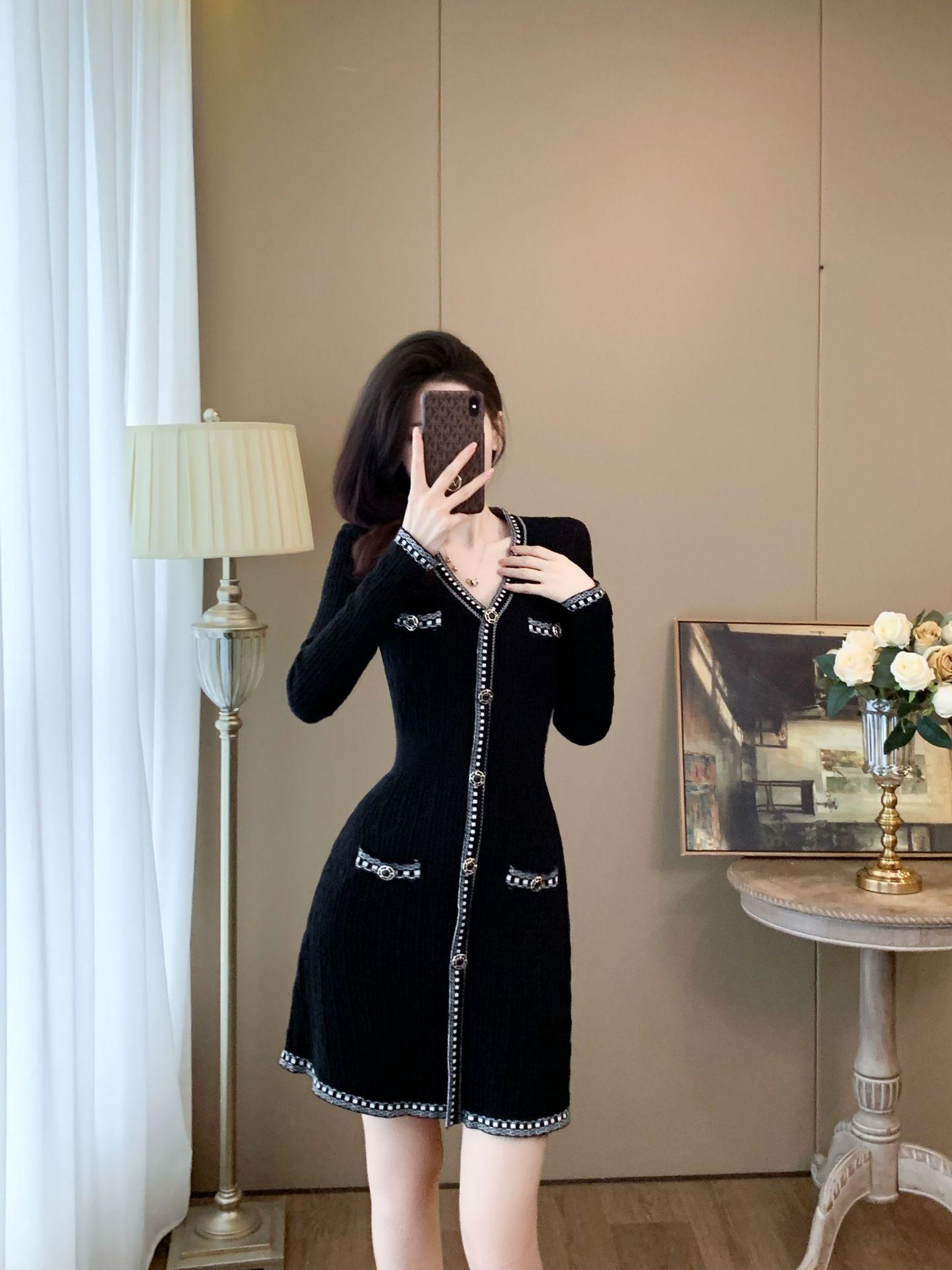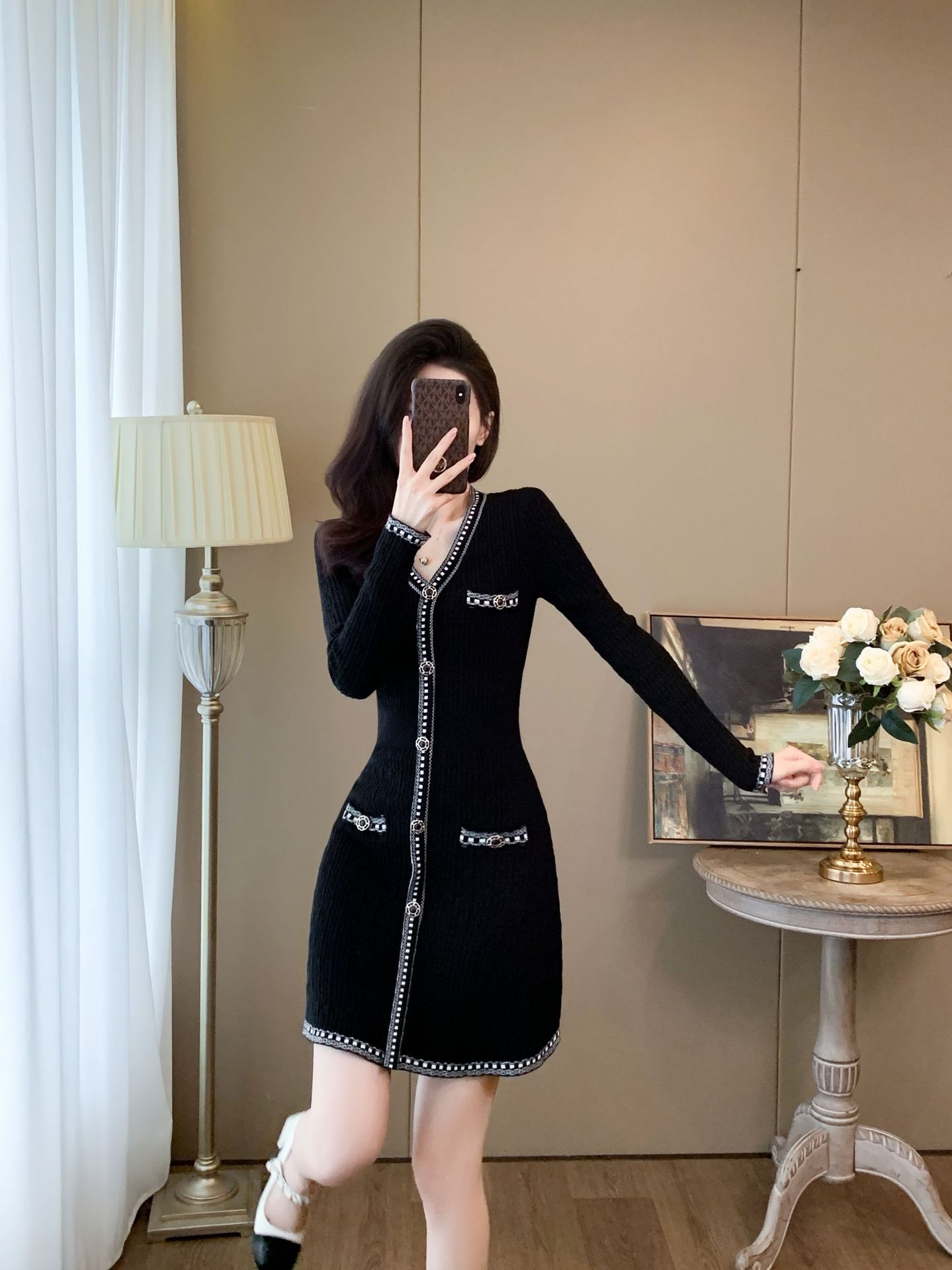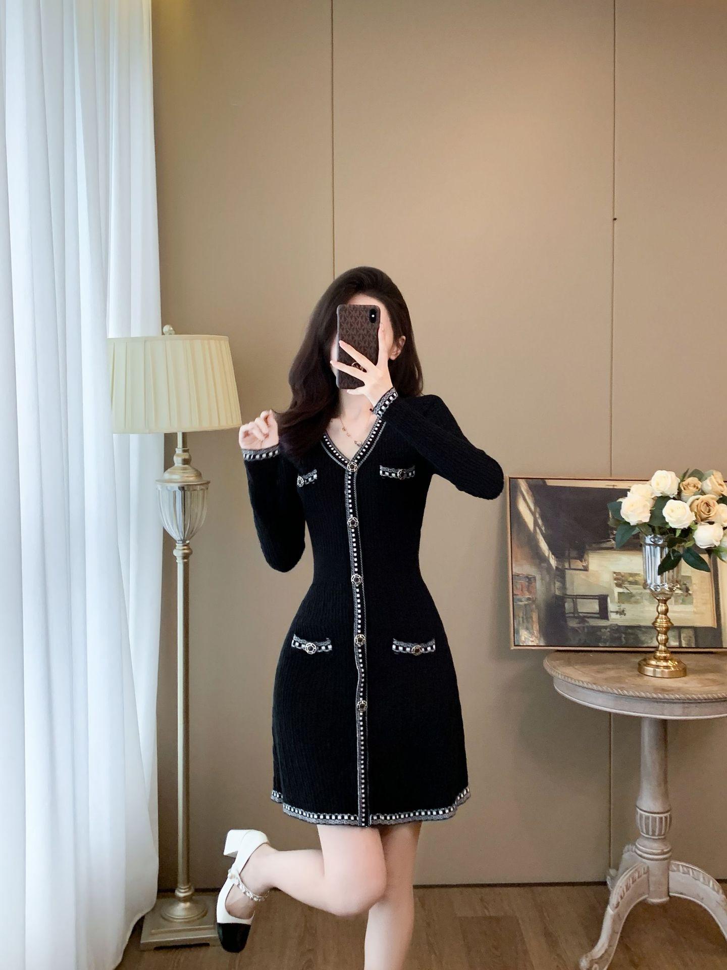 Vestido de Punto Estilo Dama Estilo Francés Nuevo Estilo 2025 Elegante y de Alta Gama Cuello en V Abotonadura Sencilla Falda Línea A para Mujer